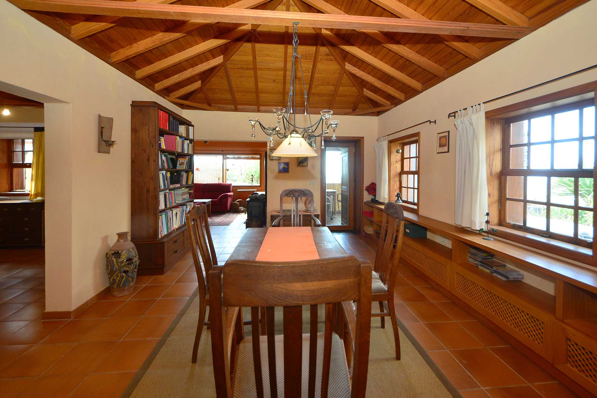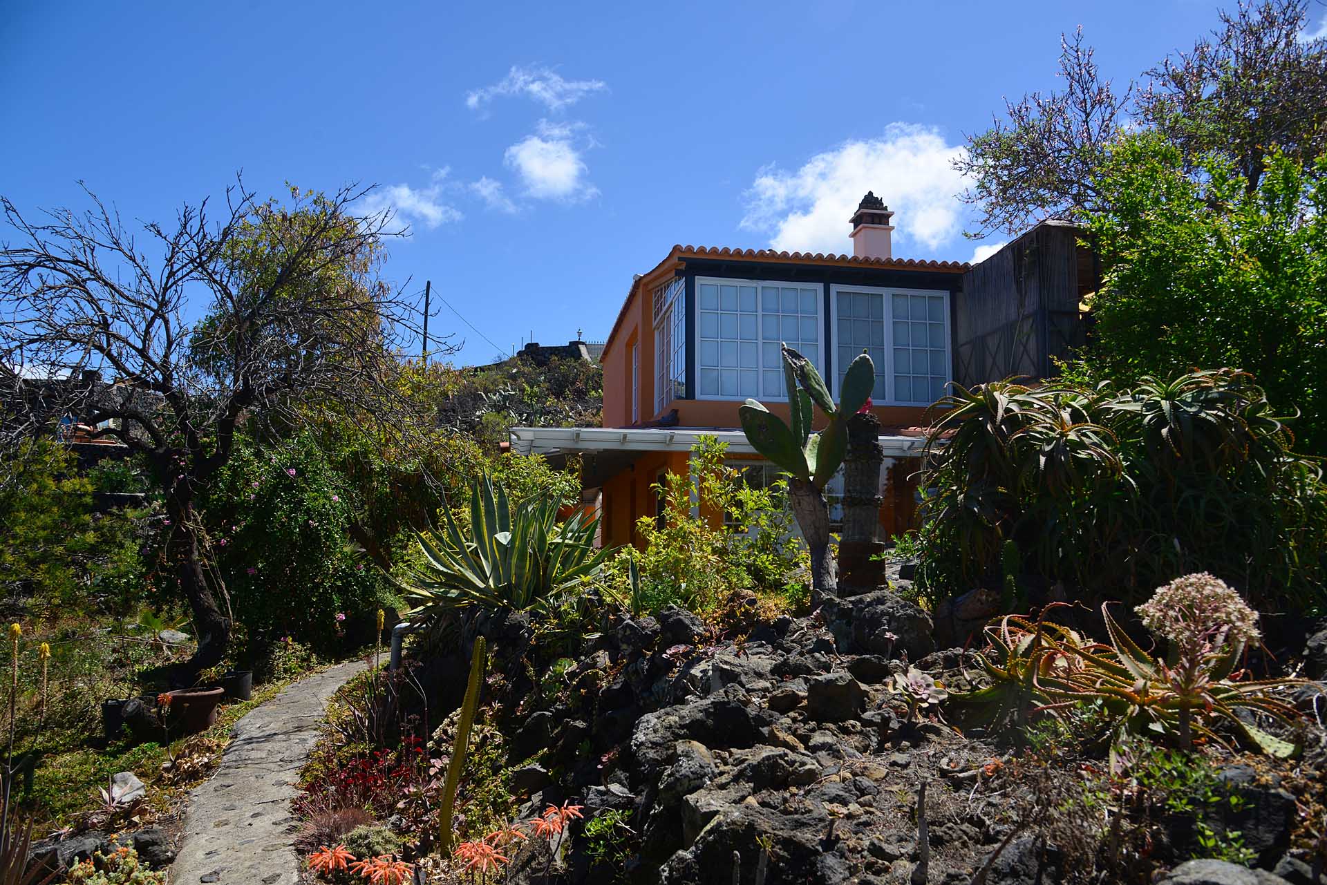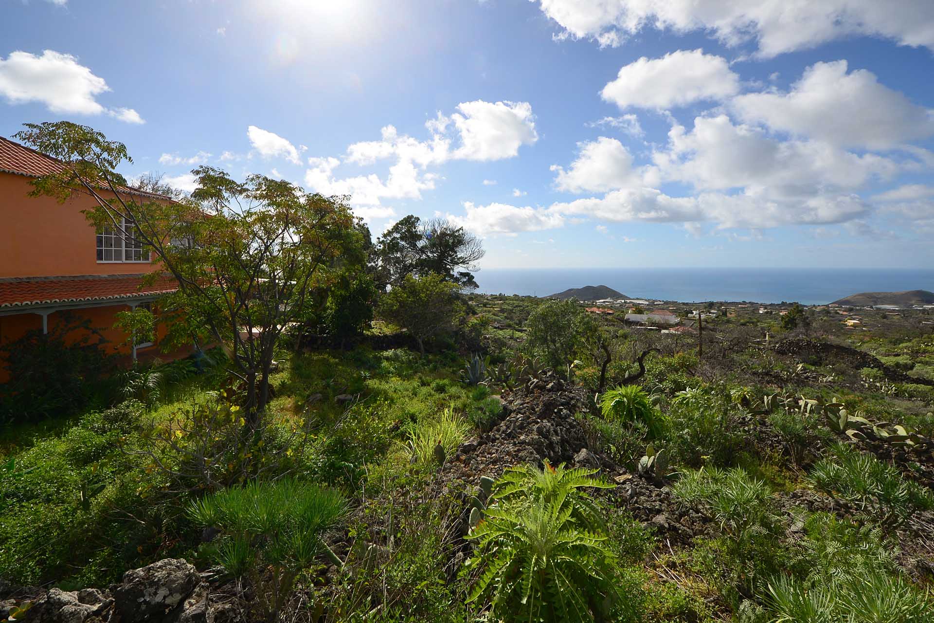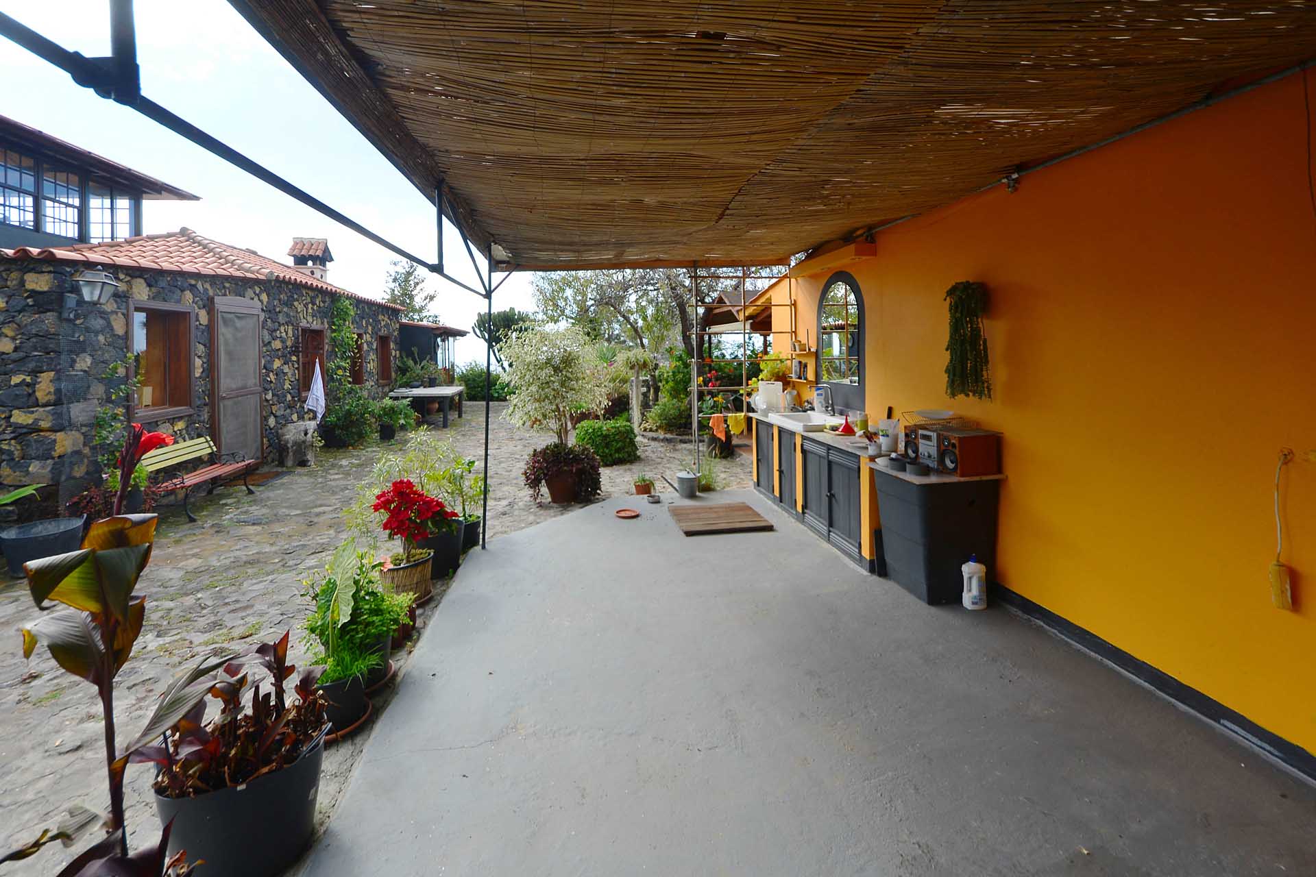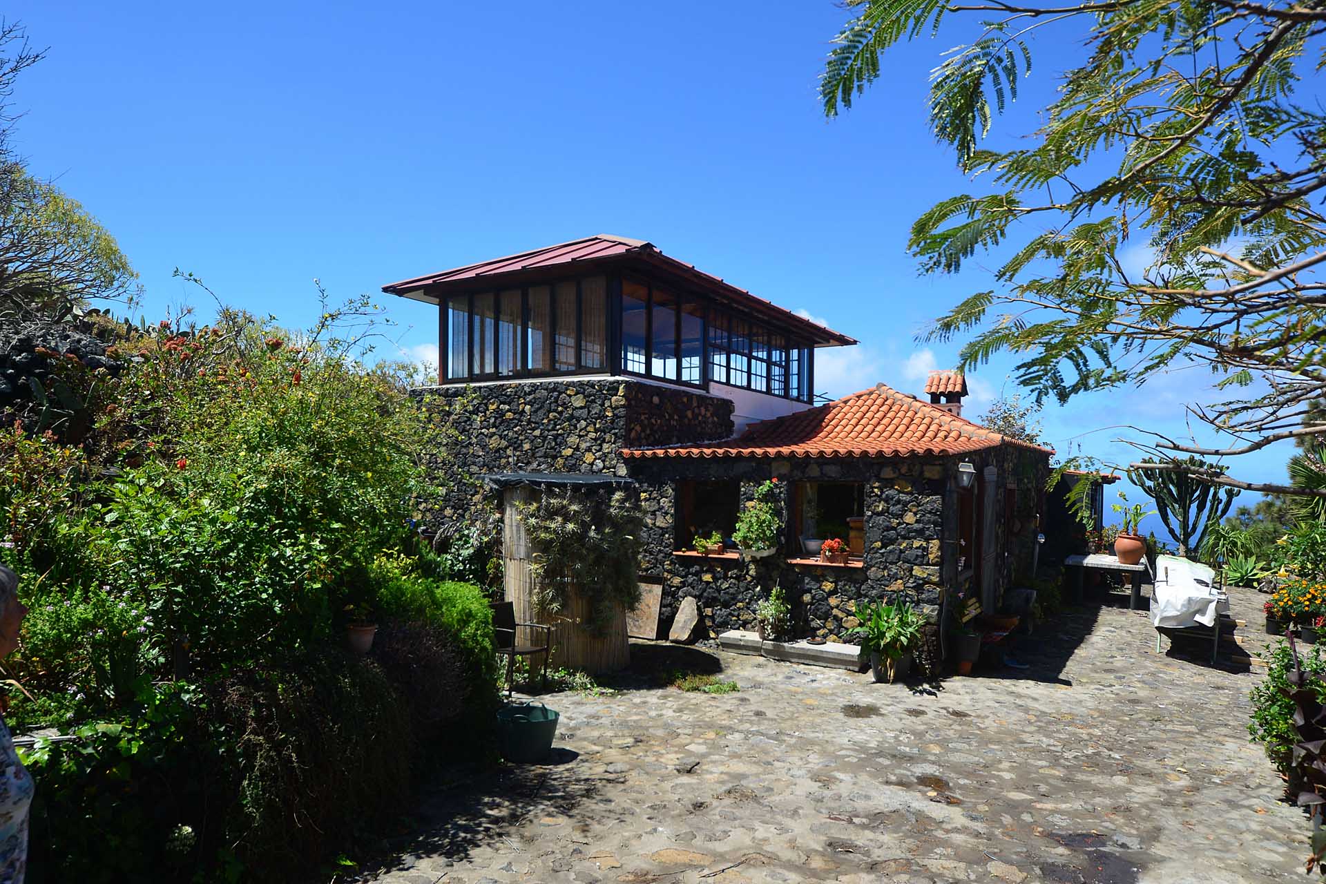 Das Haupthaus wurde in klassischer Bauweise sehr aufwändig aus handbehauenem Blaubasalt gebaut, mit den typischen, kanarischen Sichtholz-Dachstühlen versehen und als Besonderheit mit einem großen Panorama-Wintergarten im Obergeschoss ergänzt. Es beherbergt im Erdgeschoss eine Küche, ein Esszimmer, das in das Wohnzimmer übergeht, zwei Schlafzimmer, ein Tageslichtbadezimmer mit Dusche und ein Arbeits- oder Lesezimmer. Es verfügt über eine eigene Zufahrt und einen separaten Parkplatz für 2 PKW. Ein kleiner Pool steht für besonders warme Sommertage zur Abkühlung Verfügung.