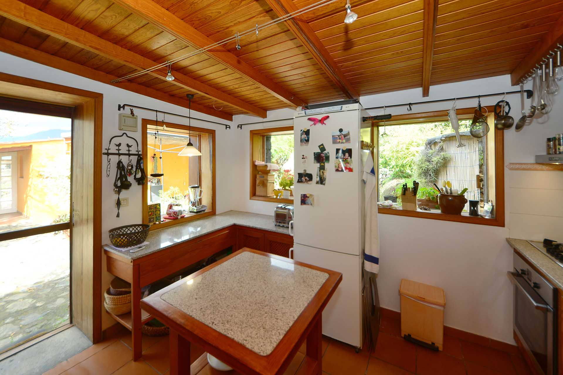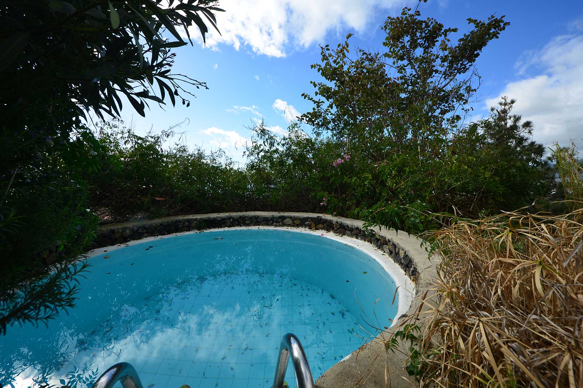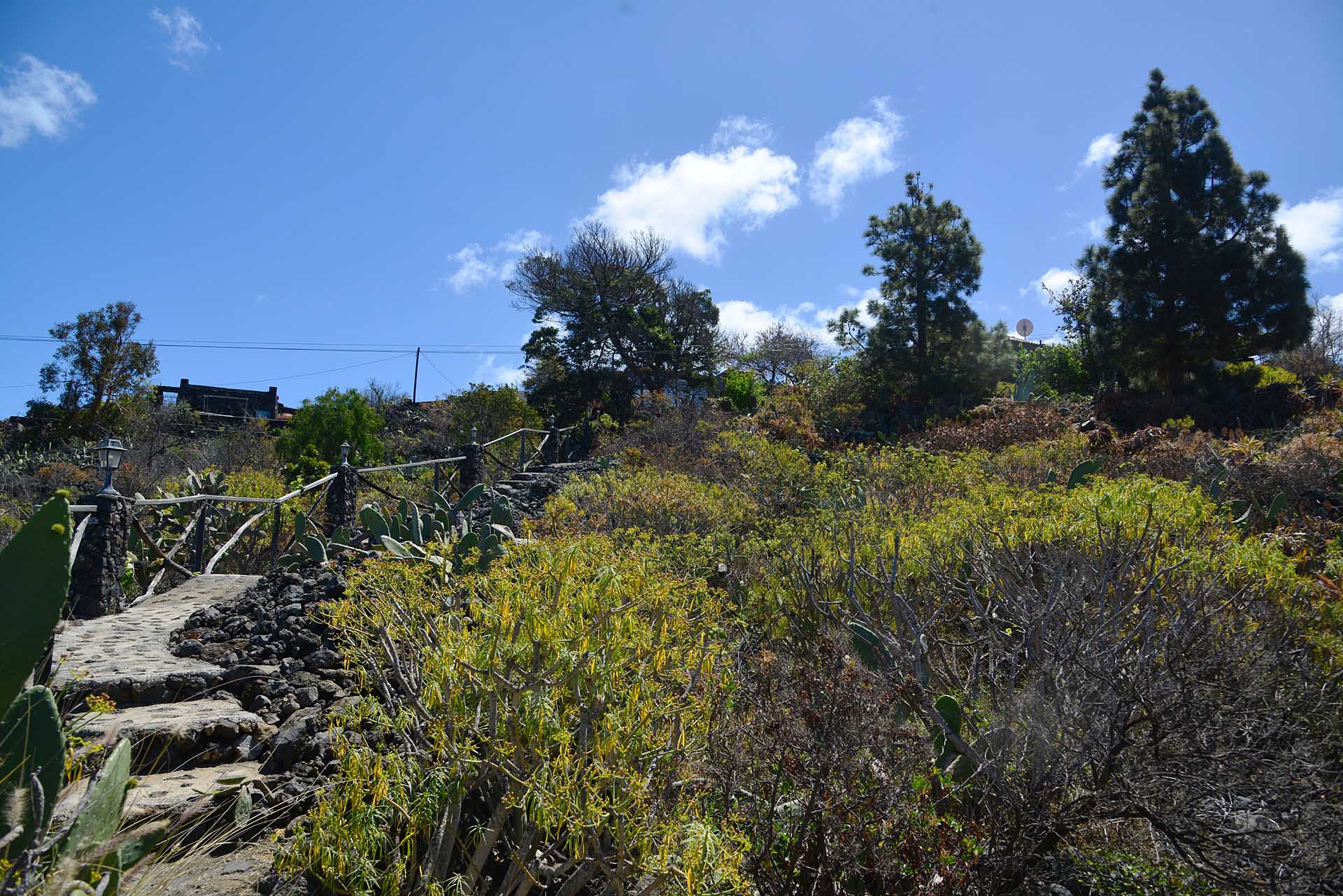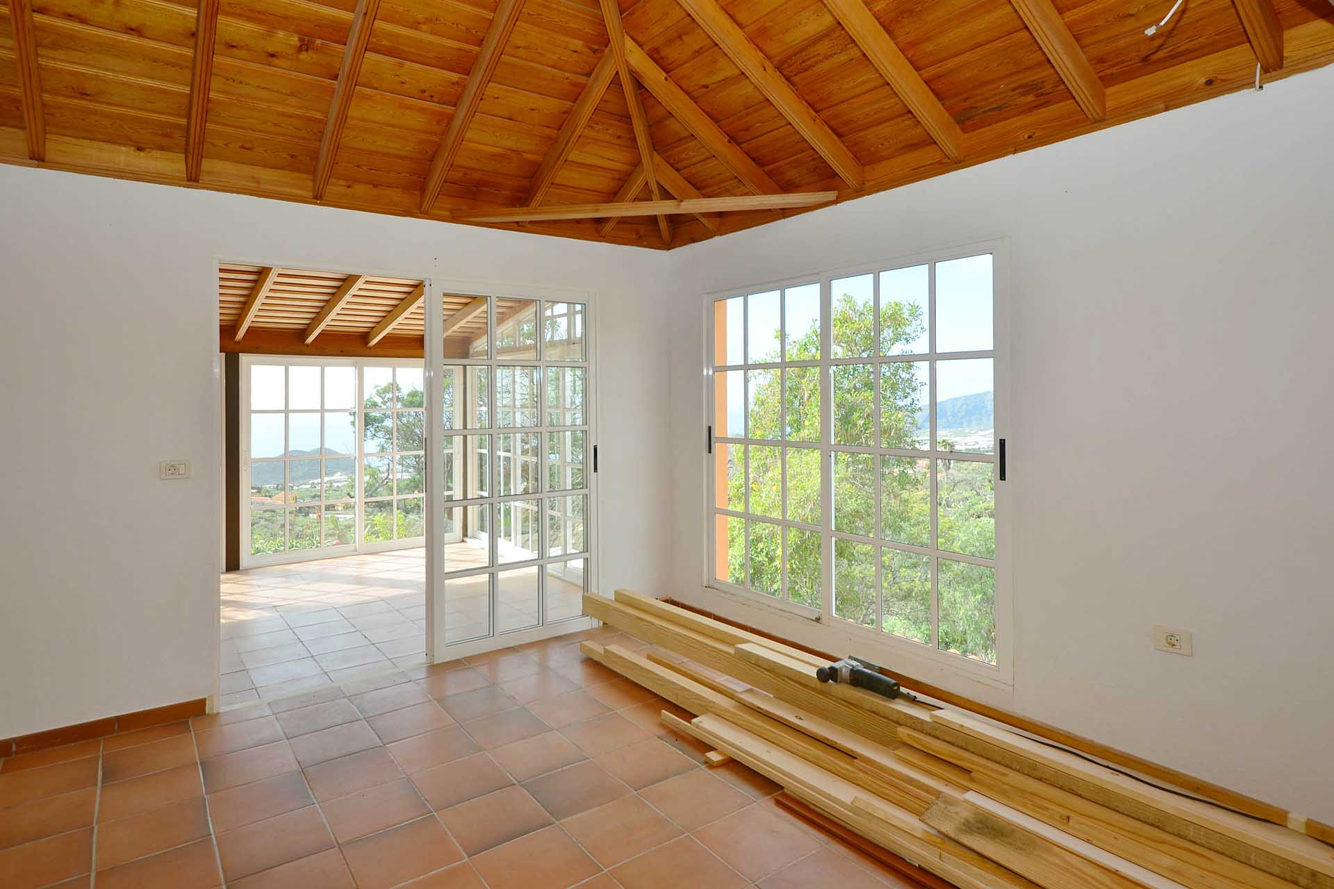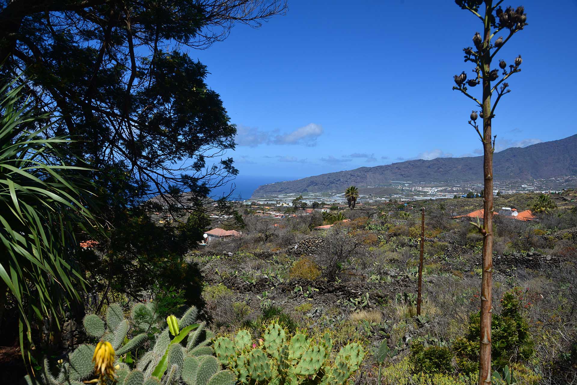 Das Haupthaus wurde in klassischer Bauweise sehr aufwändig aus handbehauenem Blaubasalt gebaut, mit den typischen, kanarischen Sichtholz-Dachstühlen versehen und als Besonderheit mit einem großen Panorama-Wintergarten im Obergeschoss ergänzt. Es beherbergt im Erdgeschoss eine Küche, ein Esszimmer, das in das Wohnzimmer übergeht, zwei Schlafzimmer, ein Tageslichtbadezimmer mit Dusche und ein Arbeits- oder Lesezimmer. Es verfügt über eine eigene Zufahrt und einen separaten Parkplatz für 2 PKW. Ein kleiner Pool steht für besonders warme Sommertage zur Abkühlung Verfügung.
