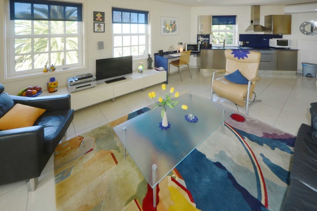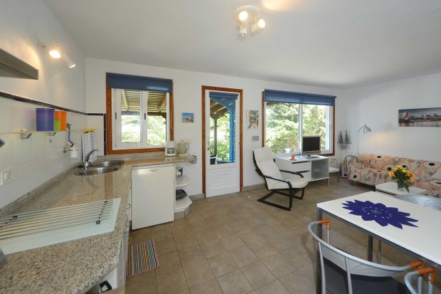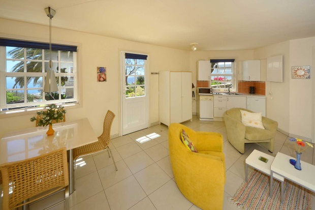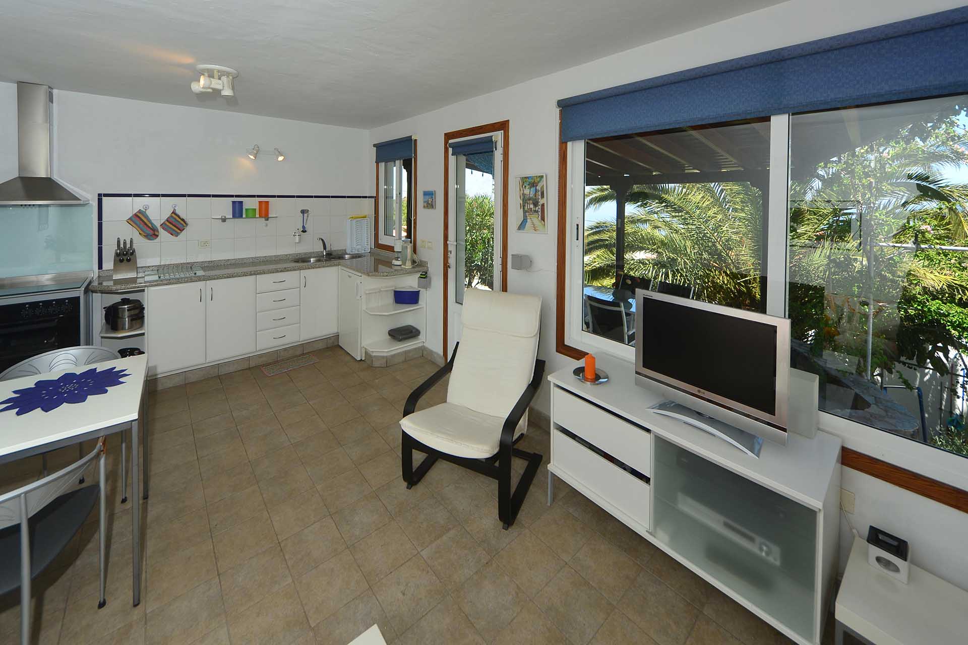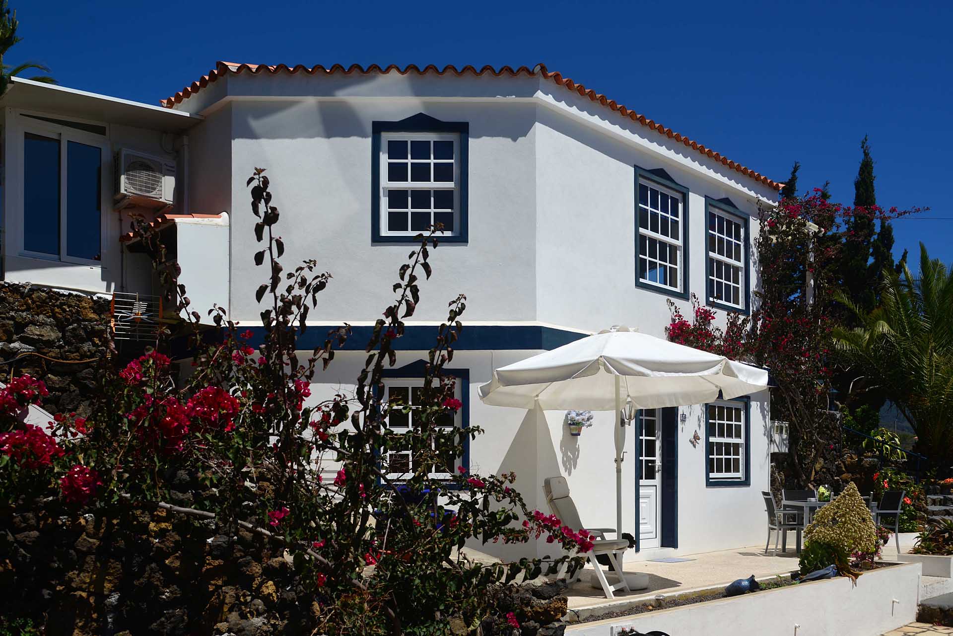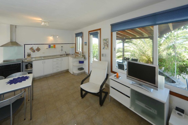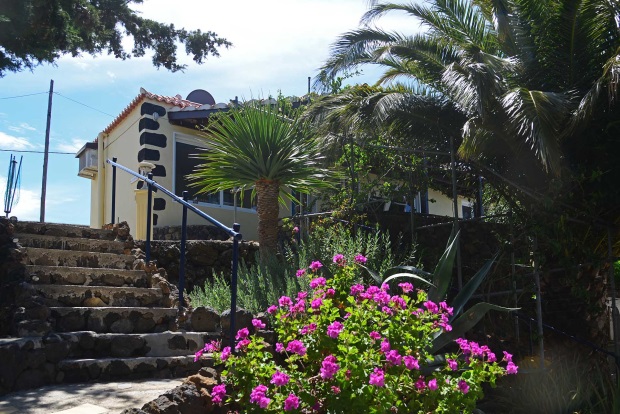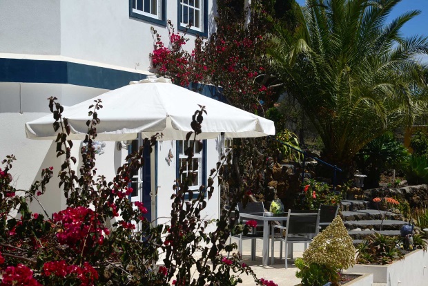 Zwischen den Palmen taucht dann das herrschaftlich wirkende, zweigeschossige Haupthaus auf, dessen Fassade kanarische Stilelemente aufweist, in der Größe der Fensterflächen jedoch eher nordeuropäischen Lichtbedürfnissen angepasst wurde. Das sich diese Idee gelohnt hat, werden Sie beim Betreten der Wohnungen in den beiden Geschossen sehen: Helle und freundliche Räume mit fantastischem Blick in den Garten und auf den Atlantik stricheln die vom Grau des Himmels gequälte, nordeuropäische Seele.