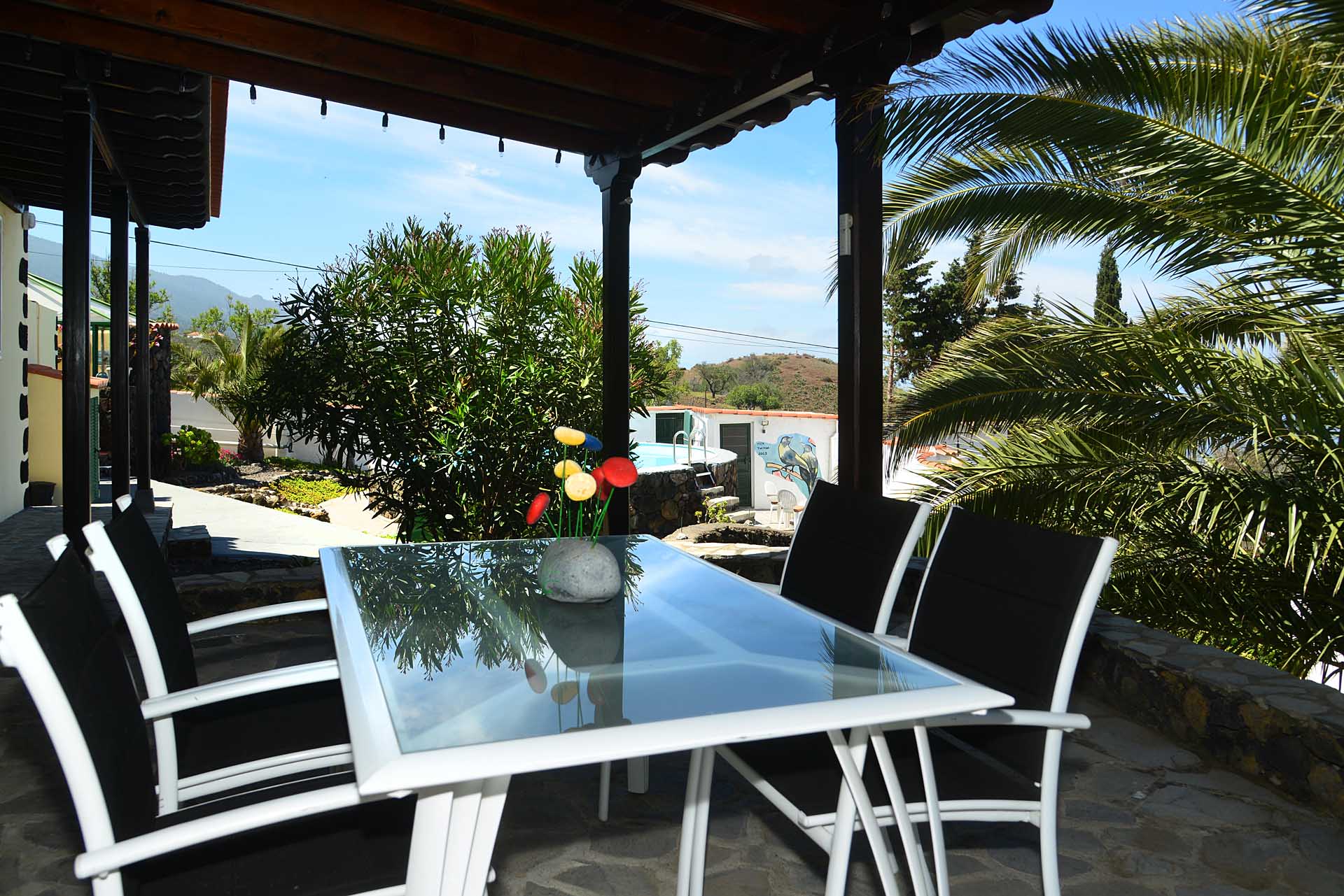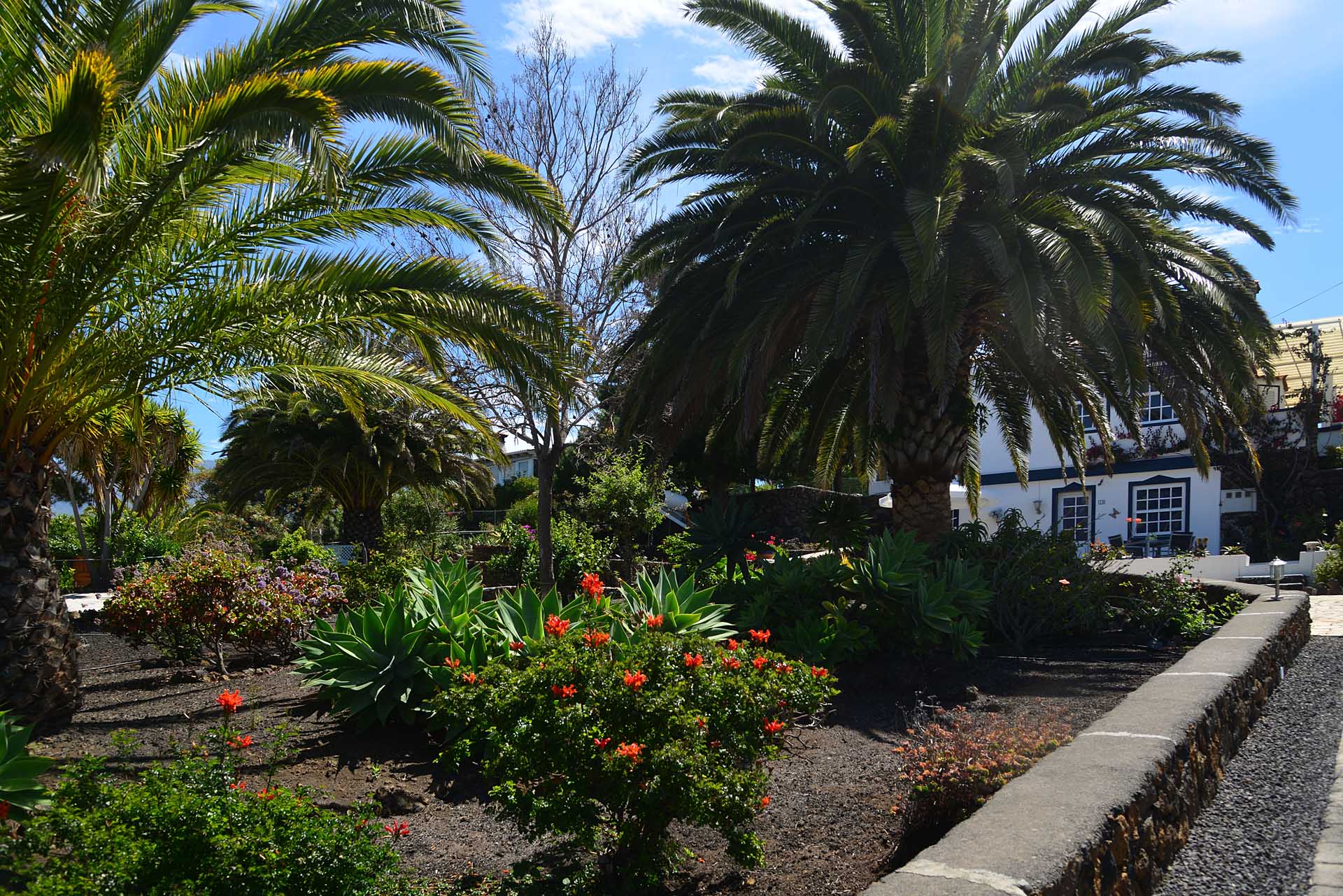 Schon wenn Sie das Grundstück betreten, werden Sie sehen, dass die Eigentümer größten Wert auf durchgängig harmonische Gestaltung, pflegeleichte Anlage und besten Zustand ihres Anwesens legen. Der Garten strahlt mit seinen großen, kanarischen Dattelpalmen und einer Vielzahl an Zier- und Fruchtbäumen subtropisches Flair aus, der Boden wurde mit Vulkanasche bedeckt und die Pflanzen automatisch bewässert, so dass das Paradies nicht in zu viel Arbeit ausartet.