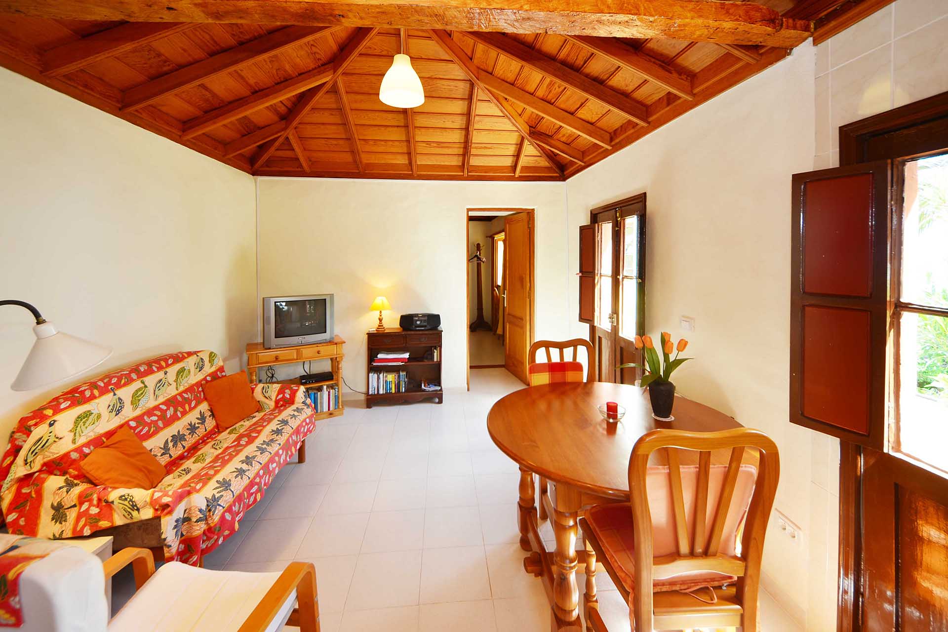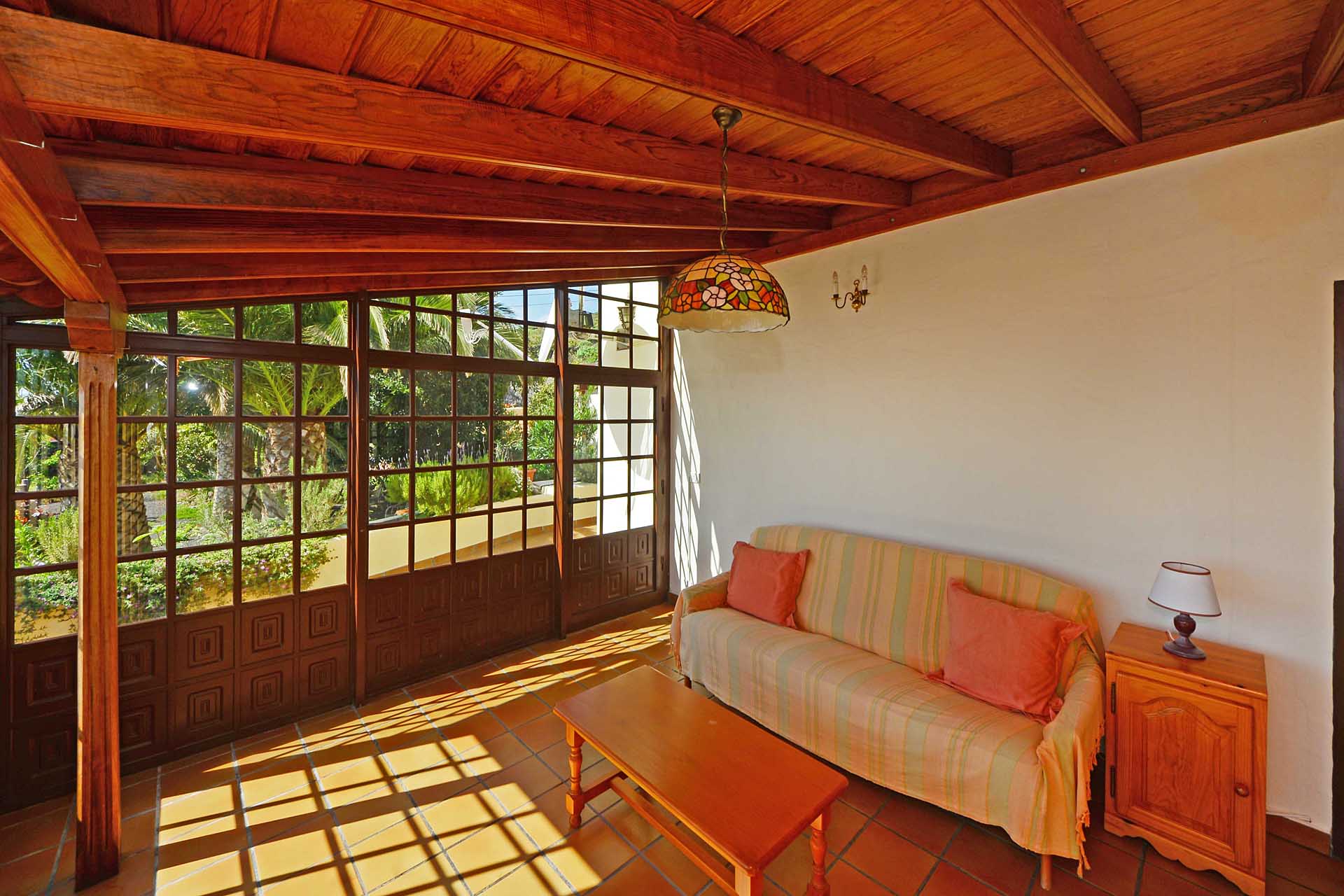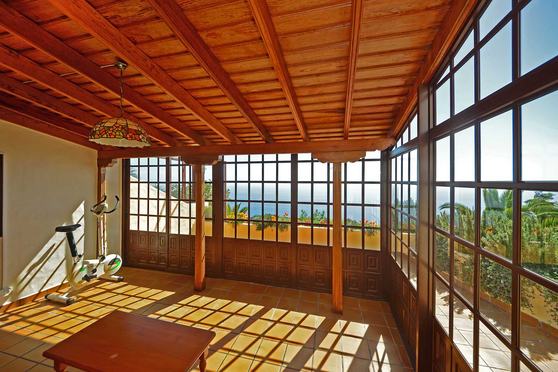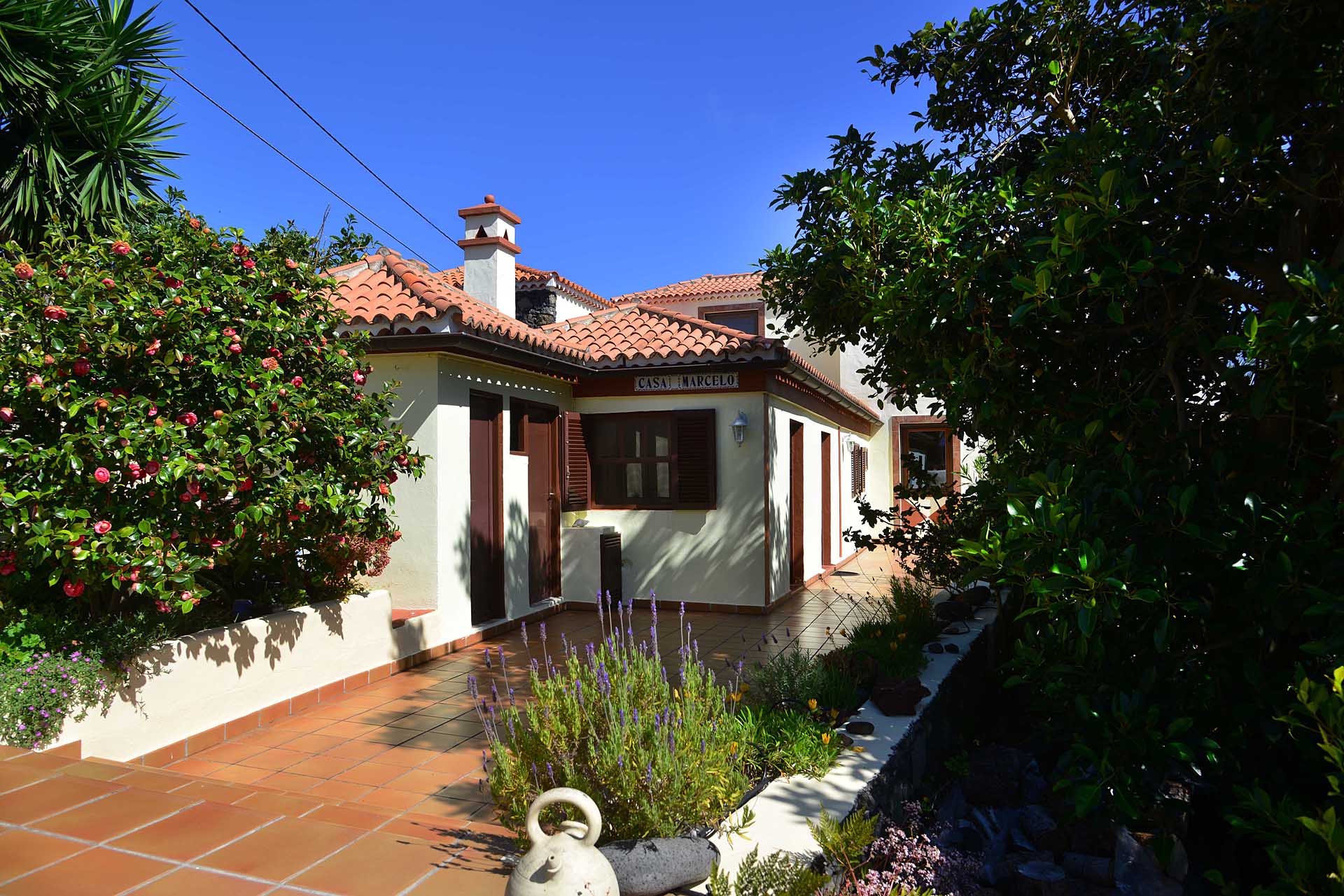 Das zweigeschossige, in kanarischem Stil gebaute Hauptgebäude (165 m²) beherbergt im Erdgeschoss ein gemütliches Kaminzimmer, eine Küche mit Essplatz, einen großen Wohnbereich der derzeit teilweise als Künstleratelier genutzt wird sowie einen Wintergarten und einen Hauswirtschaftsraum. Im Obergeschoss befinden sich ein Arbeitszimmer mit fantastischem Ausblick, ein Wannenbad, ein WC und ein geräumiges und gemütliches Schlafzimmer. Die hohen, kanarischen Dachstühle sorgen für ganzjährig angenehmes Klima und eine heimelige, warme Ausstrahlung. Über eine Treppe gelangt man in die Garage, so dass Sie unmittelbaren Zugang von der Garage in das Haupthaus haben. Auch die Garage wurde mit einem kanarischen Dachstuhl versehen, so dass sie auch zu einem vollwertigen Wohnraum umgebaut werden kann.