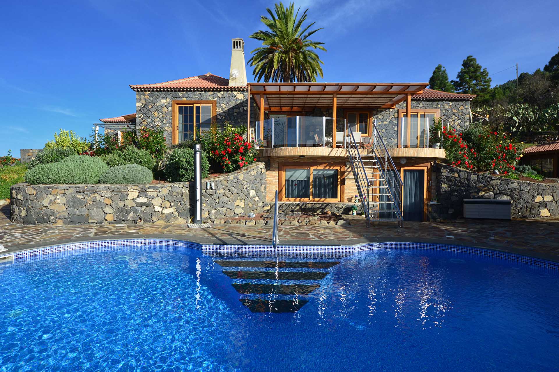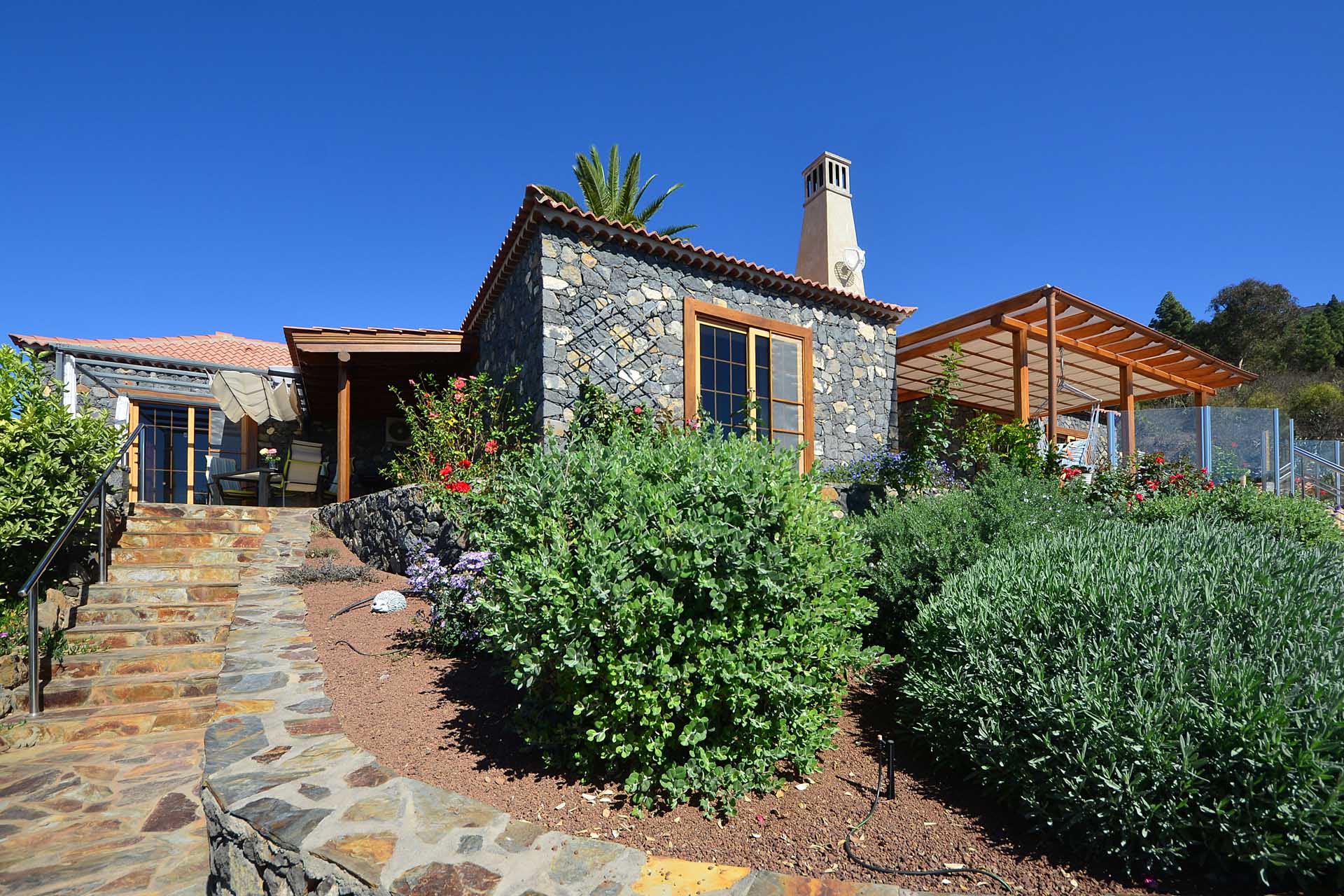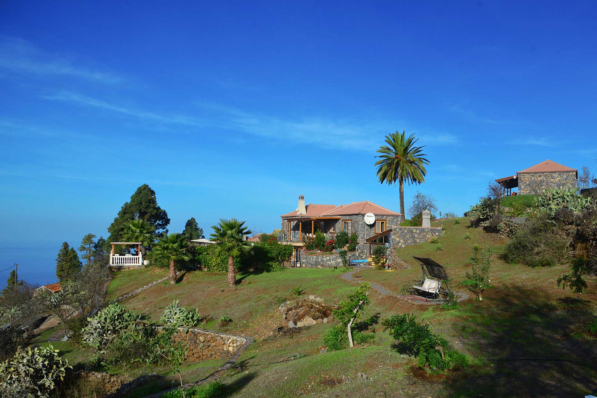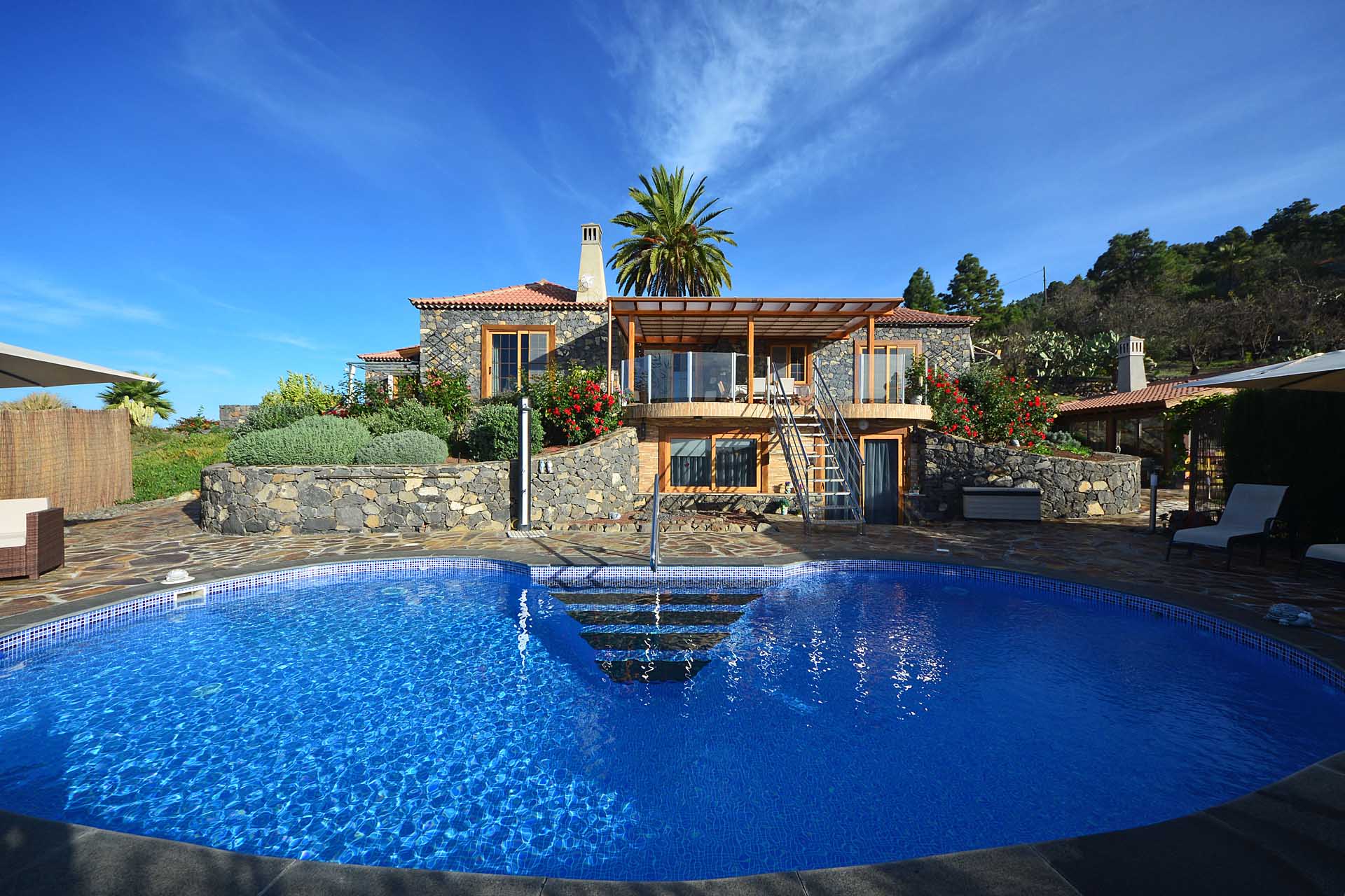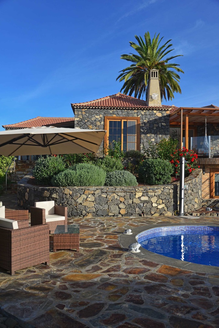Diese Finca lässt keine Wünsche offen: Sie wurde 2009 in erstklassiger Handwerksqualität komplett in doppelschaliger Bauweise aus handbehauenem Blaubasalt und Porotonziegel errichtet und 2015 erweitert sowie auf solare Stromversorgung umgestellt. In einmalig schöner Lage mit fantastischem Meerblick und herrlicher Ruhe ist sie das ideale Refugium für Residente, die auf keine Wohnqualität verzichten möchten und sich an der Vermietung des separaten Gästehauses erfreuen wollen.