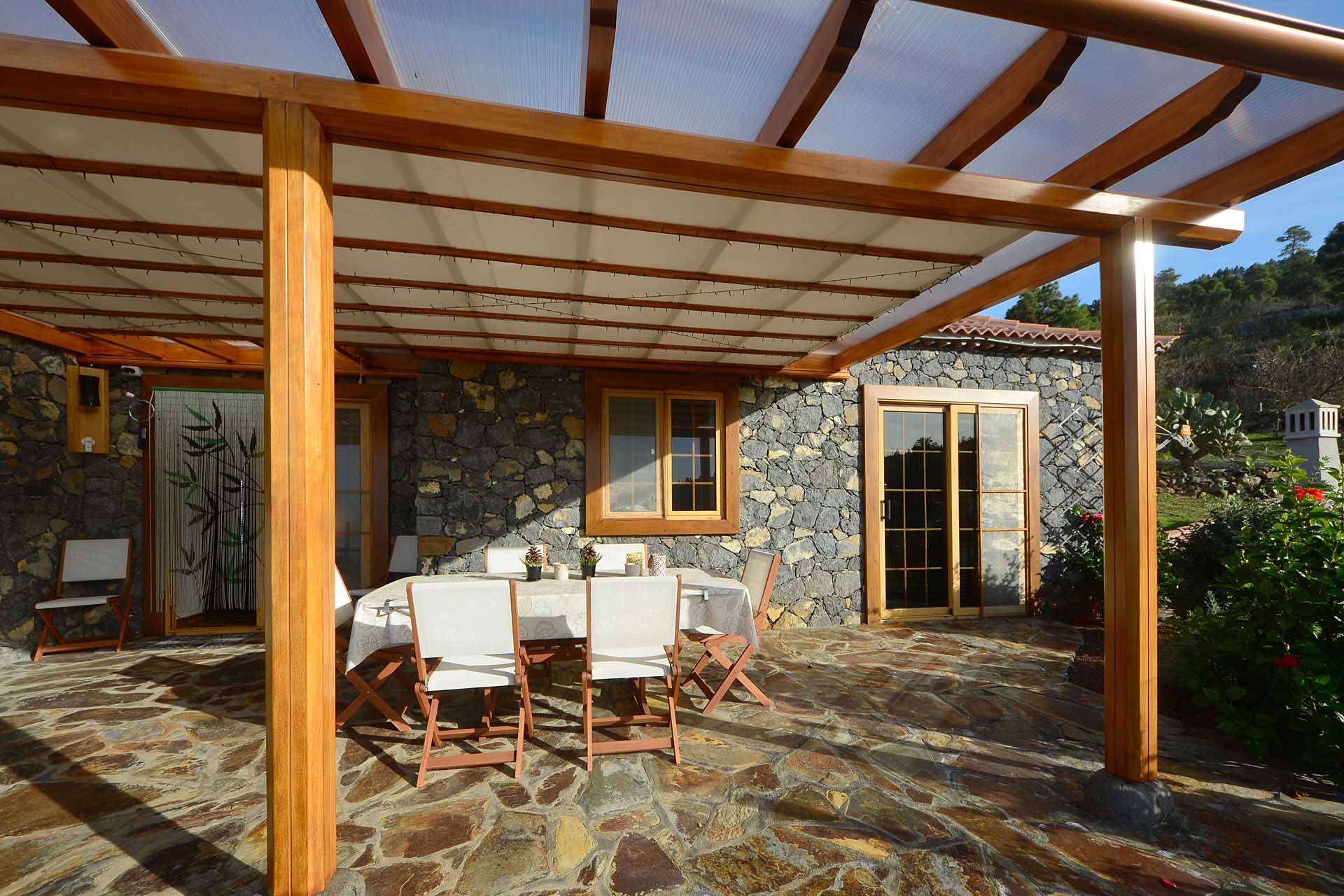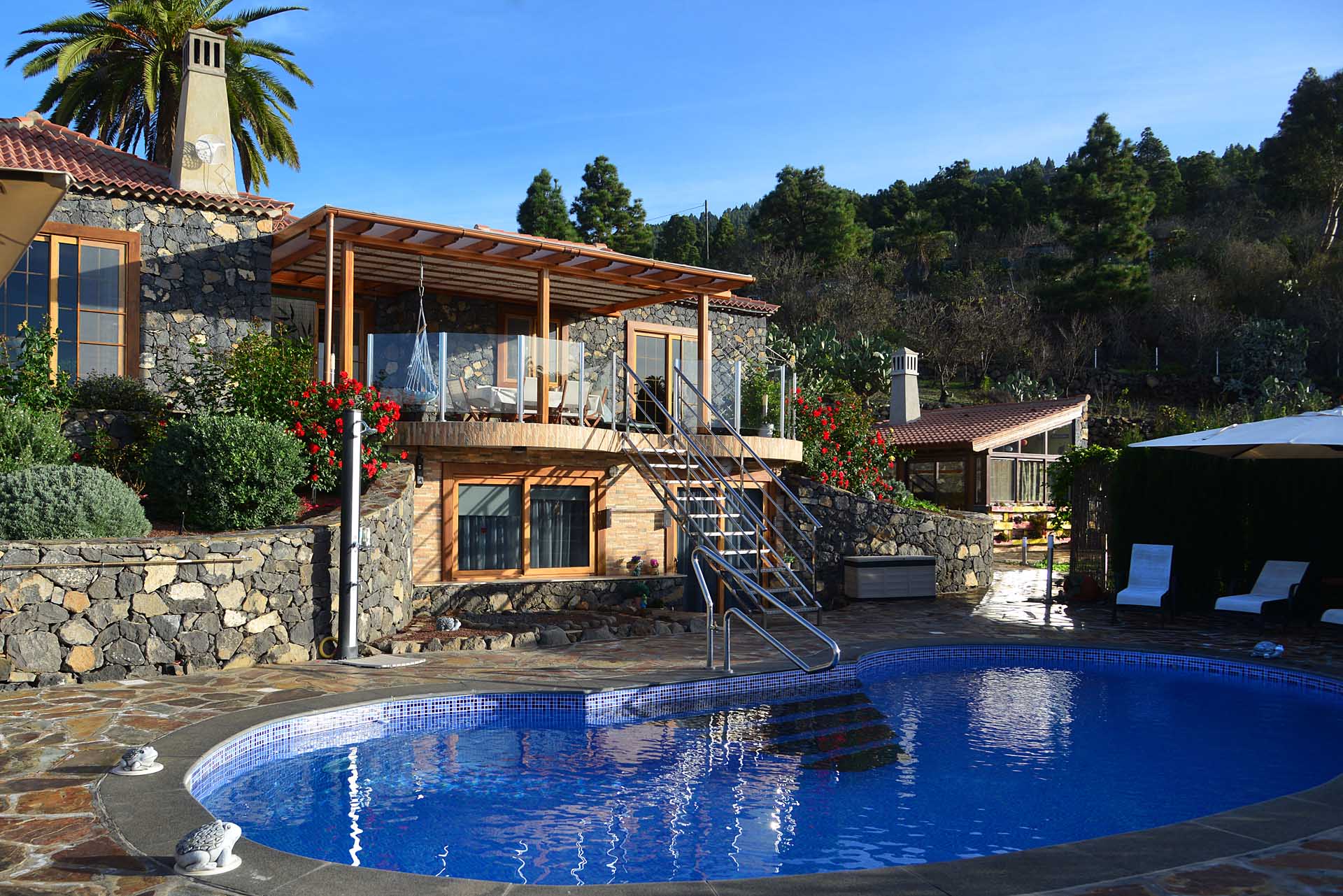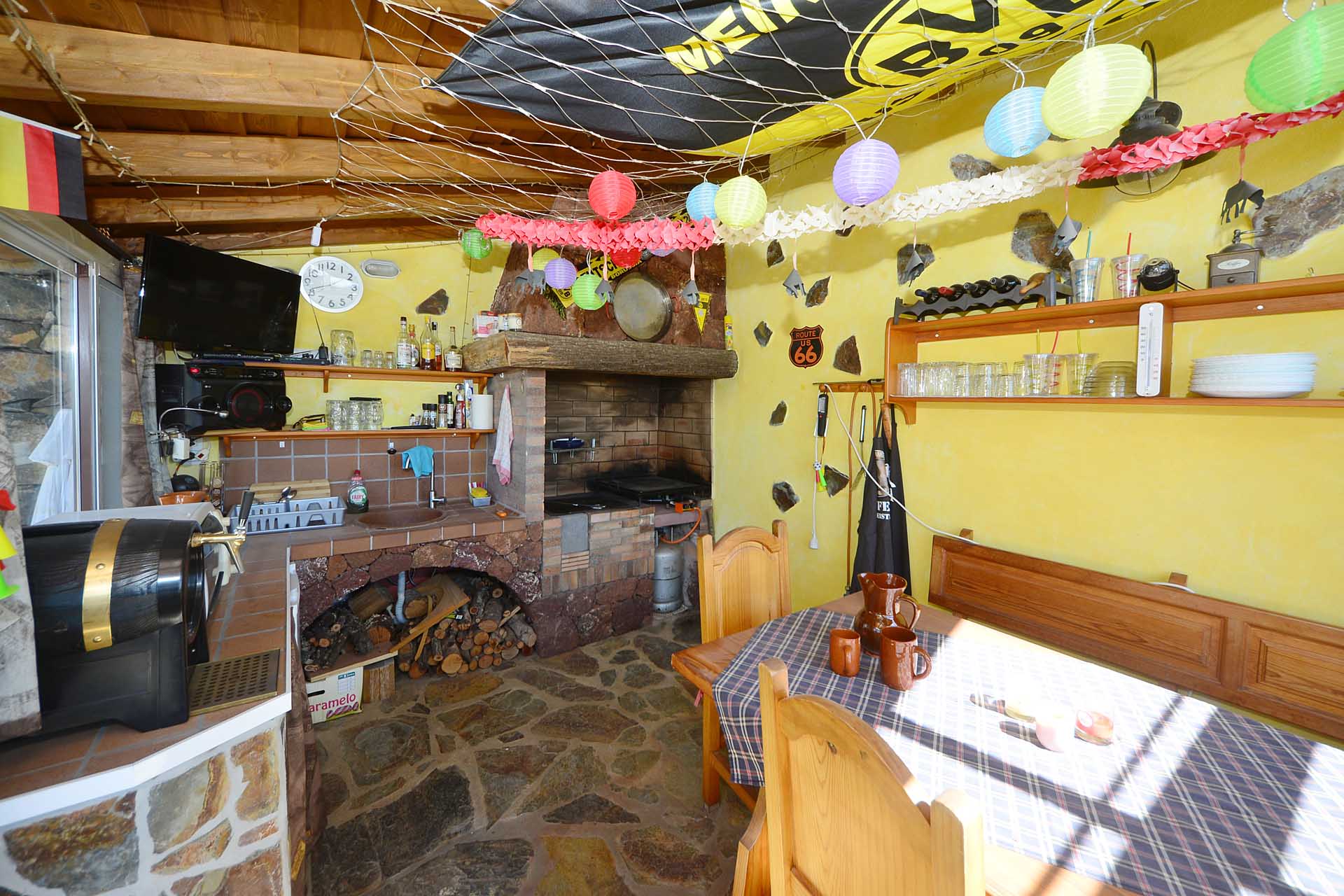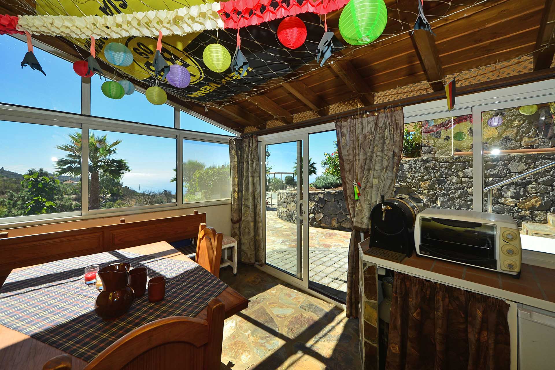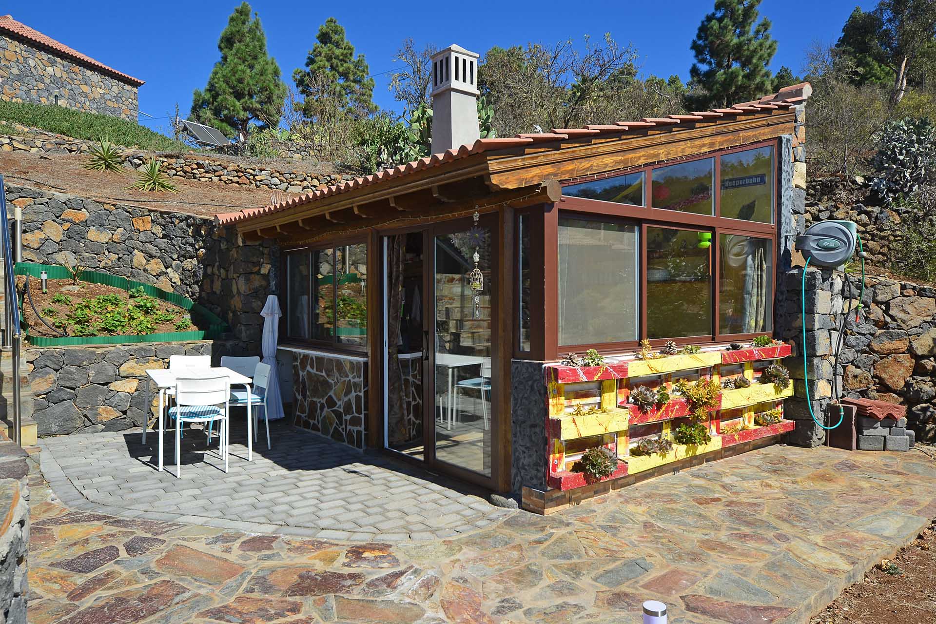 Zum Haupthaus gehört noch ein Freisitz, der das Gefühl vermittelt, direkt im Himmel zu sitzen, sowie ein kleiner Festsaal mit der landesüblichen Feuerstelle und gasbetriebenem Paellakocher – eine gute Möglichkeit mit Freunden ausgelassen zu feiern, ohne nachher das ganze Haus putzen zu müssen, weshalb diese sogenannten „Barbacoas“ bei Spaniern so ungemein beliebt sind.