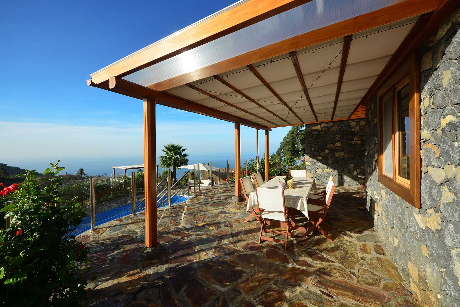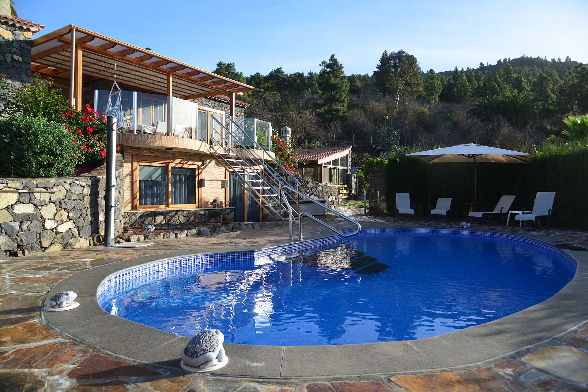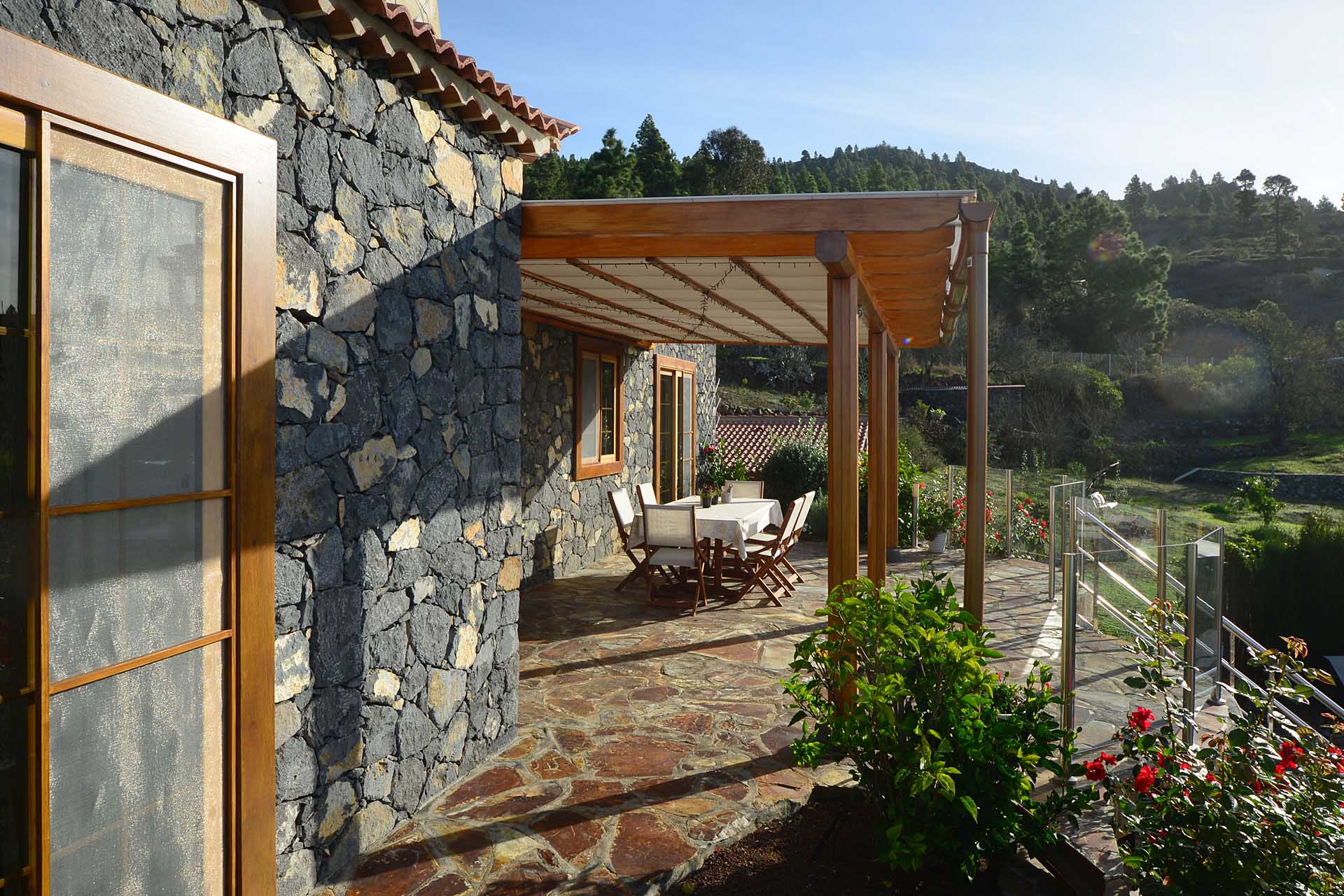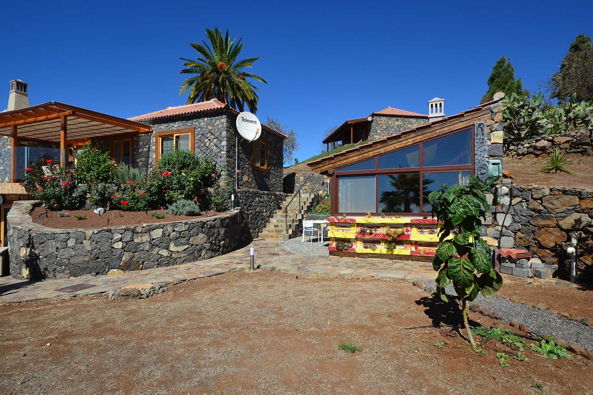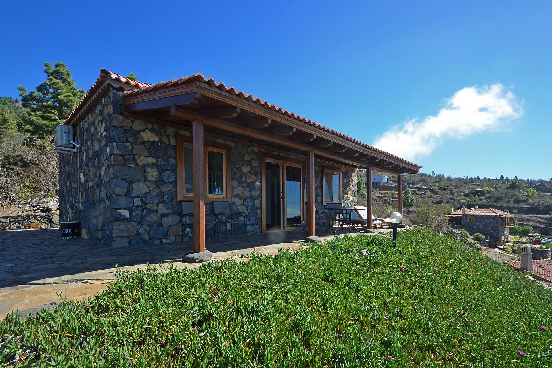 Zum Haupthaus gehört noch ein Freisitz, der das Gefühl vermittelt, direkt im Himmel zu sitzen, sowie ein kleiner Festsaal mit der landesüblichen Feuerstelle und gasbetriebenem Paellakocher – eine gute Möglichkeit mit Freunden ausgelassen zu feiern, ohne nachher das ganze Haus putzen zu müssen, weshalb diese sogenannten „Barbacoas“ bei Spaniern so ungemein beliebt sind.