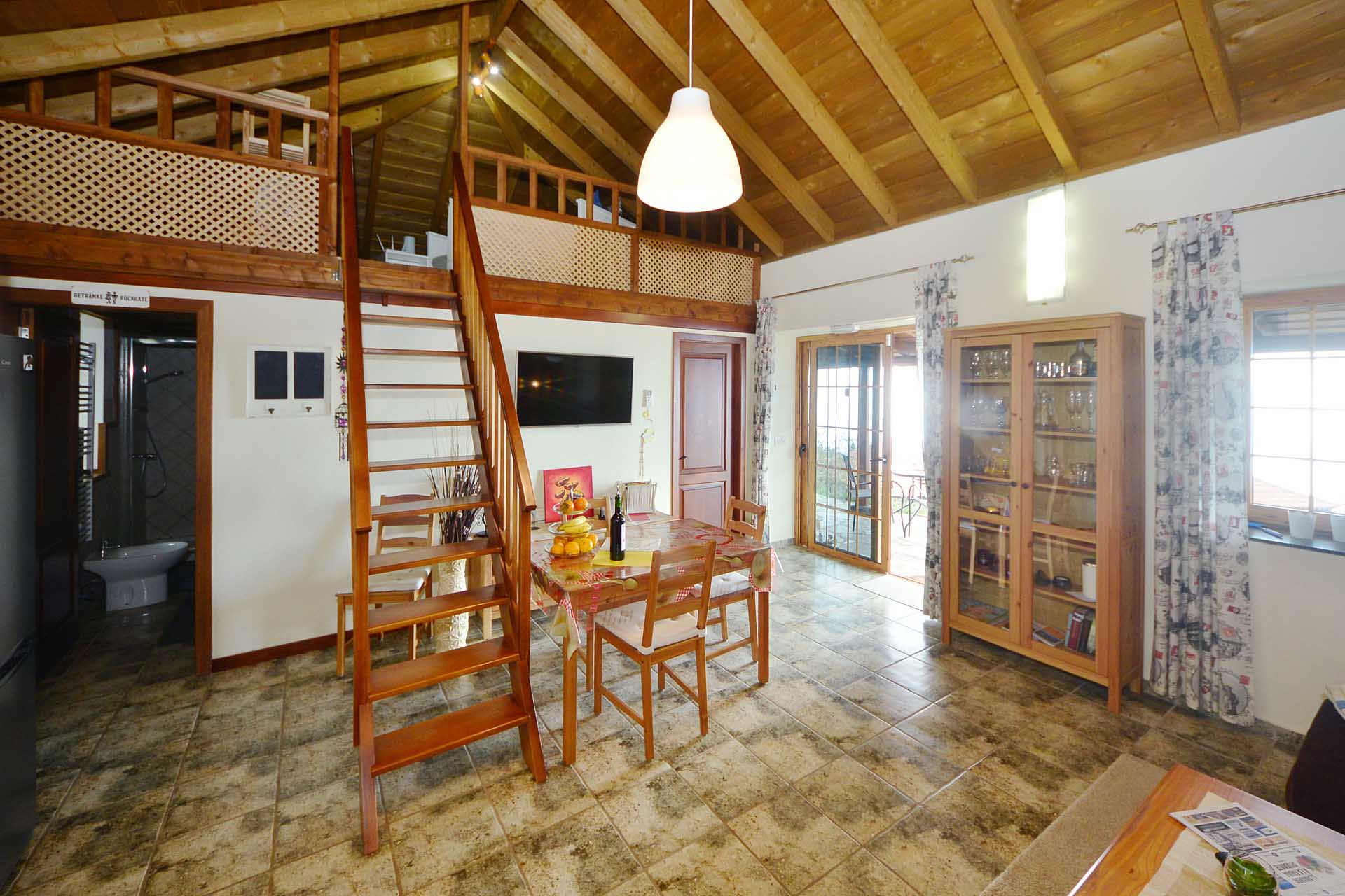 Ein wichtiger Bestandteil der Finca ist das separate Gästehaus, das über eine touristische Vermietungslizenz verfügt und derzeit für 79€/Tag sehr erfolgreich an Gäste vermietet wird. Es besteht aus einer gemütlichen Wohnküche, einem Schlafzimmer, einem Badezimmer, einem Alkoven und einer überdachten Terrasse mit herrlichem Meerblick.