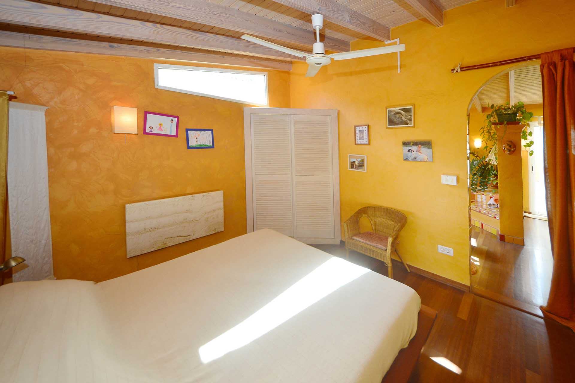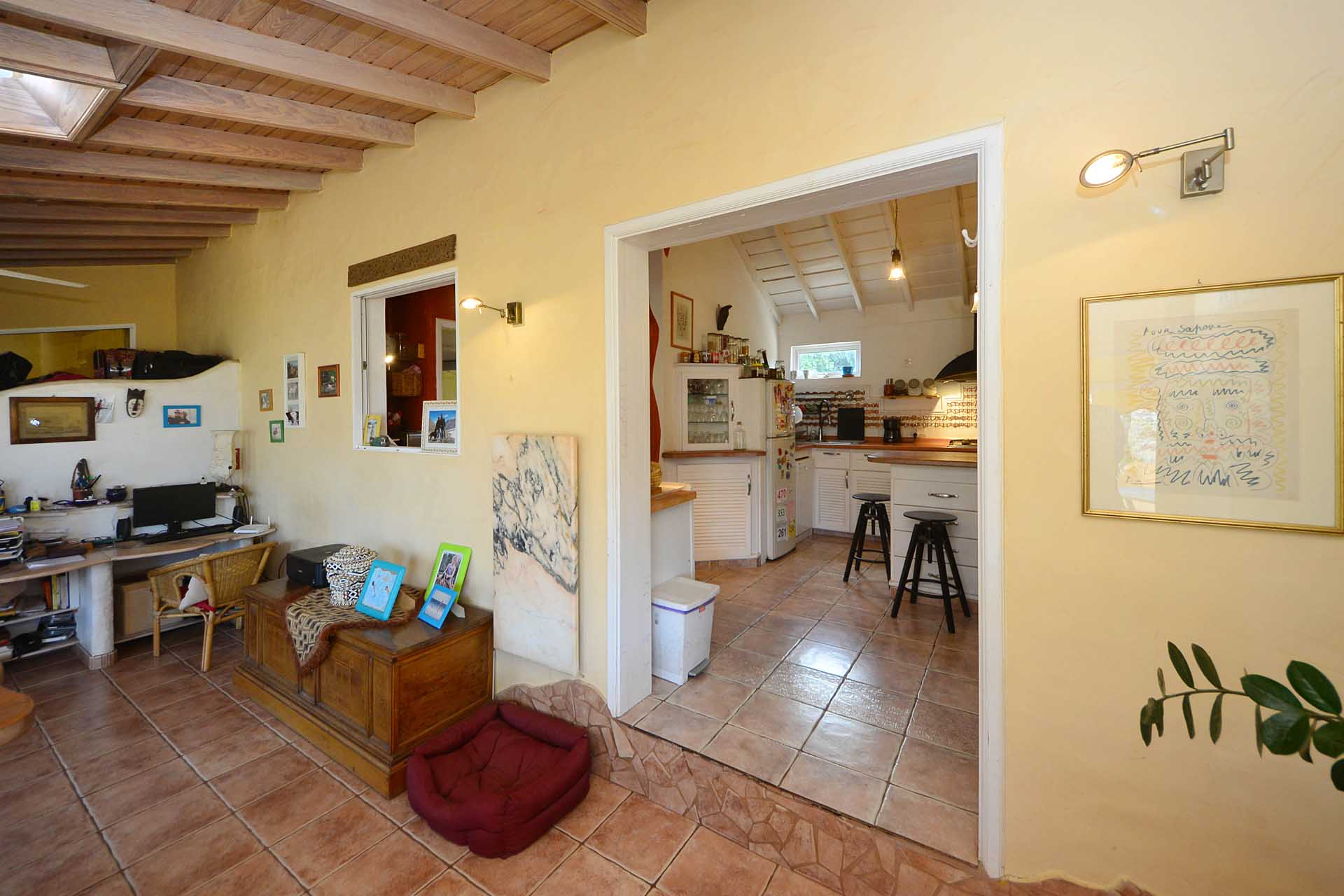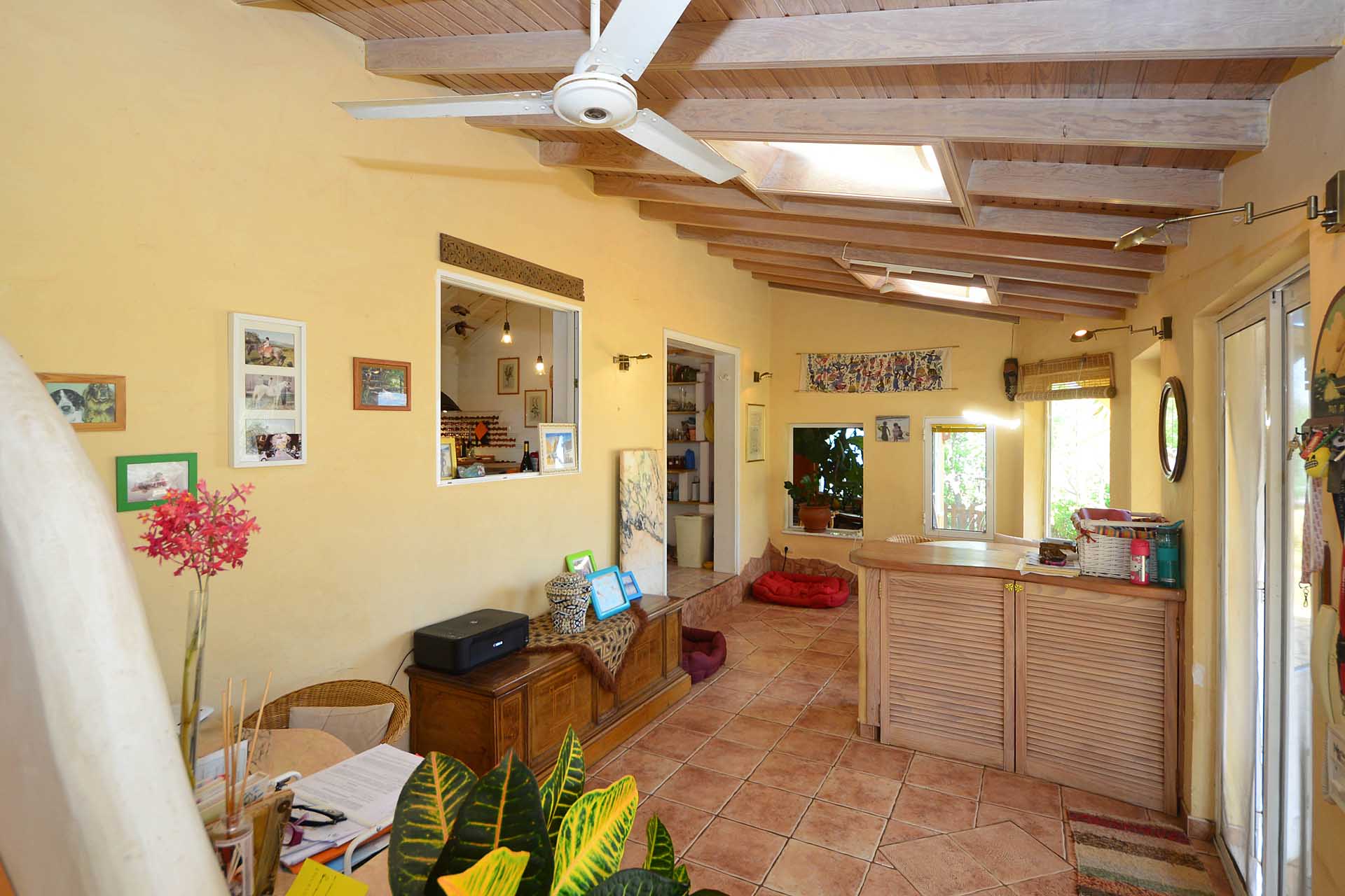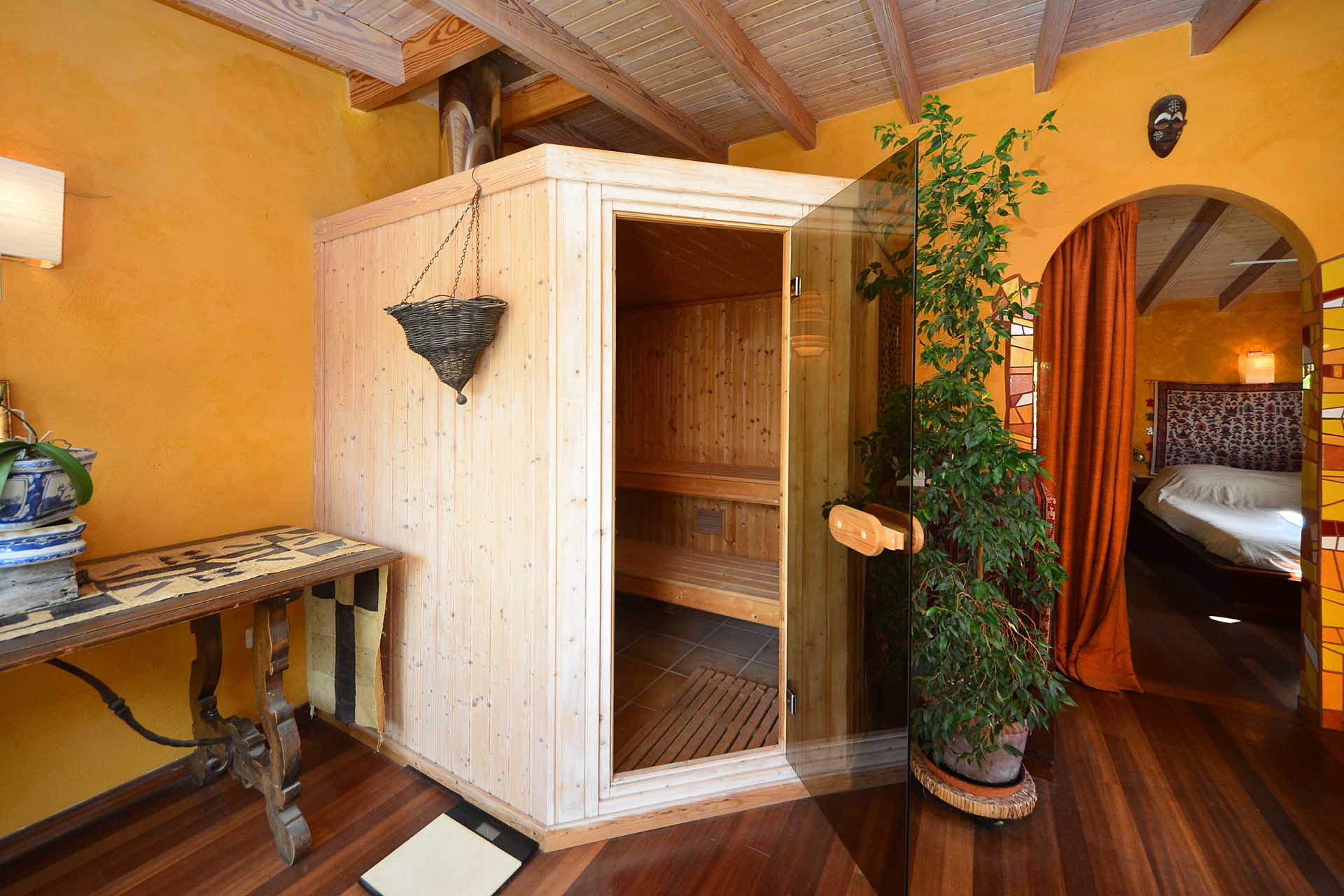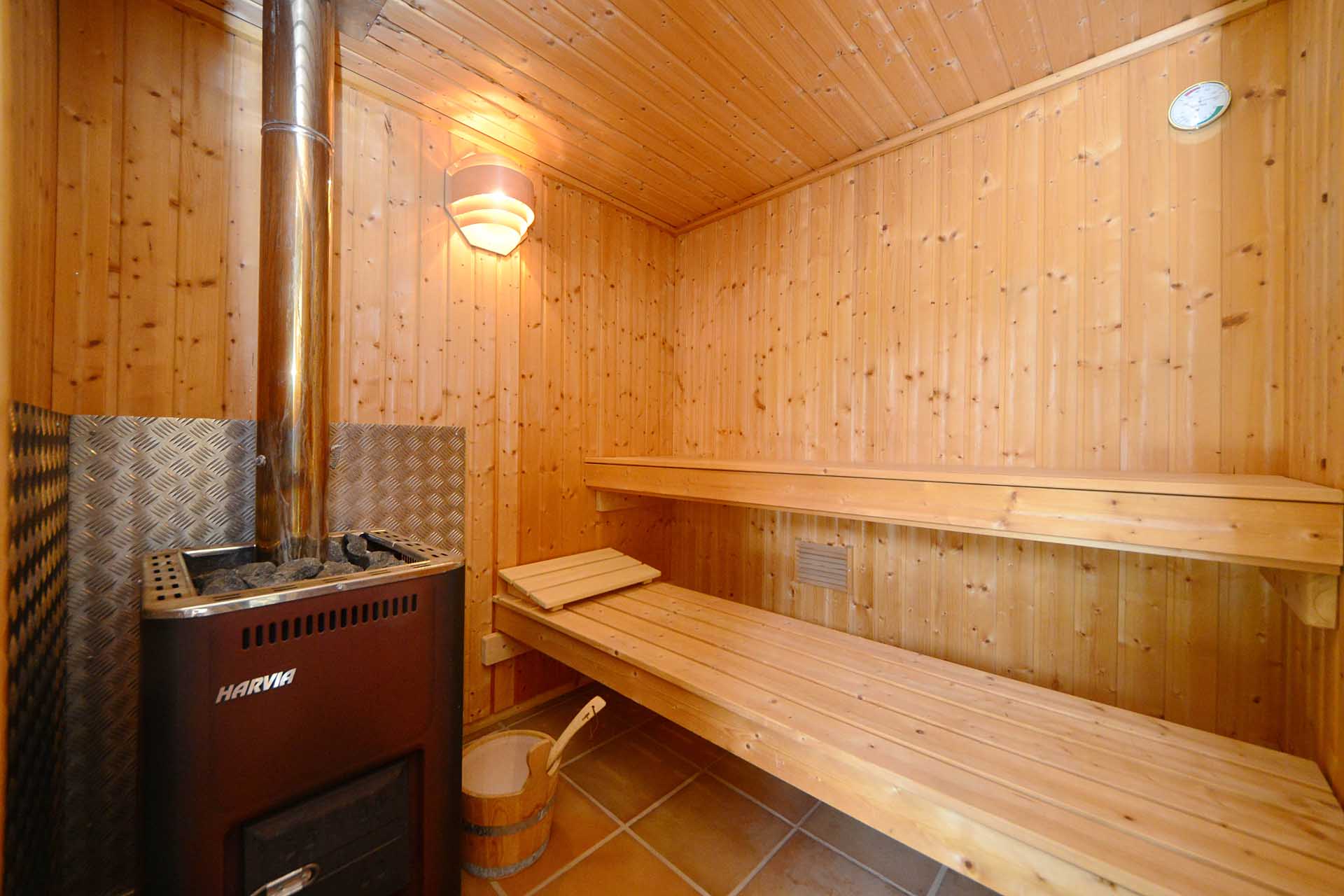 Sie betreten es über eine große, überdachte Terrasse und einen hellen Eingangsbereich, der zu einer Seite als Esszimmer und zur anderen Seite als kleines Büro genutzt wird. An das Esszimmer schließt die gut ausgestattete Küche, die zu einer Seite das große, halbrunde und mit vielen Panoramafenstern versehene Wohnzimmer mit gemütlichem Glastüren-Kamin und zu anderen Seite den Schlaf- und SPA-Bereich erschließt, an. Es folgt das kleinere Schlaf- oder Jugendzimmer mit Hochbett und ein kleines Bad, sowie das Hauptschlafzimmer, das an den teilweise mit Mosaiken sehr schön gestalteten SPA-Bereich anschließt, der mit großer Badewanne, rund gestalteter Dusche und einem kleinen Fitness Bereich mit Sauna gesundheitsbewußten Menschen viel Freude bereiten wird. Vom SPA-Bereich gelangen Sie in einen mit Natursteinplatten belegten Innenhof, der vollständig vor neugierigen Blicken geschützt ist.