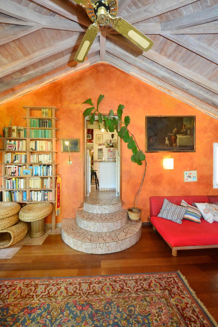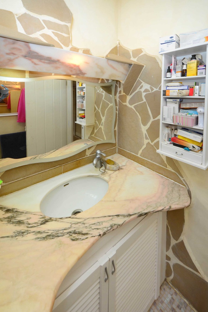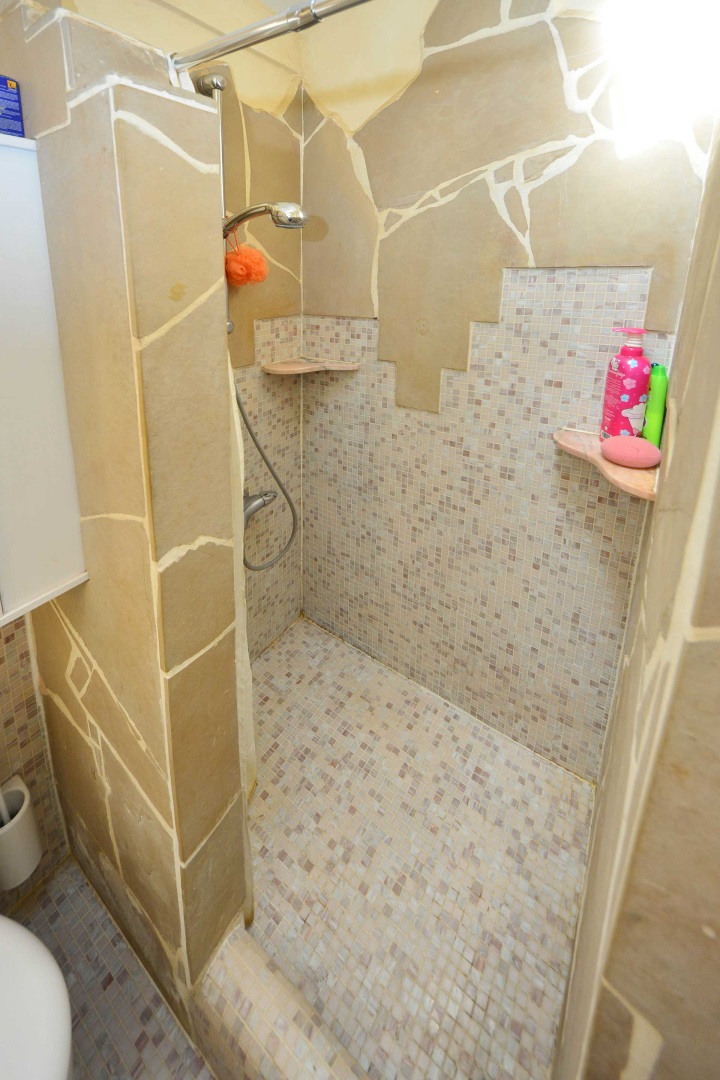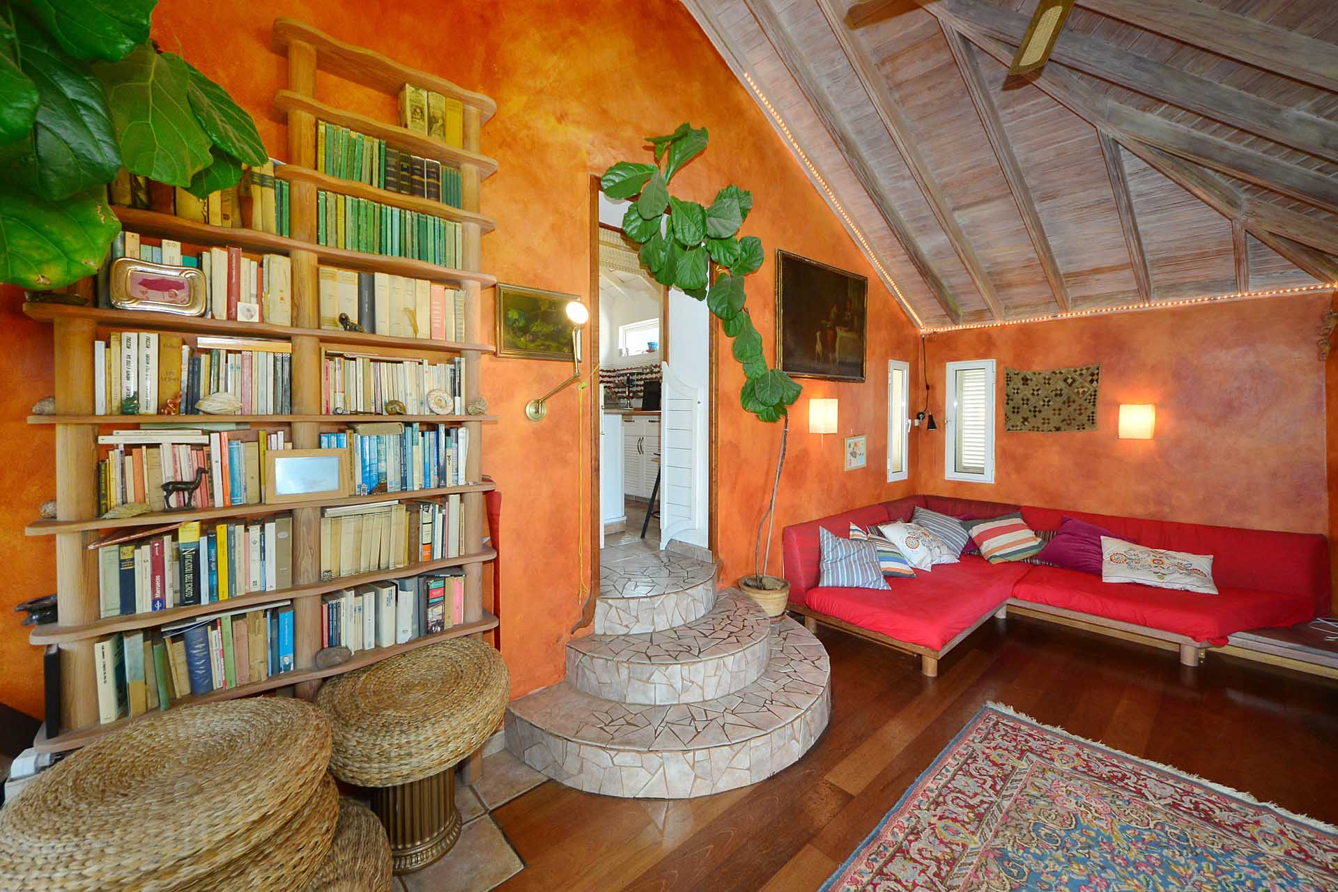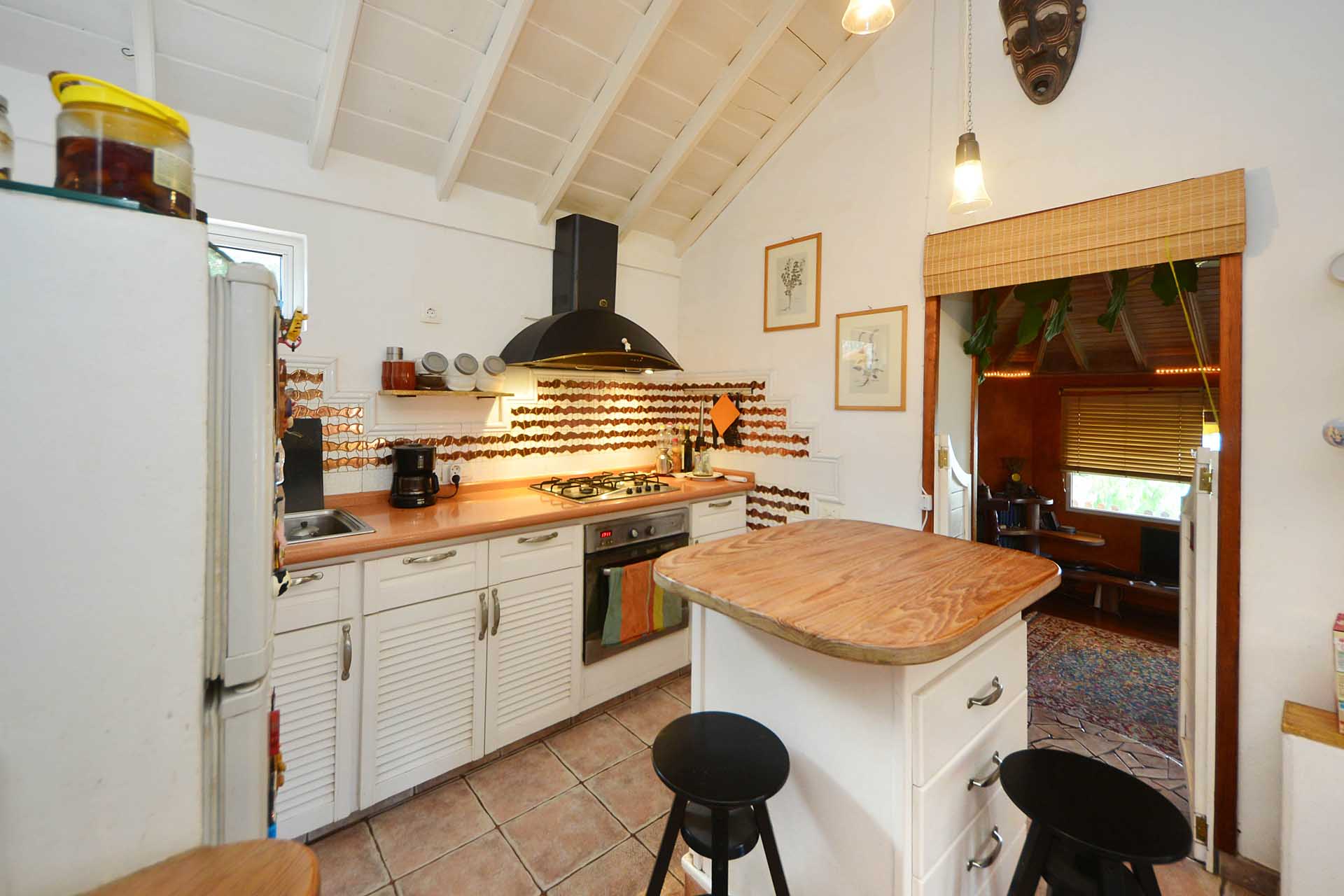 Sie betreten es über eine große, überdachte Terrasse und einen hellen Eingangsbereich, der zu einer Seite als Esszimmer und zur anderen Seite als kleines Büro genutzt wird. An das Esszimmer schließt die gut ausgestattete Küche, die zu einer Seite das große, halbrunde und mit vielen Panoramafenstern versehene Wohnzimmer mit gemütlichem Glastüren-Kamin und zu anderen Seite den Schlaf- und SPA-Bereich erschließt, an. Es folgt das kleinere Schlaf- oder Jugendzimmer mit Hochbett und ein kleines Bad, sowie das Hauptschlafzimmer, das an den teilweise mit Mosaiken sehr schön gestalteten SPA-Bereich anschließt, der mit großer Badewanne, rund gestalteter Dusche und einem kleinen Fitness Bereich mit Sauna gesundheitsbewußten Menschen viel Freude bereiten wird. Vom SPA-Bereich gelangen Sie in einen mit Natursteinplatten belegten Innenhof, der vollständig vor neugierigen Blicken geschützt ist.