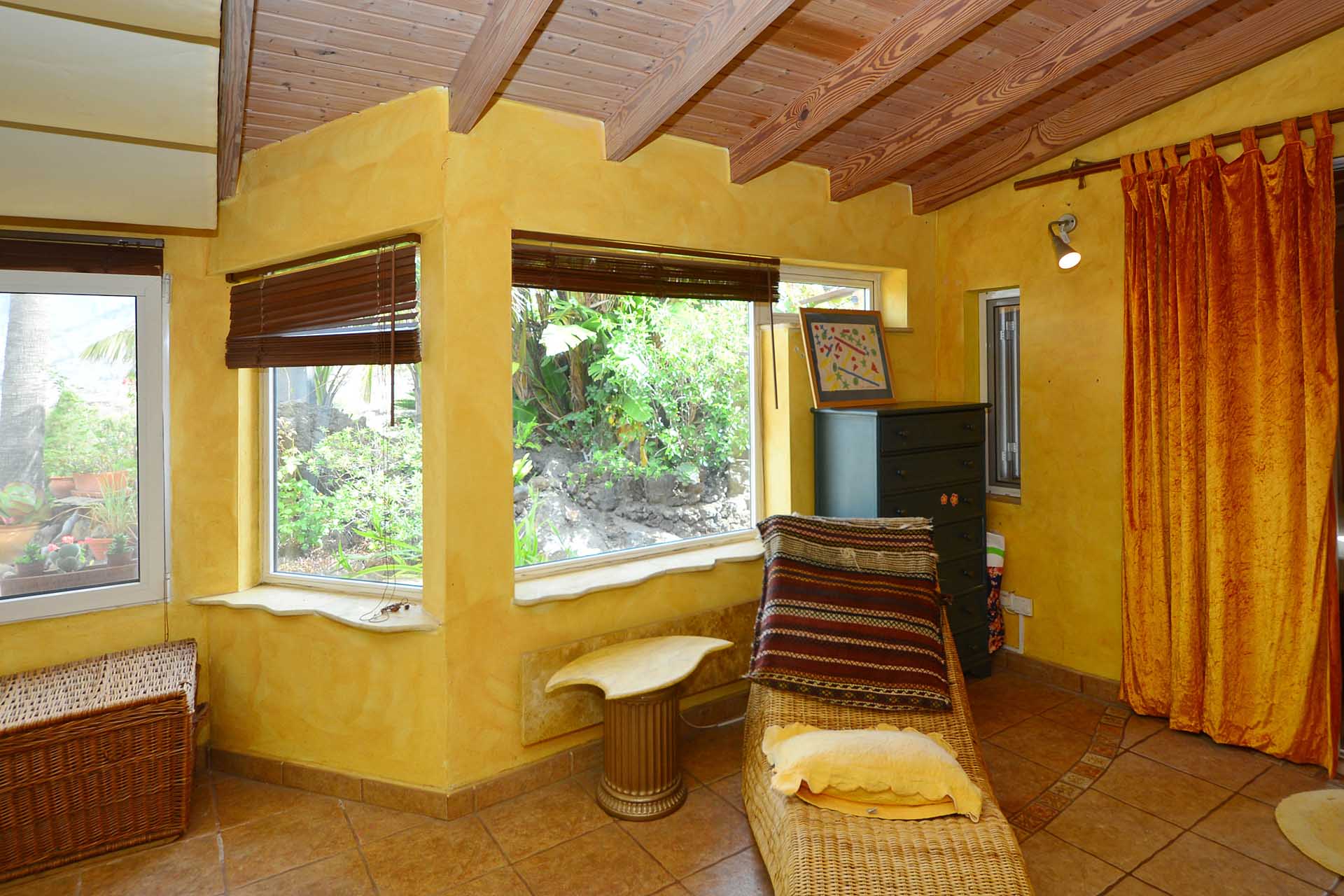 Der Garten ist mit großen Bäumen gut eingewachsen, er bietet noch Platz für z.B. ein Gemüsebeet oder einen Hühnerstall und ist auf mehreren Ebenen angelegt. Das Grundstück ist stark strukturiert, was den herrlichen Blick in die Berge und auf den Atlantik garantiert. Es steht Parkraum für bis zu drei PKW zur Verfügung.