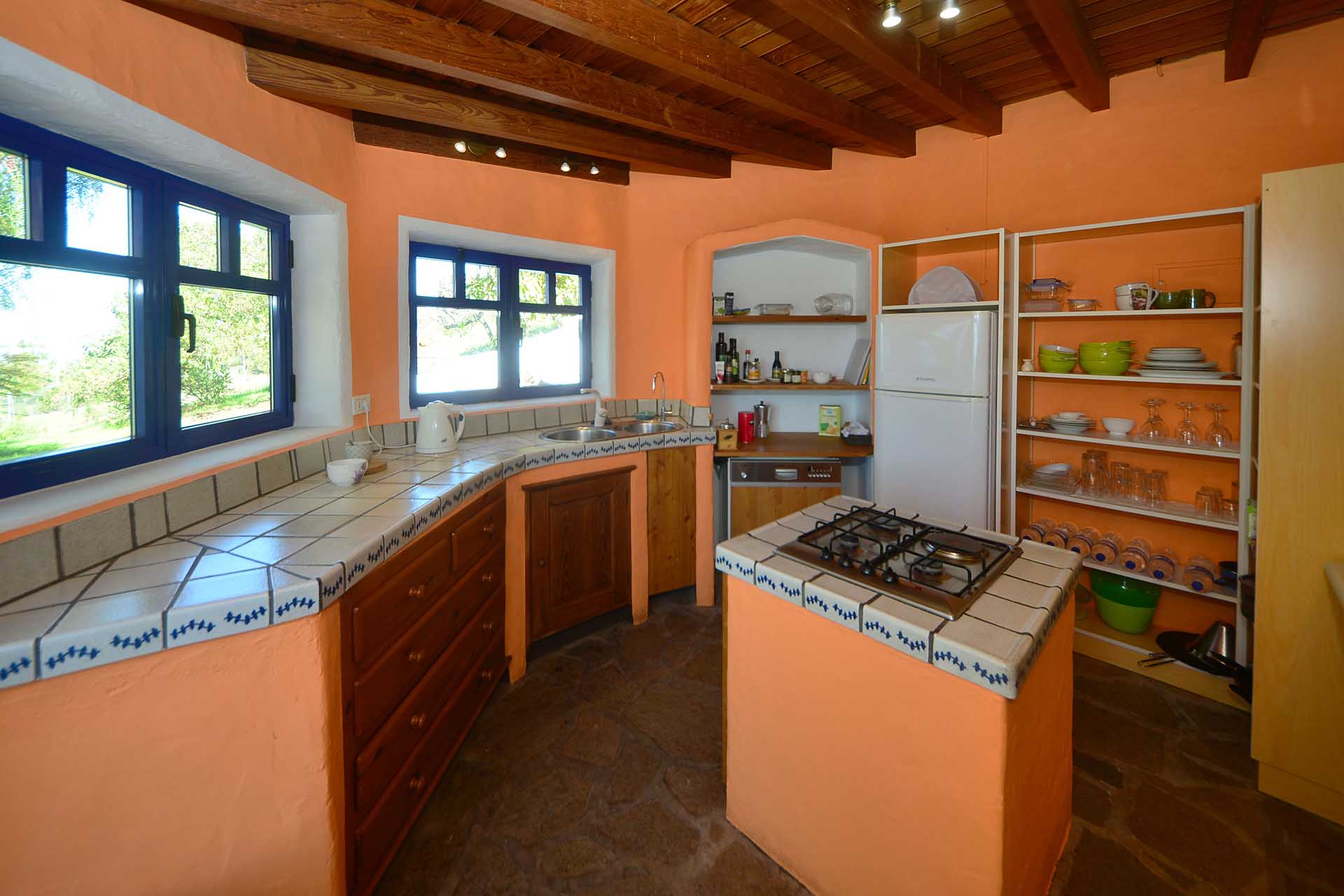 Das Haus beherbergt ein Wohnzimmer und ein modernes Bad, die beide 2012 neu errichtet wurden, sowie einen sehr großzügigen und hellen Essbereich mit anschließender halboffener Küche. In der Küche sorgt eine Kochinsel für freien Zugang von allen Seiten und ein besonderes Flair. Ein Arbeitsbereich für zwei Arbeitsplätze eröffnet viele Möglichkeiten. Ein offener, zweiter Wohnbereich könnte auch mit geringem Aufwand in ein weiteres Schlafzimmer umgewandelt werden.