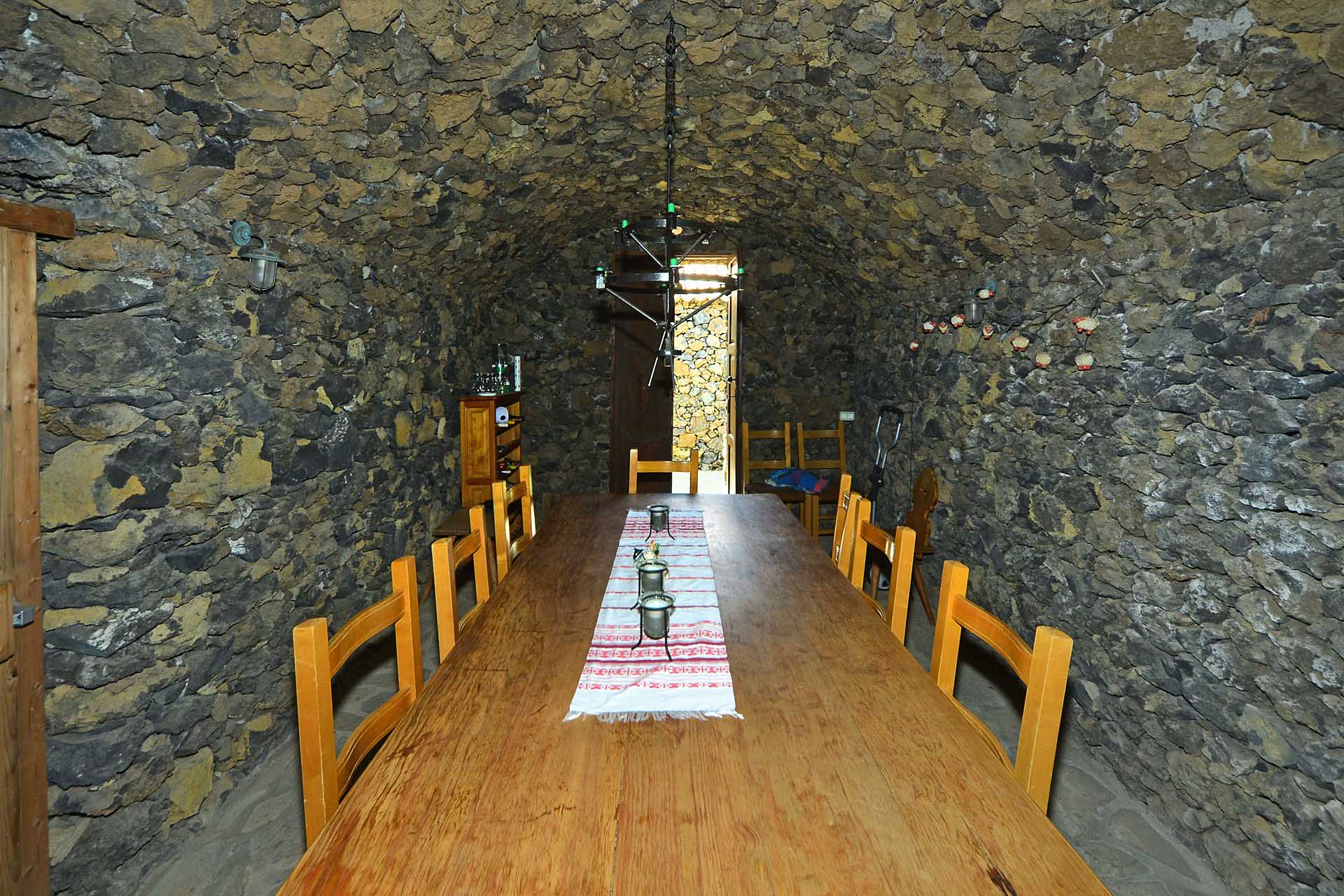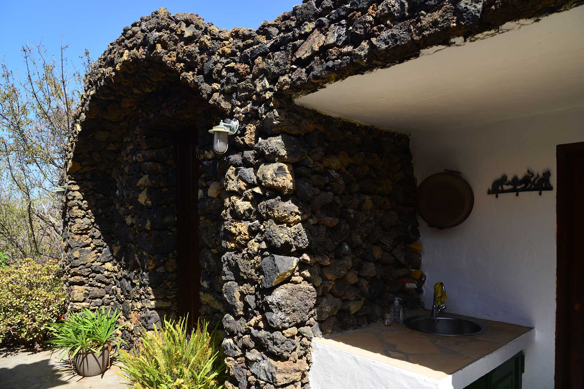 Wer gerne ausgelassen mit Gästen feiern möchte, findet in der separat in den Berg gebauten Bodega sein Refugium für bis zu acht Gäste. In klassischer Gewölbemanier komplett aus Natursteinen gebaut strahlt dieser die Tradition kanarischer Weinkultur aus und beherbergt noch ganz nebenbei eine Sauna sowie eine Außenküche und ein separates Gästebad.