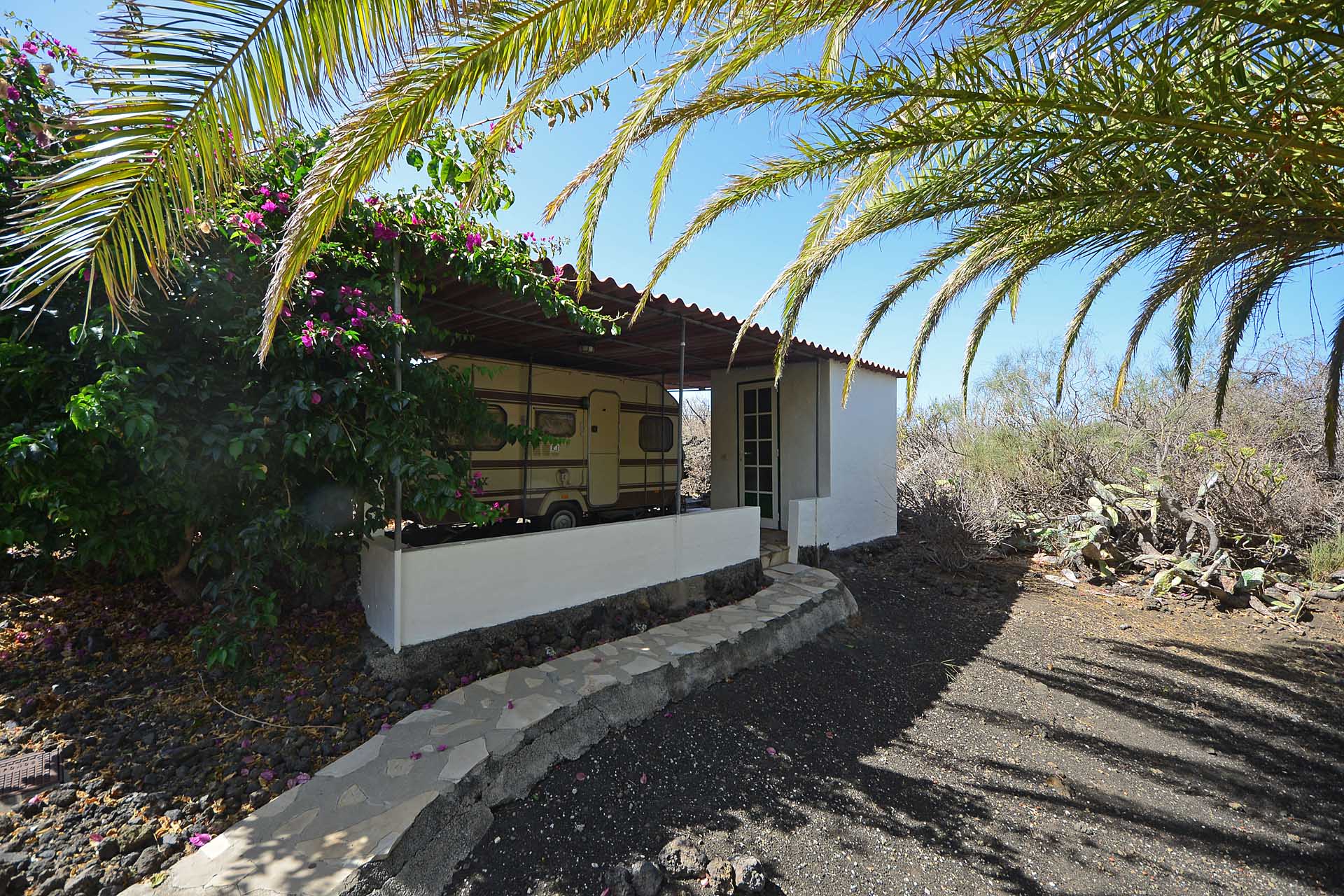 Für Gäste steht ein eingehauster Wohnwagen mit überdachter Terrasse und separatem Badzimmer zur Verfügung, in einem Carport finden zwei Autos ihr schattiges Plätzchen. Ein Technikraum und ein Lagerraum für Gartengeräte schießen an.