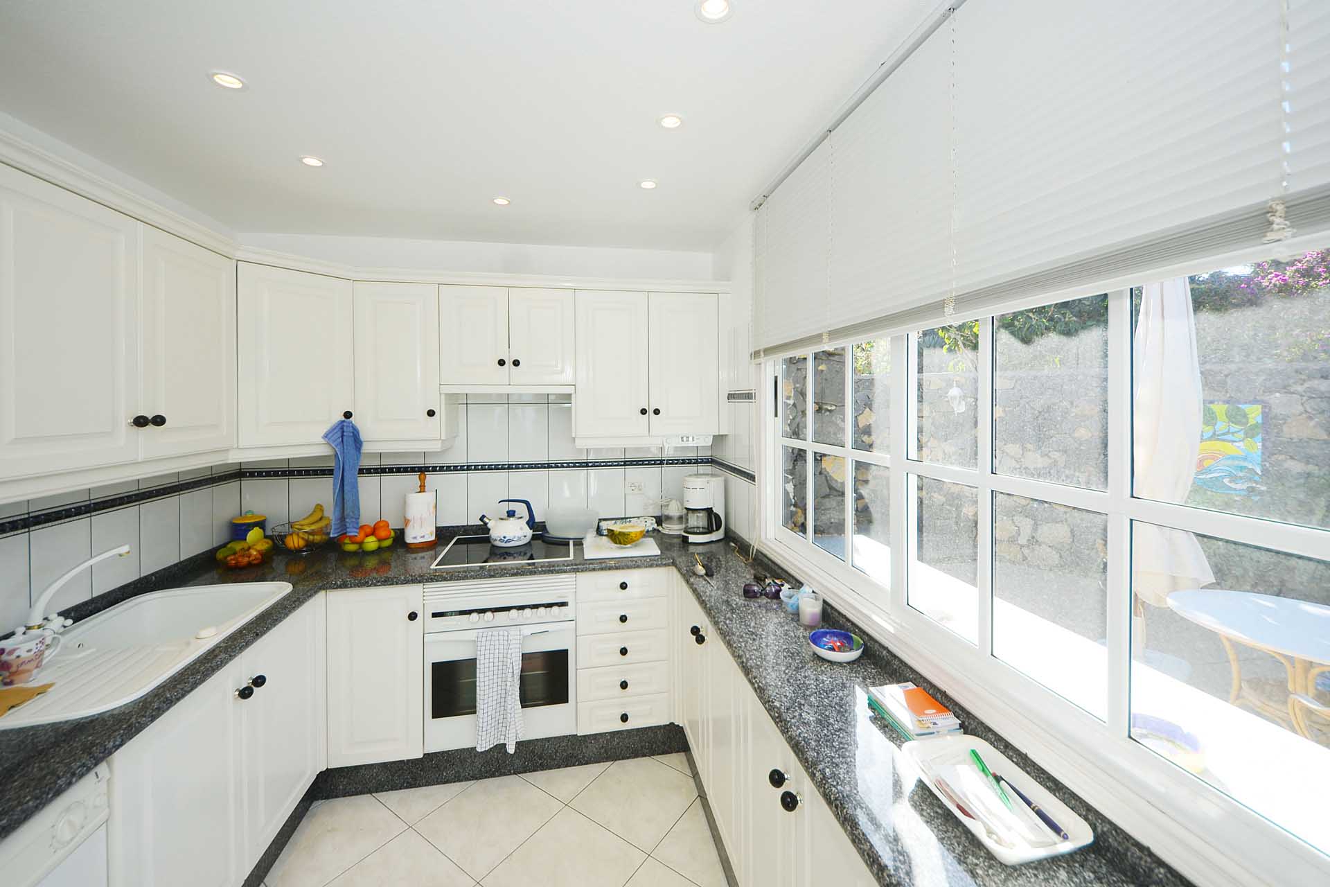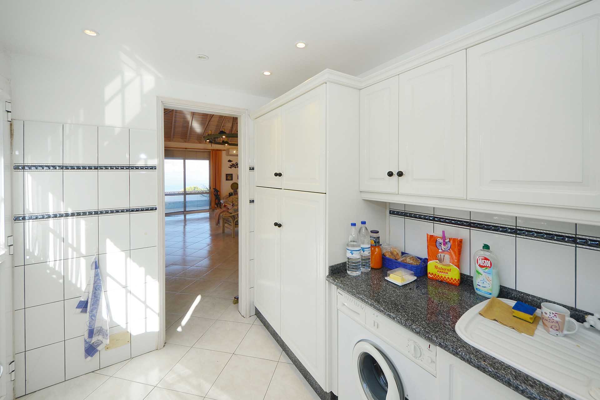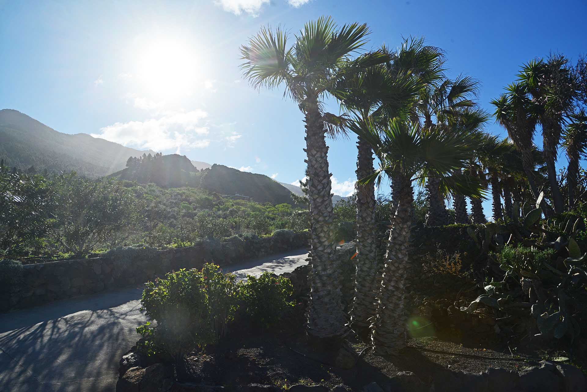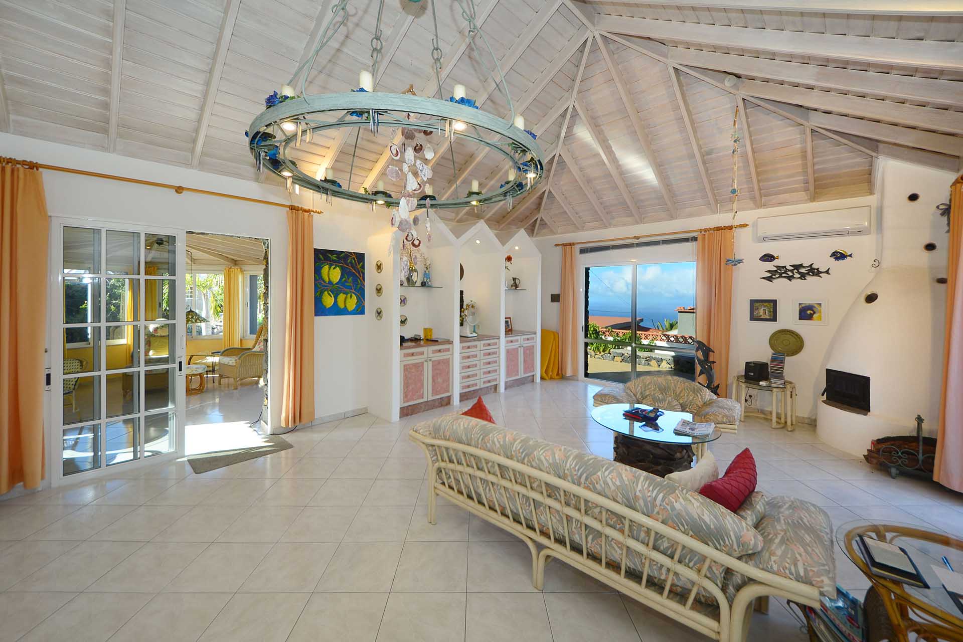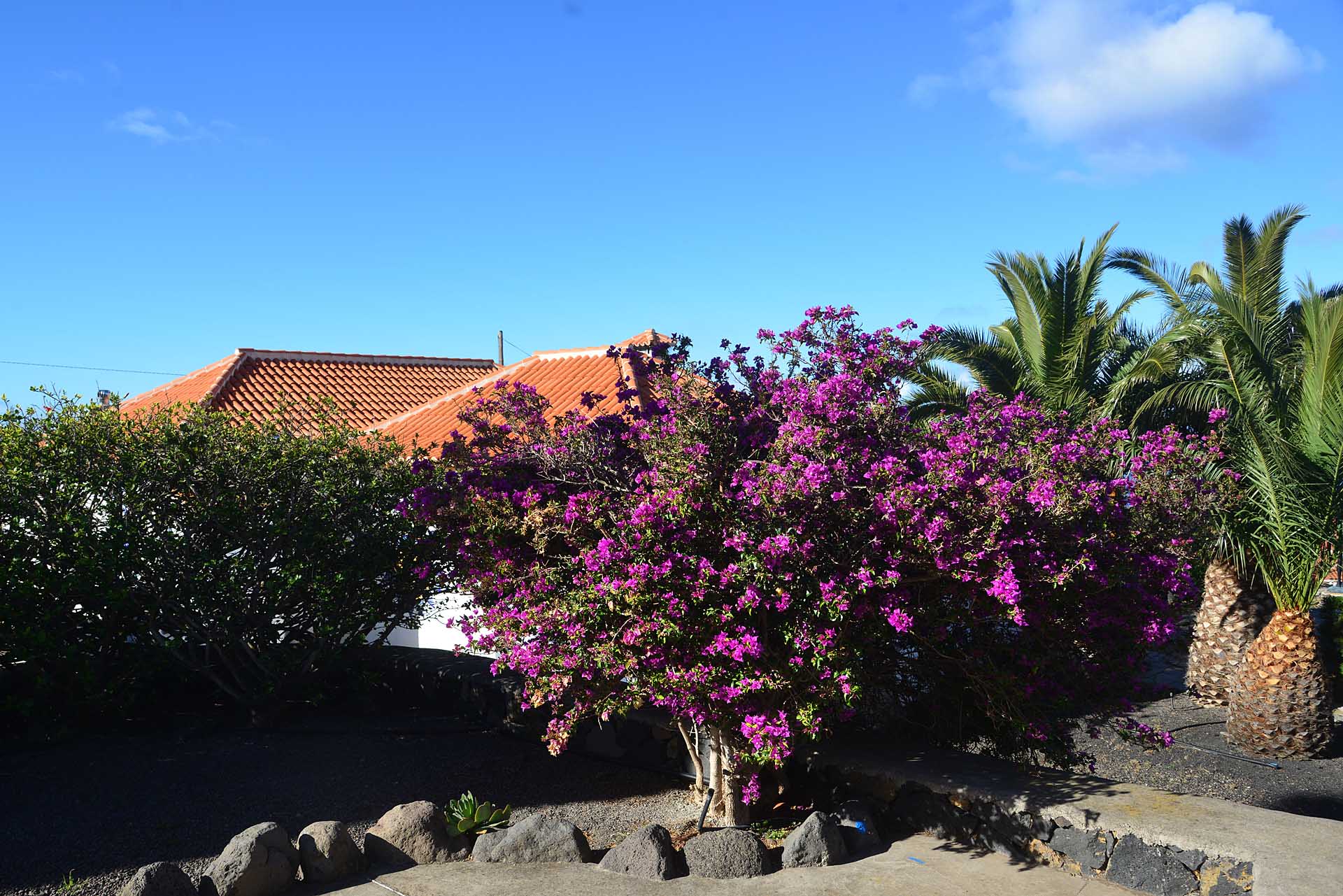 Sie betreten das Grundstück über eine imposante Palmenallee und erreichen zunächst das Haupthaus mit integrierter die Garage. Das barrierefrei gebaute Haupthaus (ca. 140 m² Grundfläche) besticht durch ein (für hiesige Verhältnisse) außerordentlich großes Wohnzimmer mit herrlichem Atlantikblick durch große, bodentiefe Fenster/Terrassentüren und einen geräumigen Alkoven, der familiären Gästen als weiteres Schlafzimmer dienen kann.