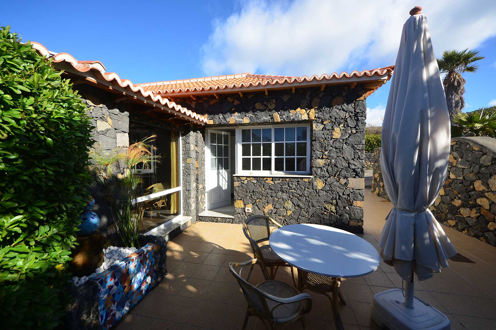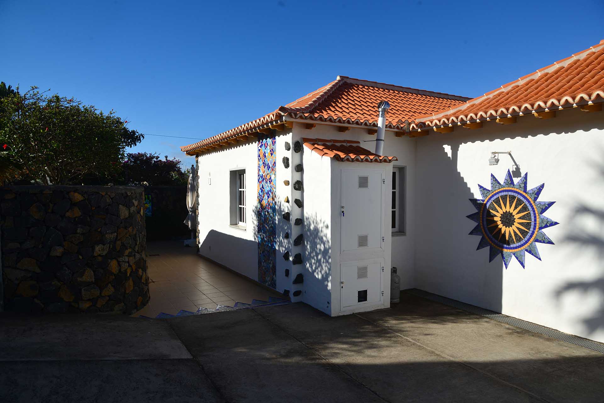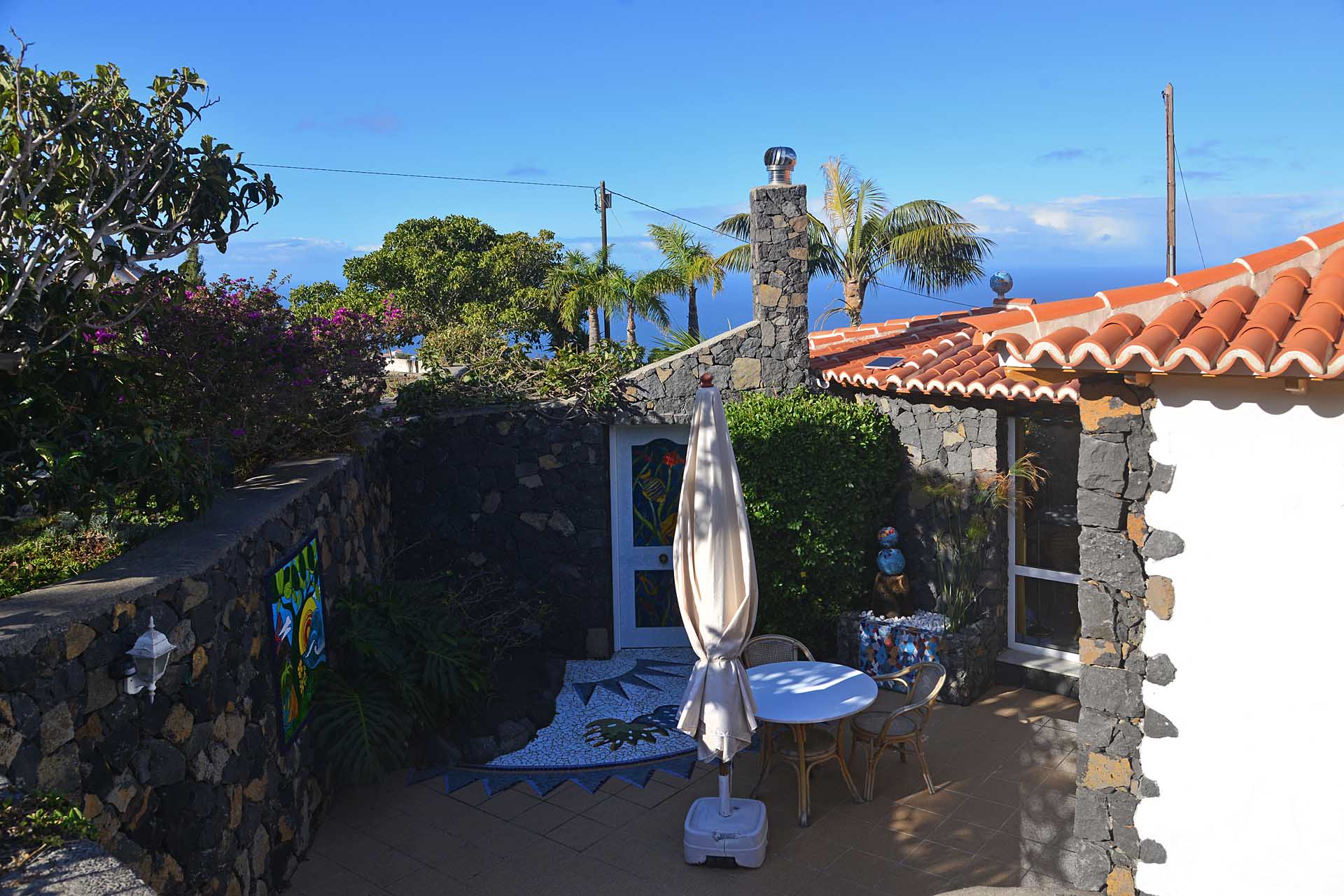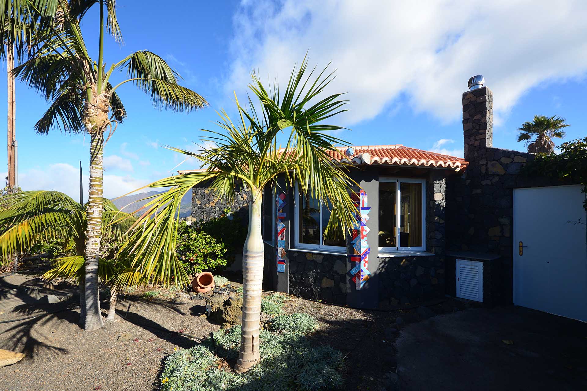 Die in jedem Detail sehr schön durchgestaltete Finca befindet sich Las Manchas / El Paraiso und erfreut sich eines herrlichen Meer- und Bergblickes. Sie wurde 1996 teilweise in klassischer, jedoch doppelwandiger Natursteinbauweise in sehr guter Qualität errichtet und später durch ein Atelier (ca. 37 m² Grundfläche) mit zwei Zimmern und Gäste-WC ergänzt.