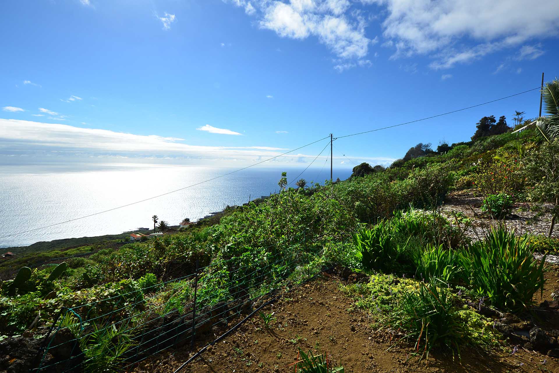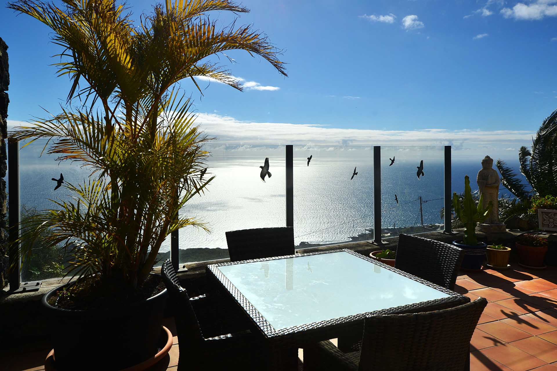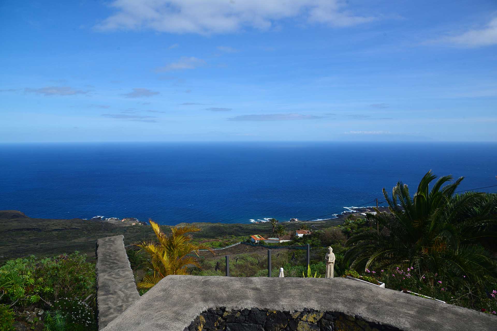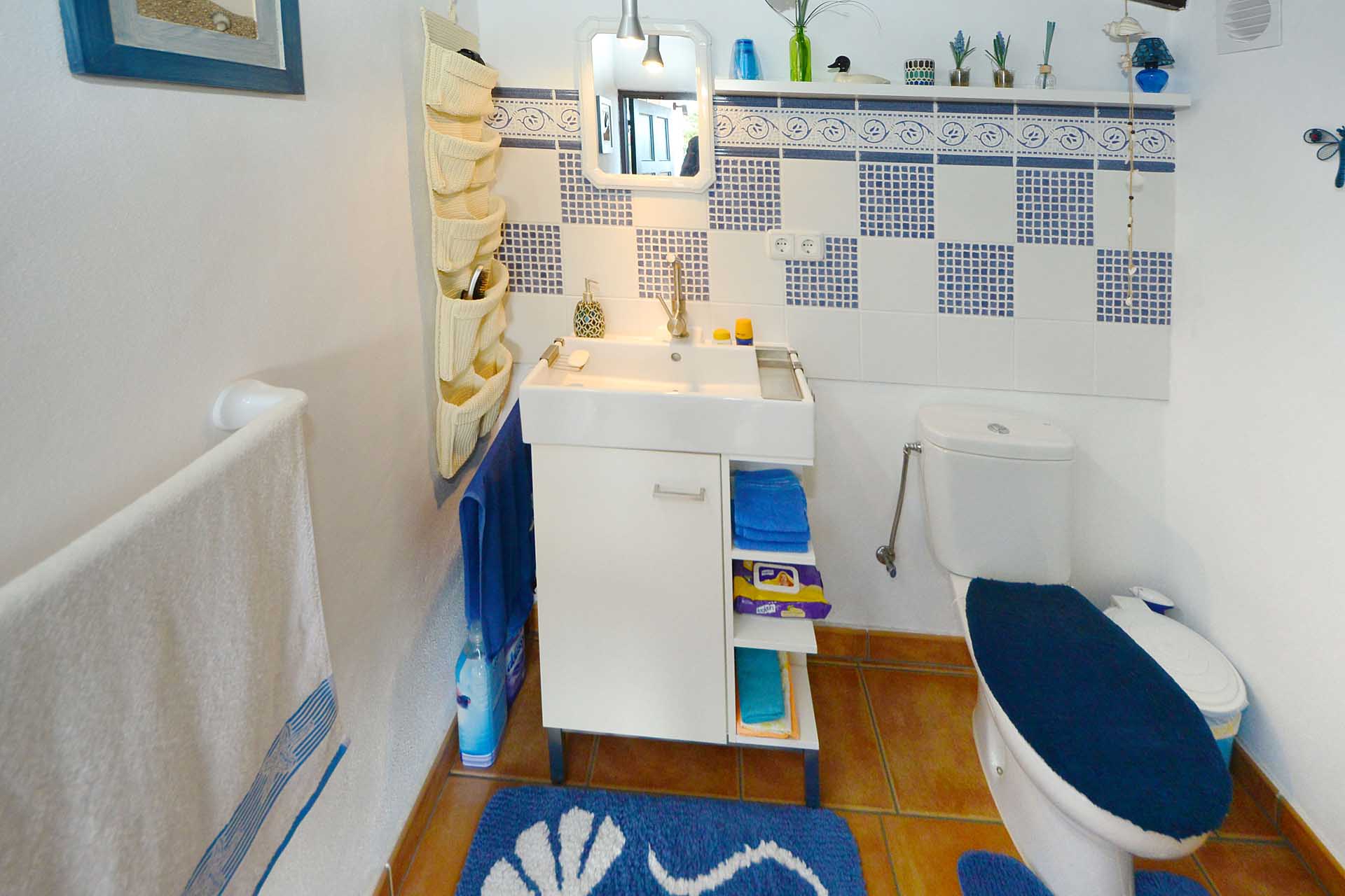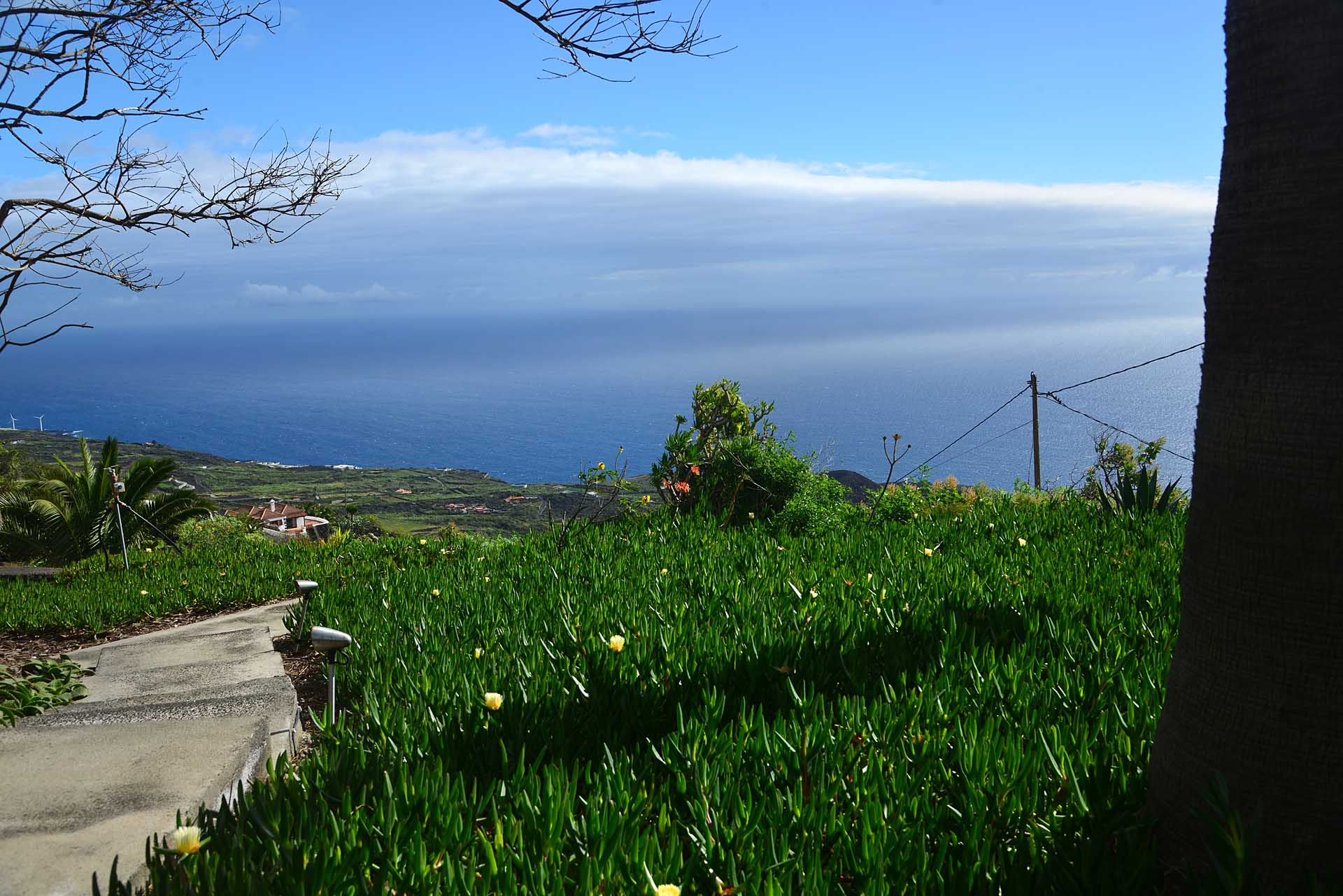 Auf gleicher Ebene wurde ein kleines Gästehaus errichtet, dessen gemütliches Schlafzimmer mit einem Licht- und Sonnendurchlässigen Dachstuhl versehen wurde. Ein Gäste-WC, das auch die Waschmaschine aufnimmt wurde über eine neu überdachte Terrasse angebunden. Davor befindet sich eine sehr große, nicht einsehbare Sonnenterrasse mit herrlichem Blick auf den Atlantik und die drei Nachbarinseln Tenerife, La Gomera und El Hierro.