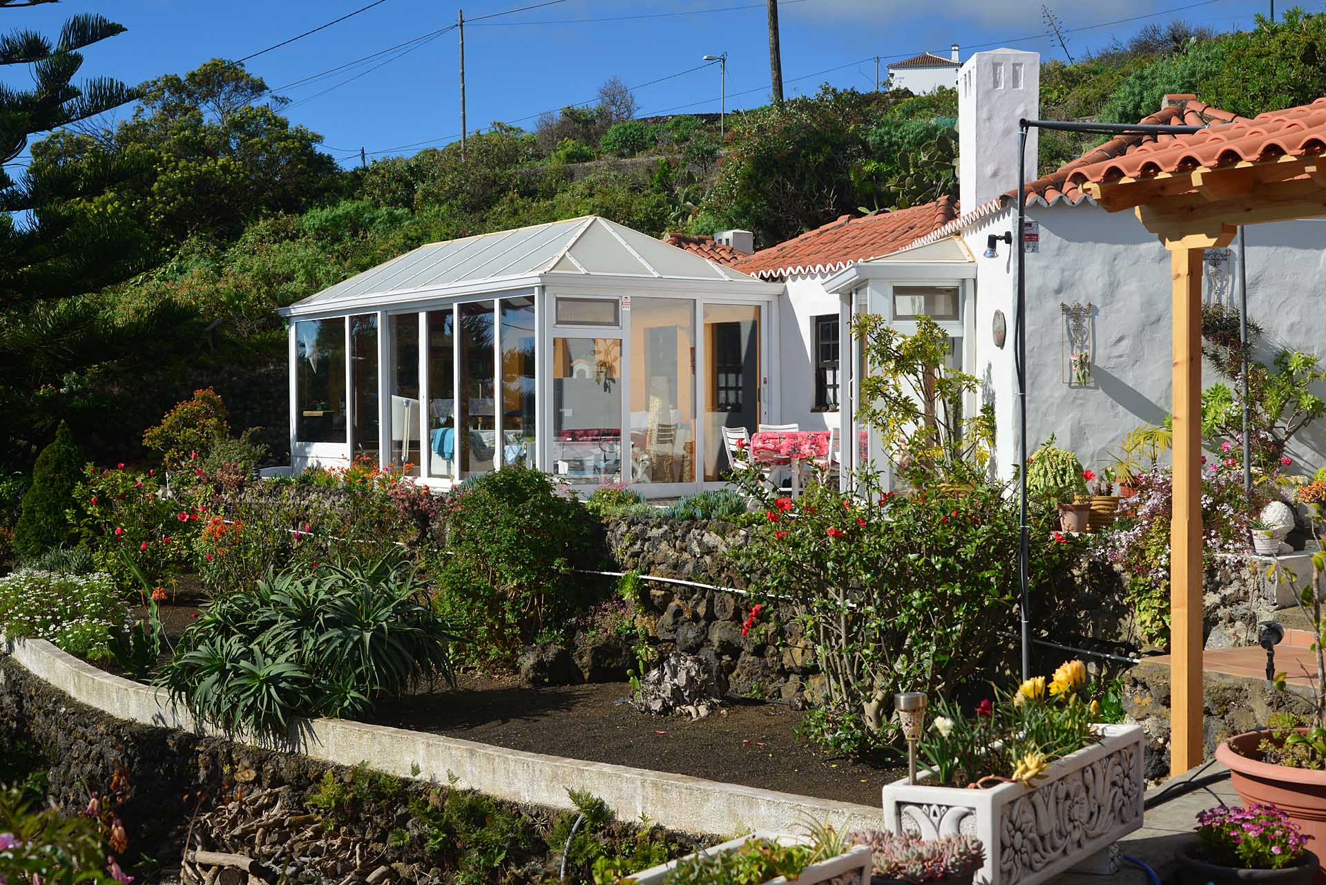 Die altkanarische Finca wurde 2012 authentisch saniert und um einen großen Wintergarten, ein separates Gästehaus, eine Garage und ein Gartenhäuschen erweitert.