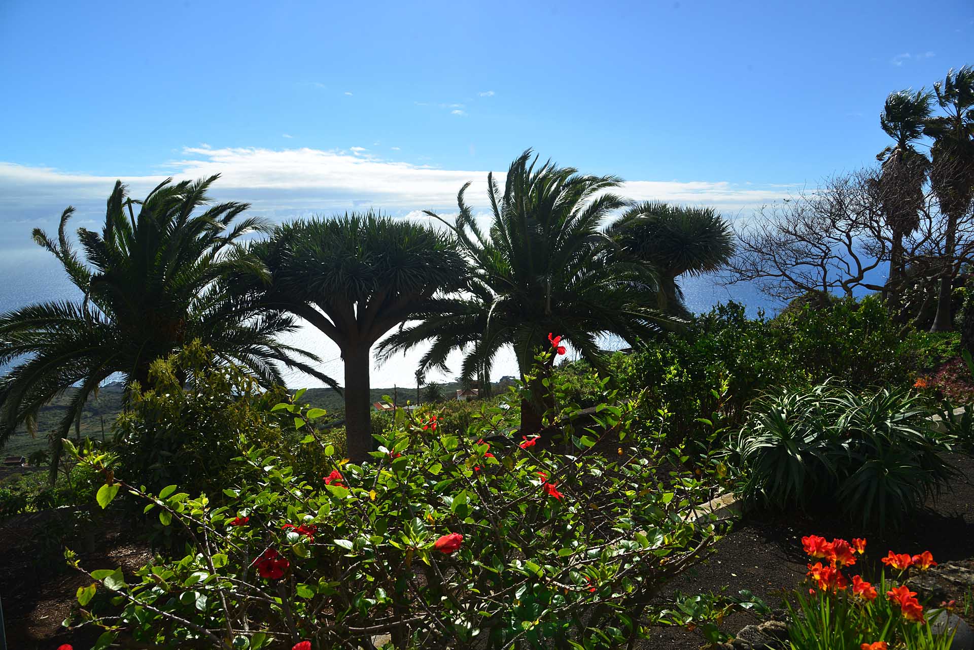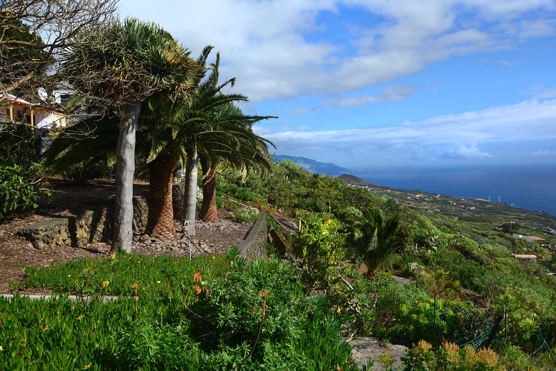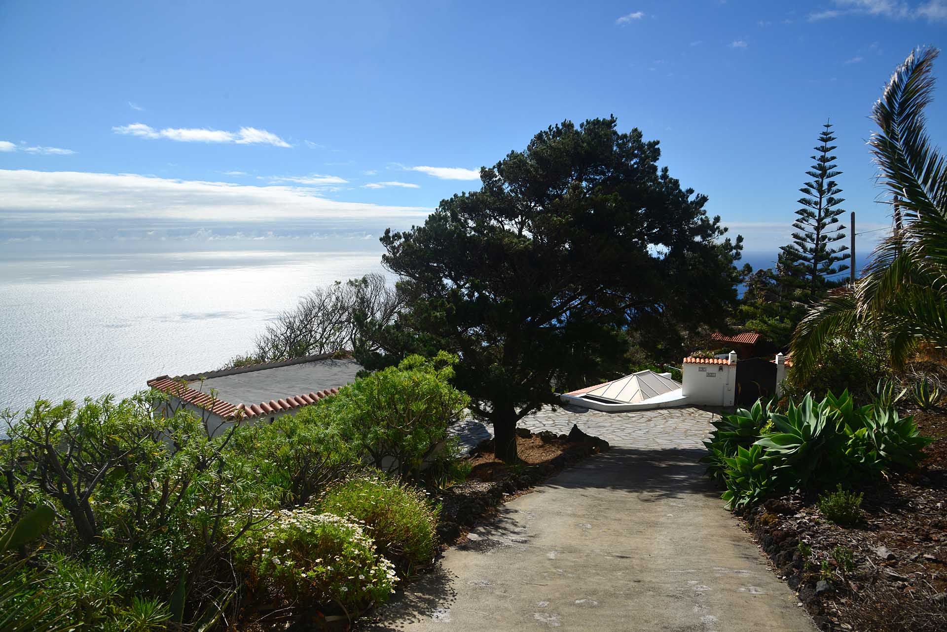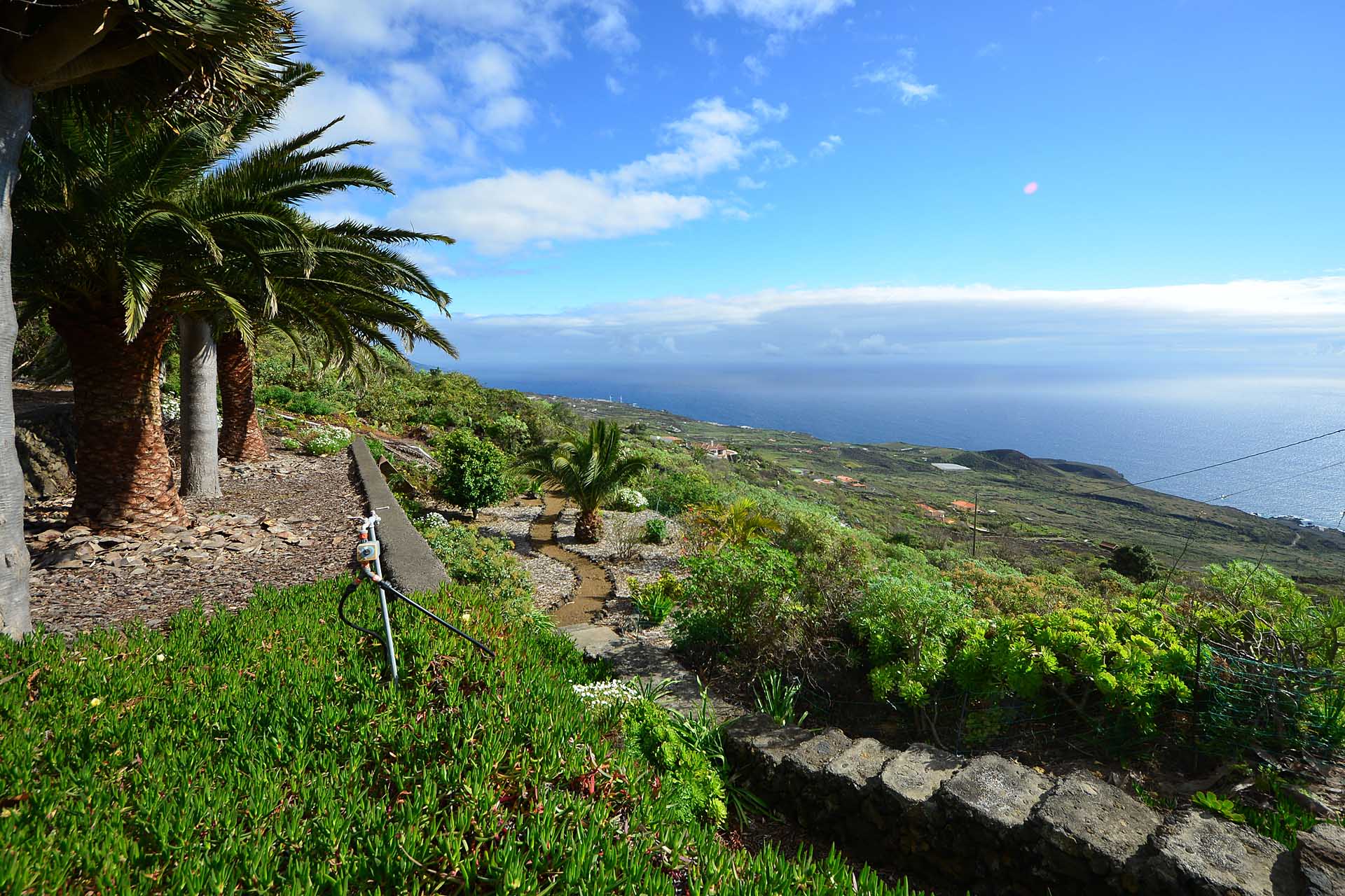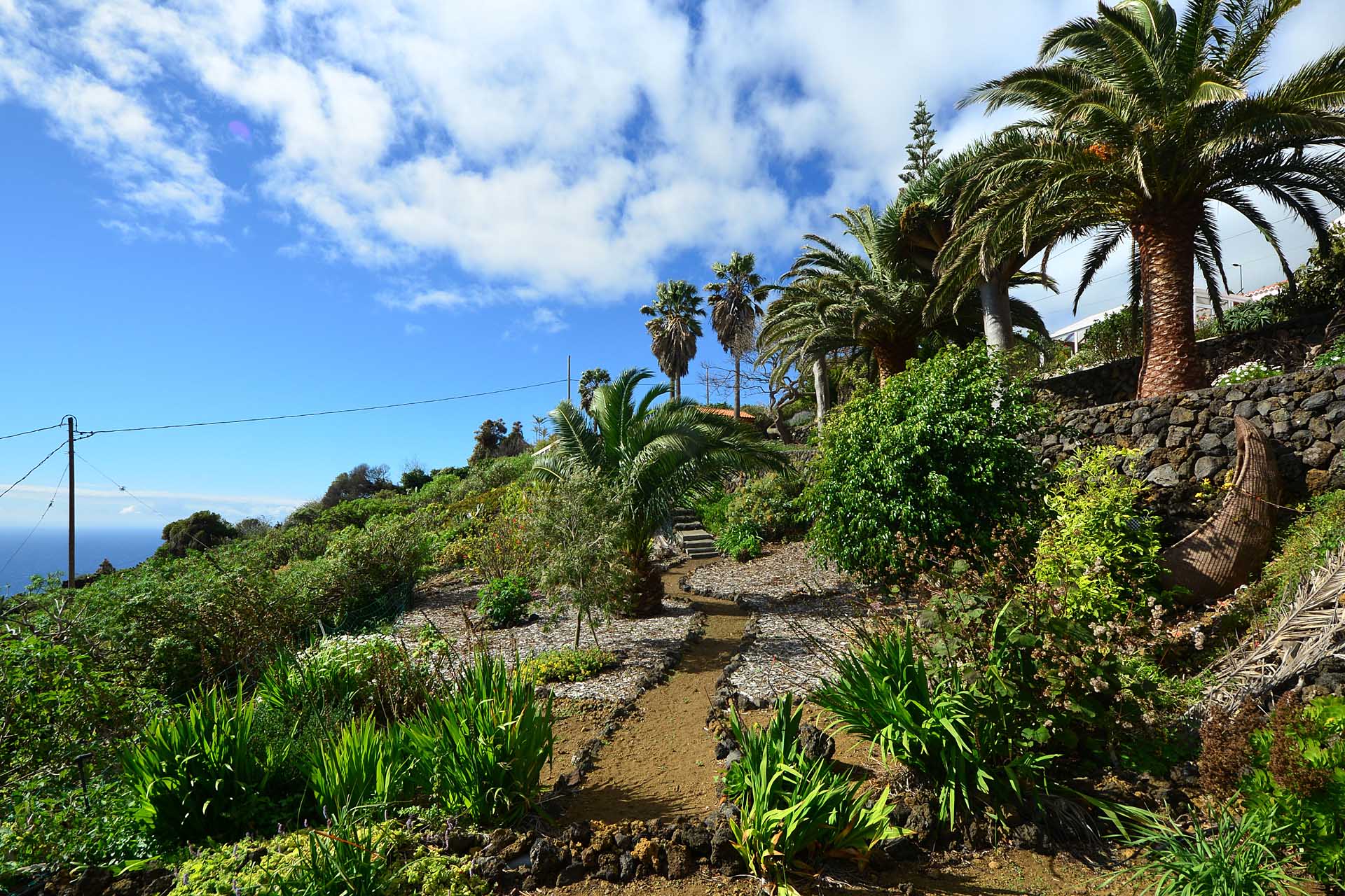 Der große Garten wurde pflegeleicht angelegt und mit großen Palmen und anderen Zierbäumen bepflanzt. Die Gartenwege wurden gut begehbar befestigt und mit weiteren Terrassen versehen.