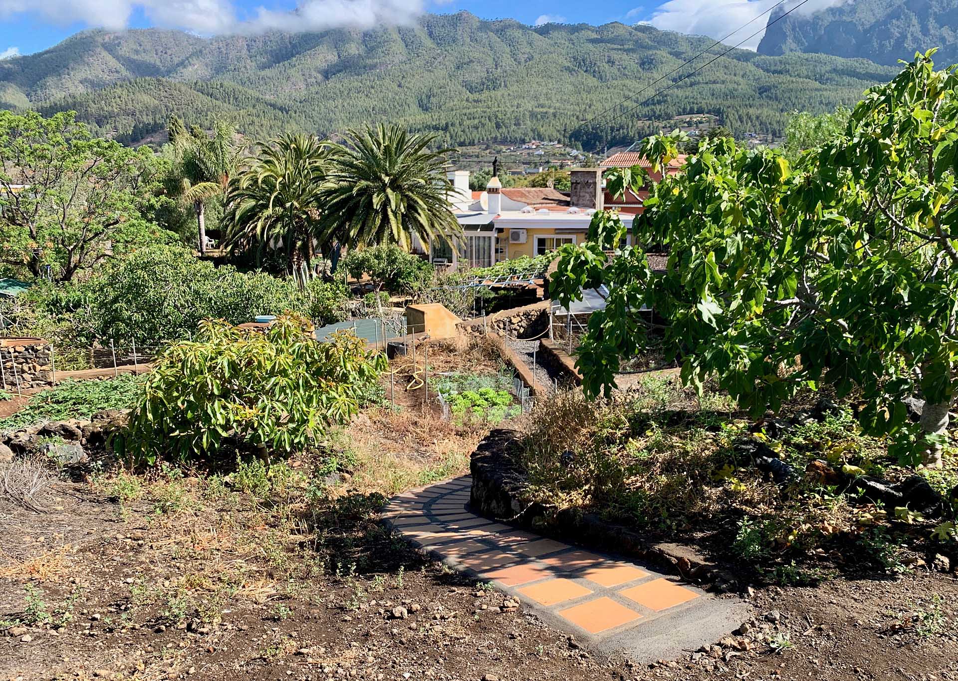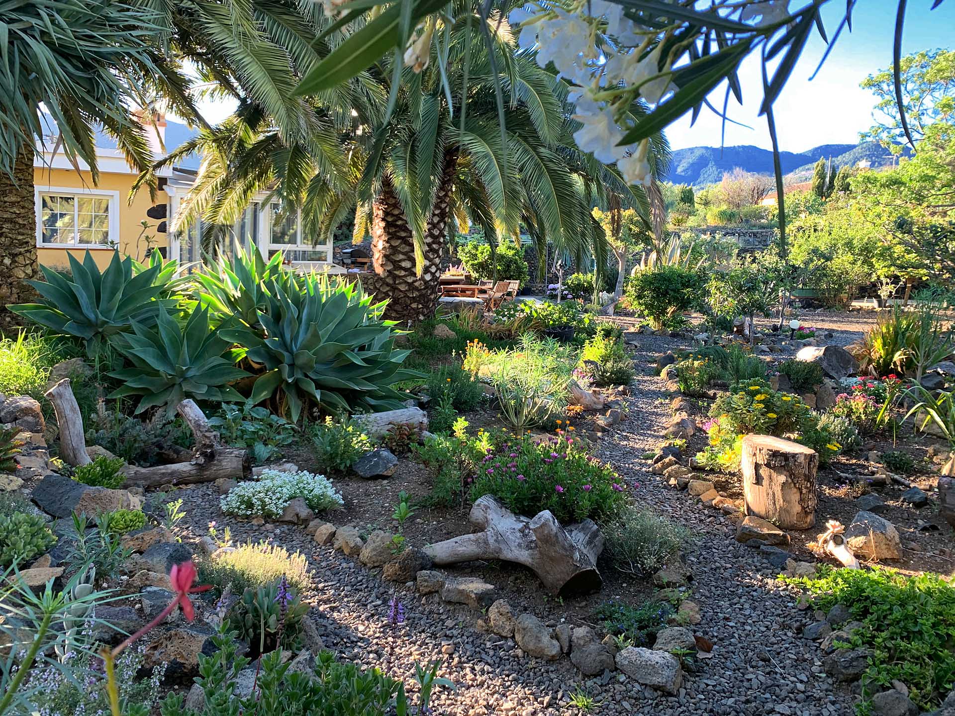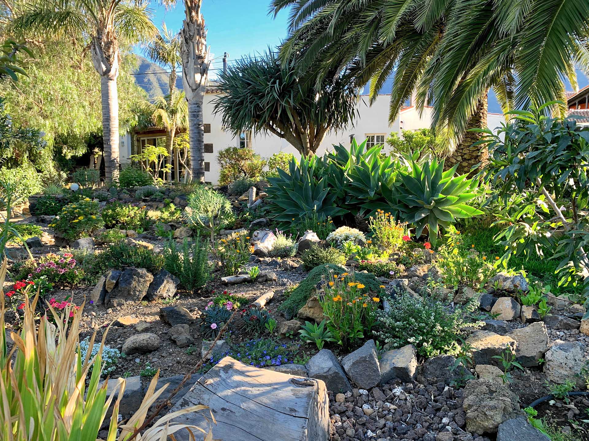 Blick über den Garten zum "liegenden Guanchen"