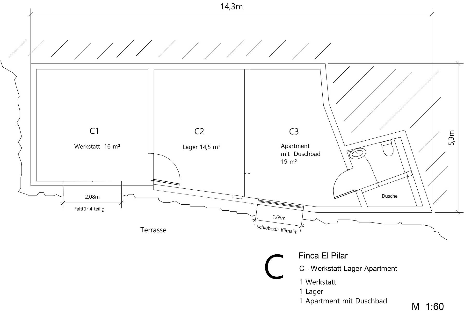 Grundriss Nebengebäude mit Studio, Werkstatt und Lagerraum