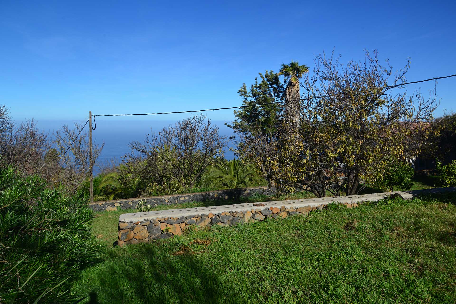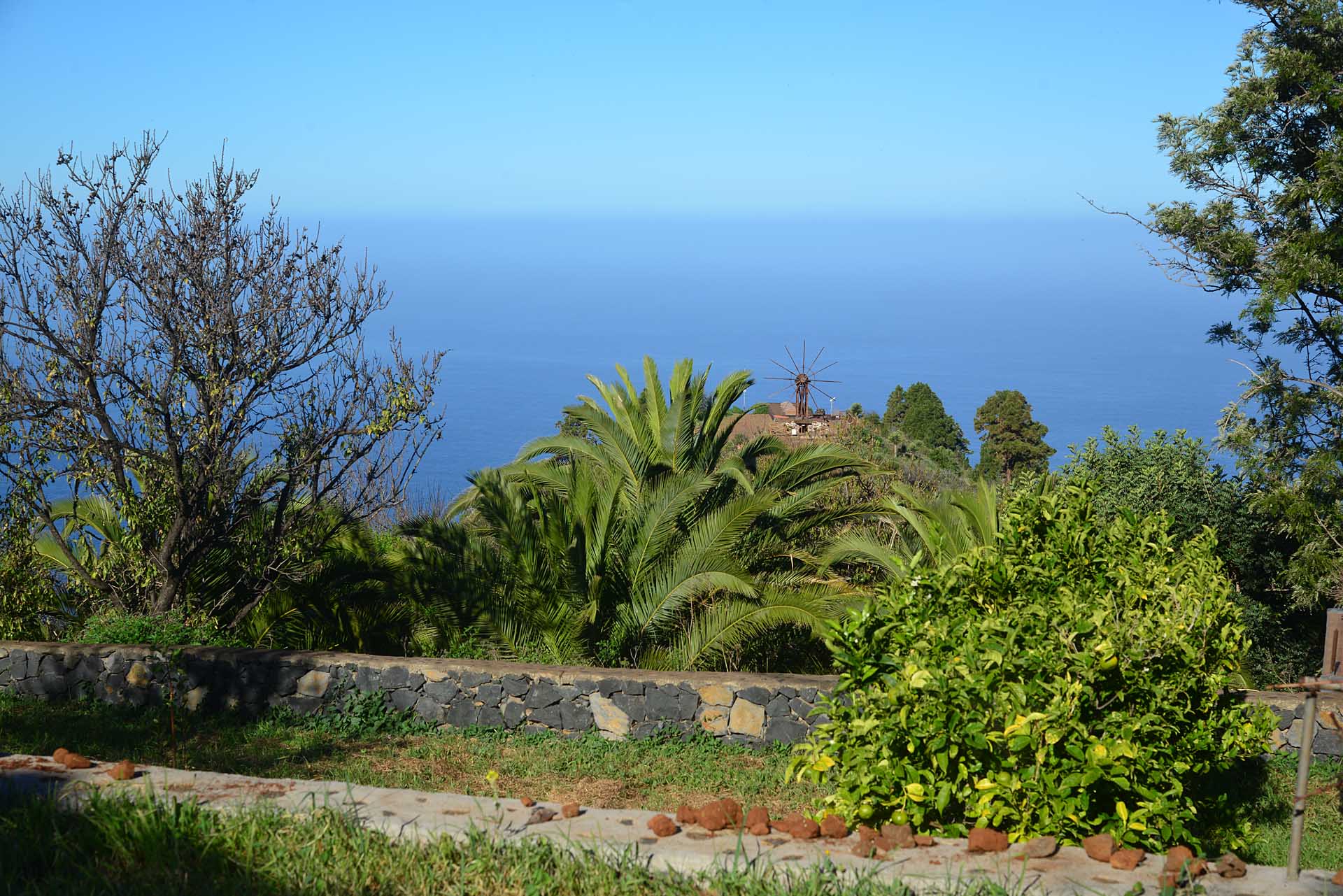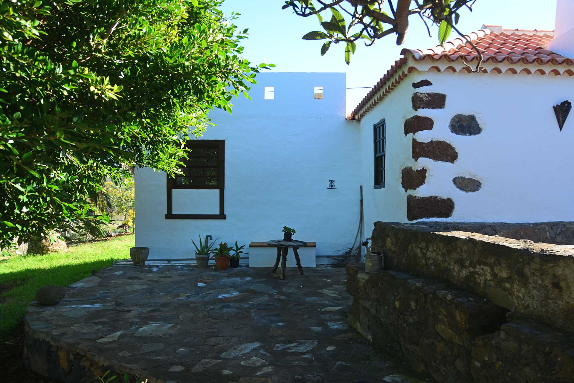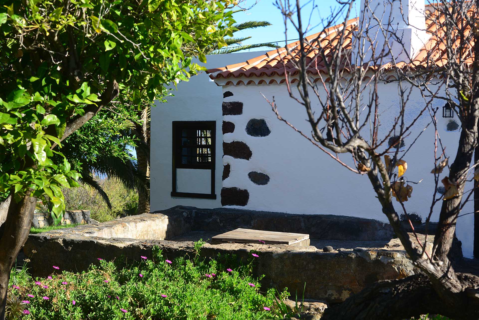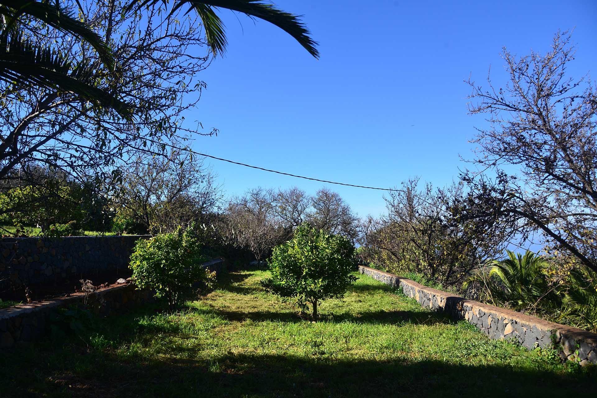 Der Garten ist in zwei Terrassen angelegt, sämtliche Natursteinmauern wurden vor ca. 20 Jahren neu gebaut. Er ist mit einem großen Palmenbestand und einigen Fruchtbäumen bepflanzt und bietet einen sehr schönen Ausblick auf den Atlantik und die historische Gofiomühle, die heute das Mühlenmuseum beherbergt.