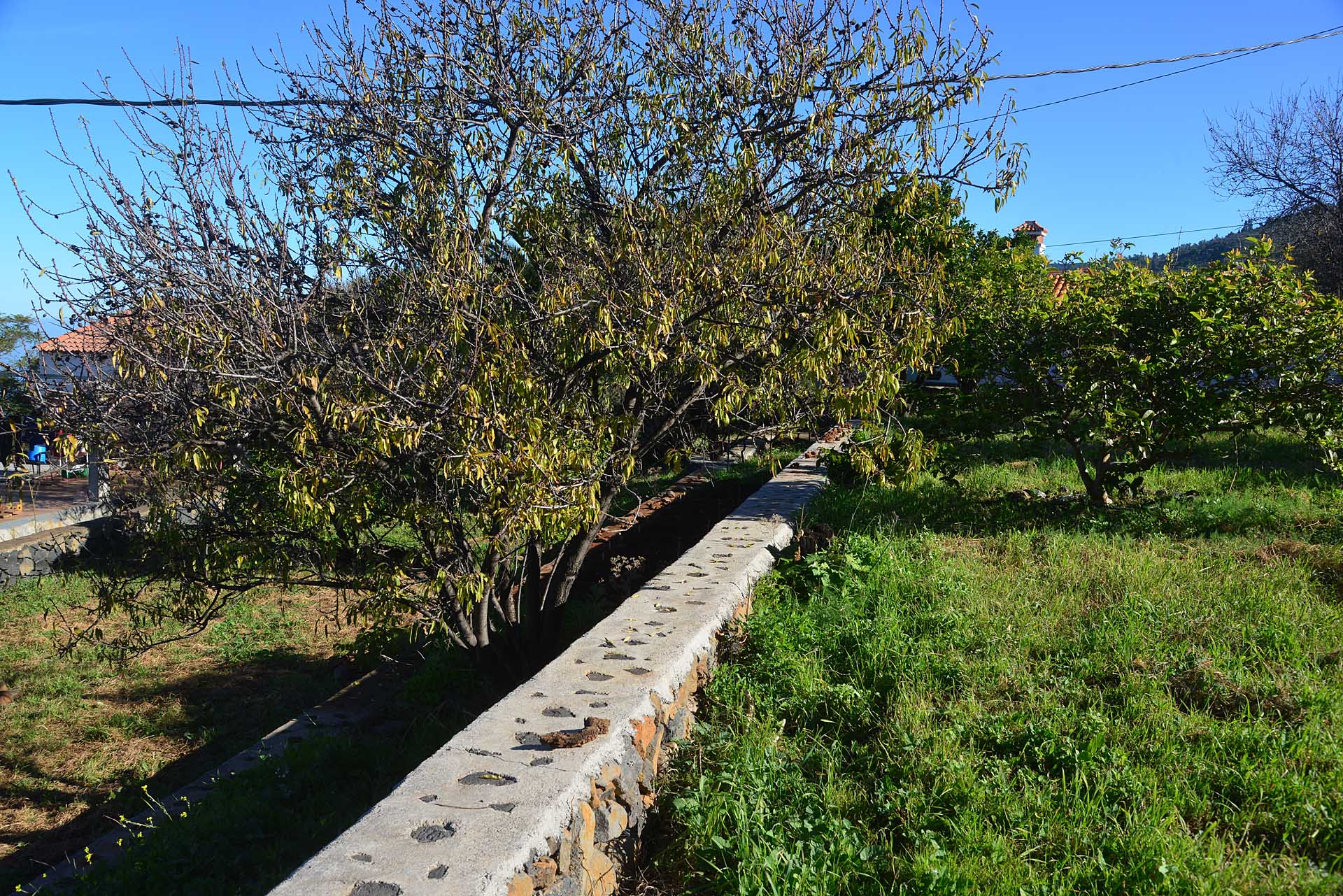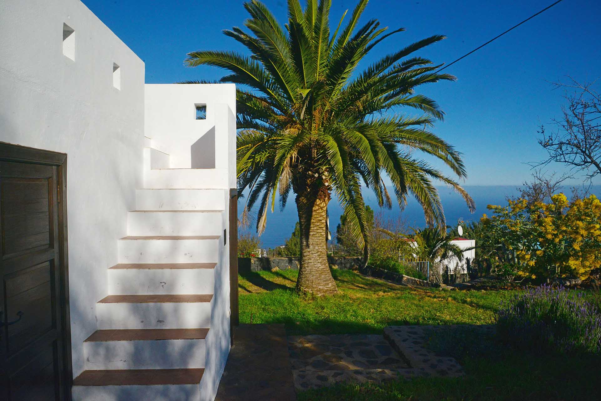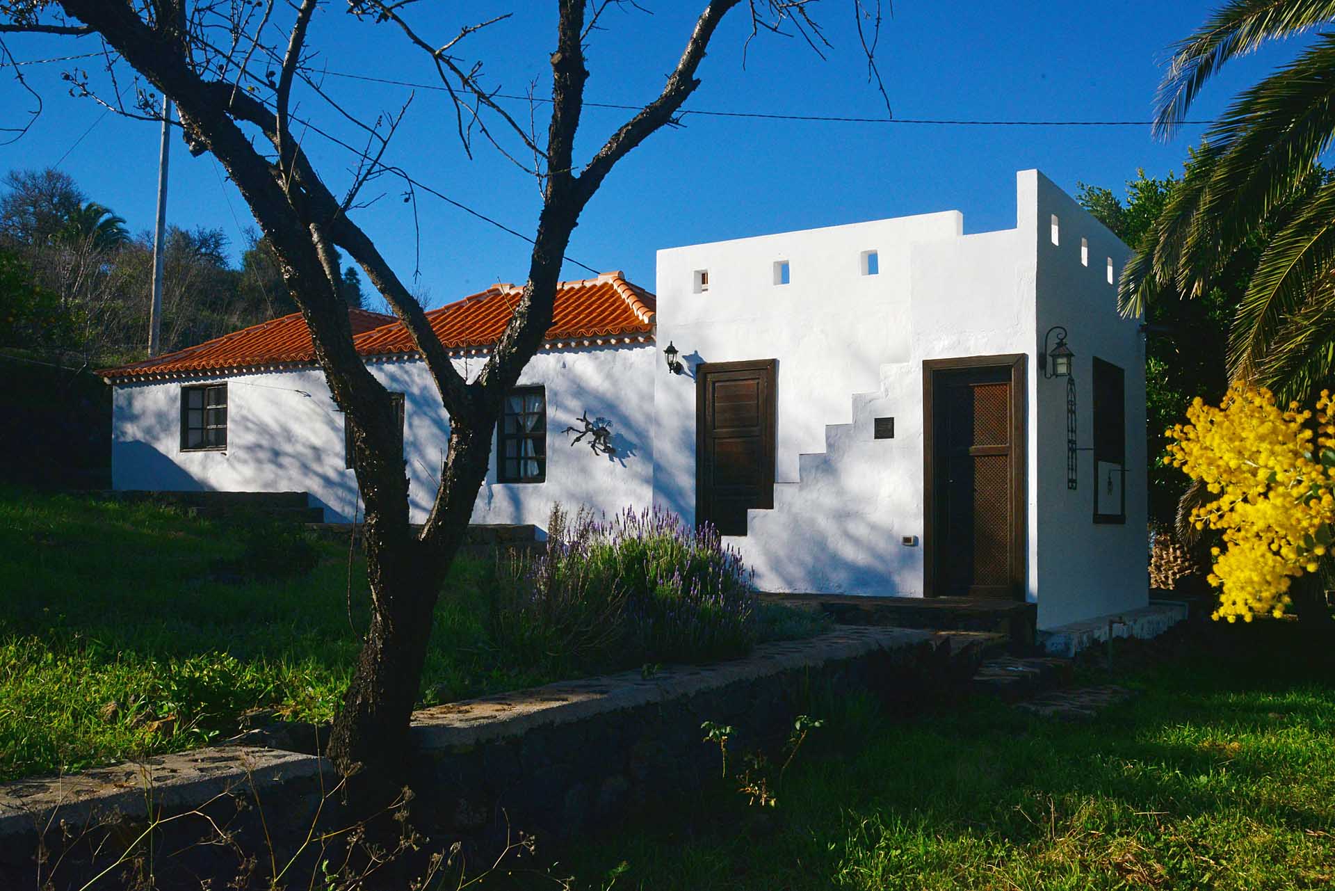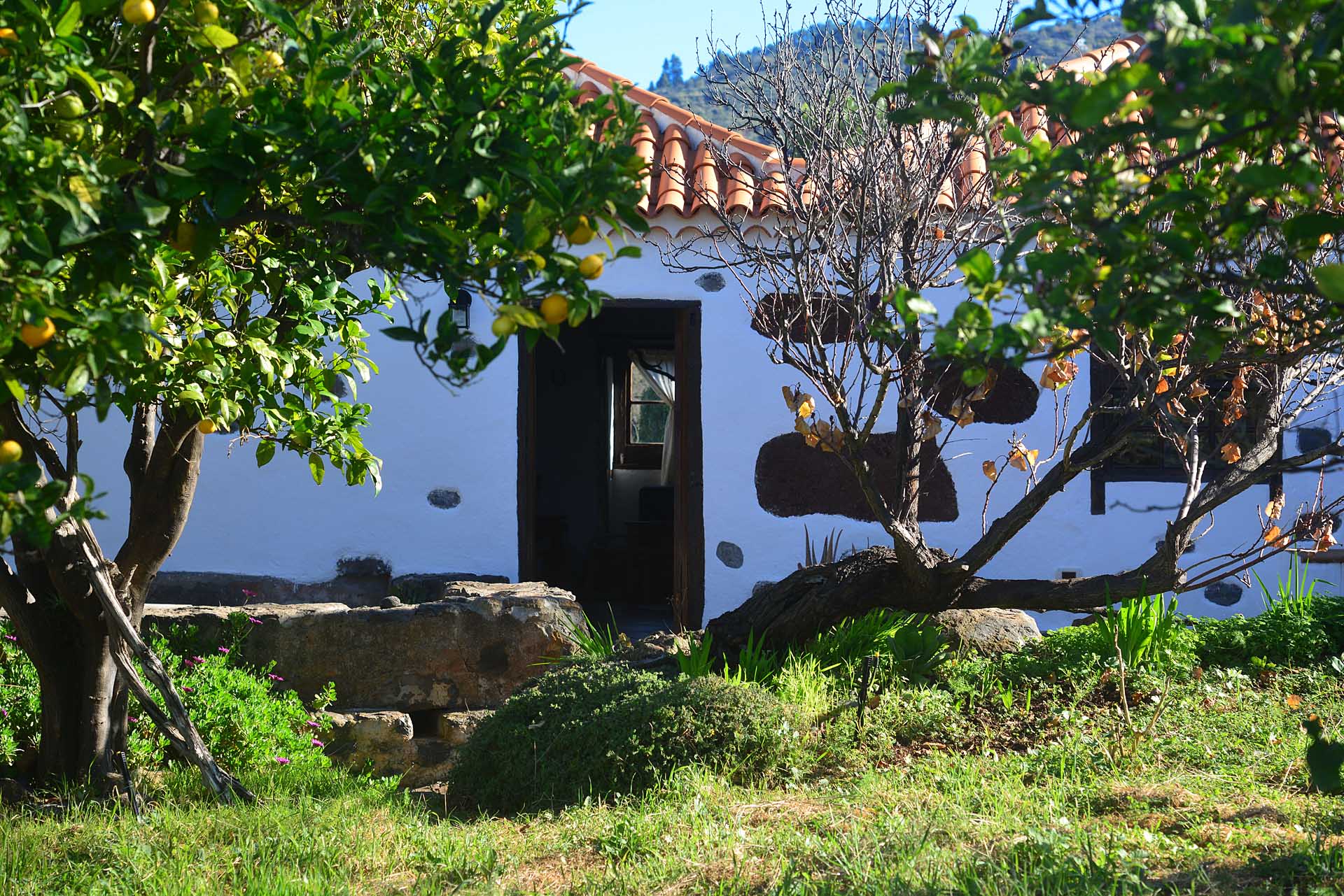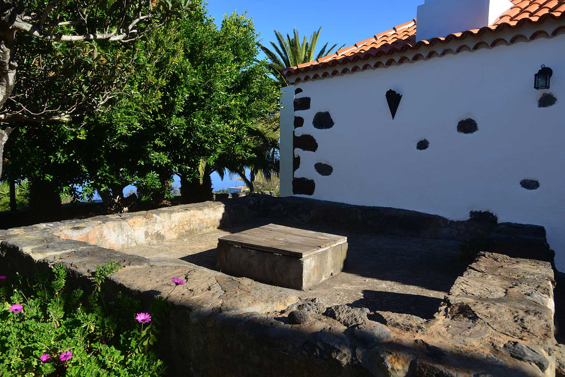 Der Garten ist in zwei Terrassen angelegt, sämtliche Natursteinmauern wurden vor ca. 20 Jahren neu gebaut. Er ist mit einem großen Palmenbestand und einigen Fruchtbäumen bepflanzt und bietet einen sehr schönen Ausblick auf den Atlantik und die historische Gofiomühle, die heute das Mühlenmuseum beherbergt.
