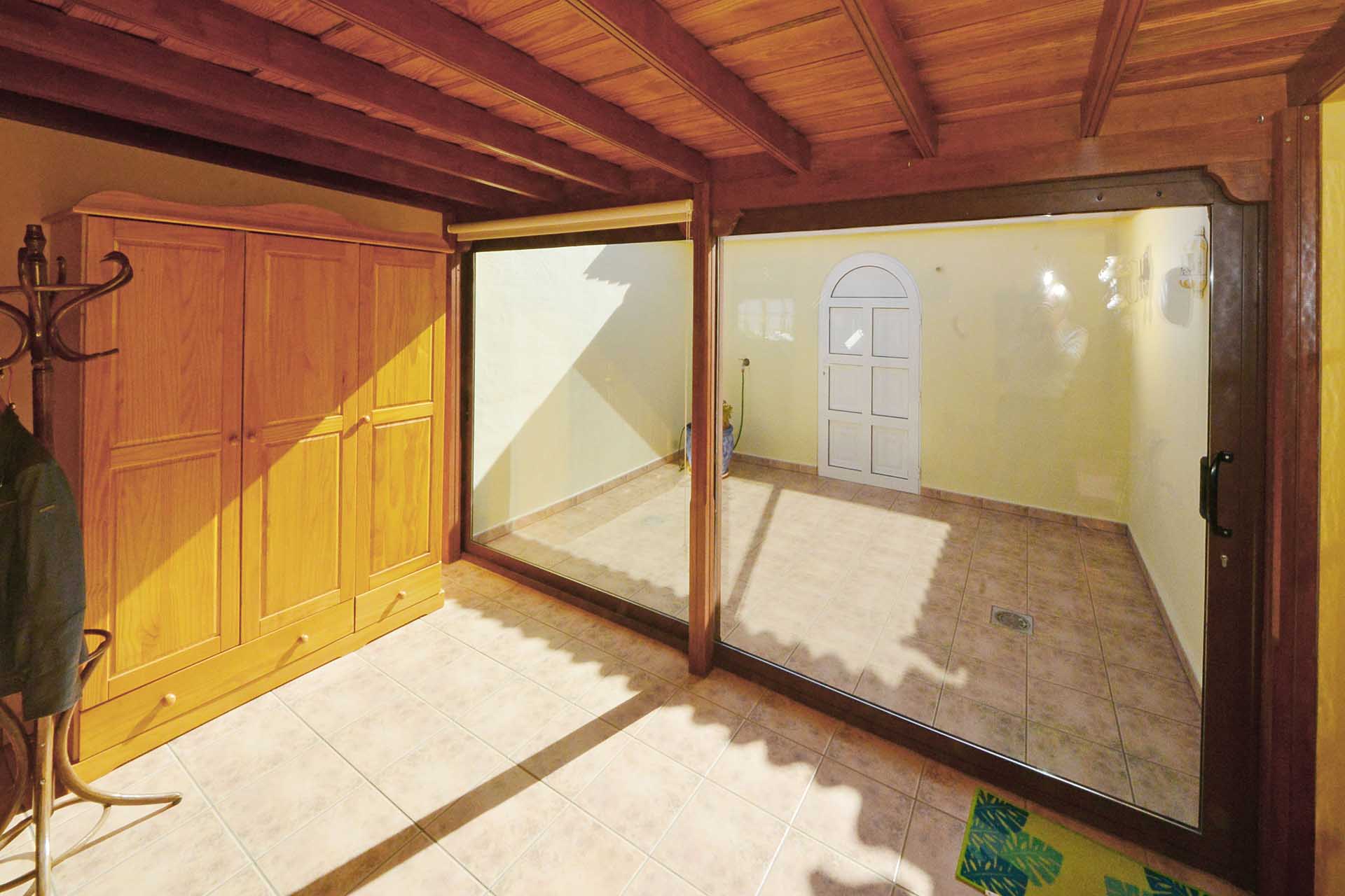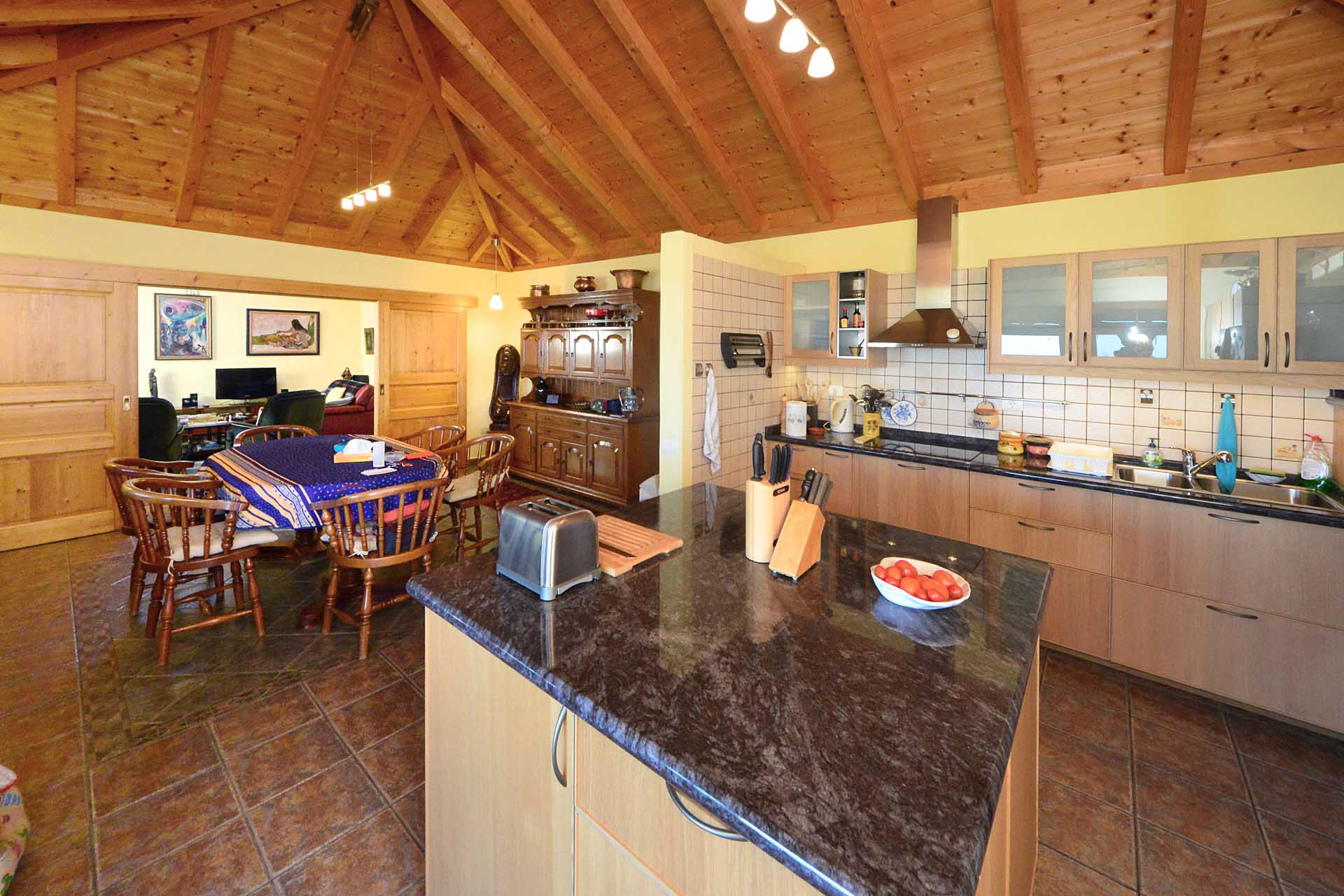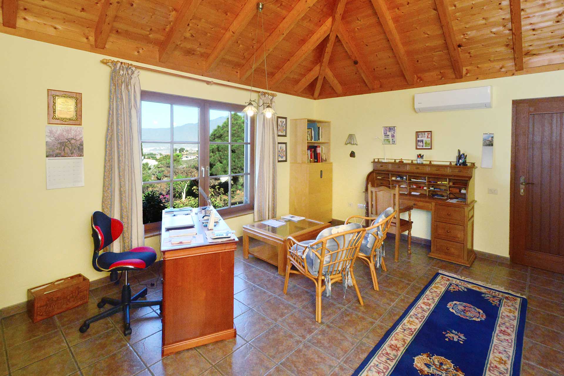 Das Haus wurde in sehr guter Qualität gebaut und befindet sich in perfektem Zustand. Es ist mit aus Deutschland importierten, doppelverglasten Holzfenstern ausgestattet, die sehr hohen, typisch palmerischen Sichtholzdachstühle sorgen für angenehme Kühle im Hochsommer und kanarische Gemütlichkeit. Für die wenigen kühlen oder heißen Tage in dieser Region wurde mit Wärmepumpen-Klimaanlagen im Esszimmer, dem Arbeitszimmer und einem Schlafzimmer vorgesorgt.