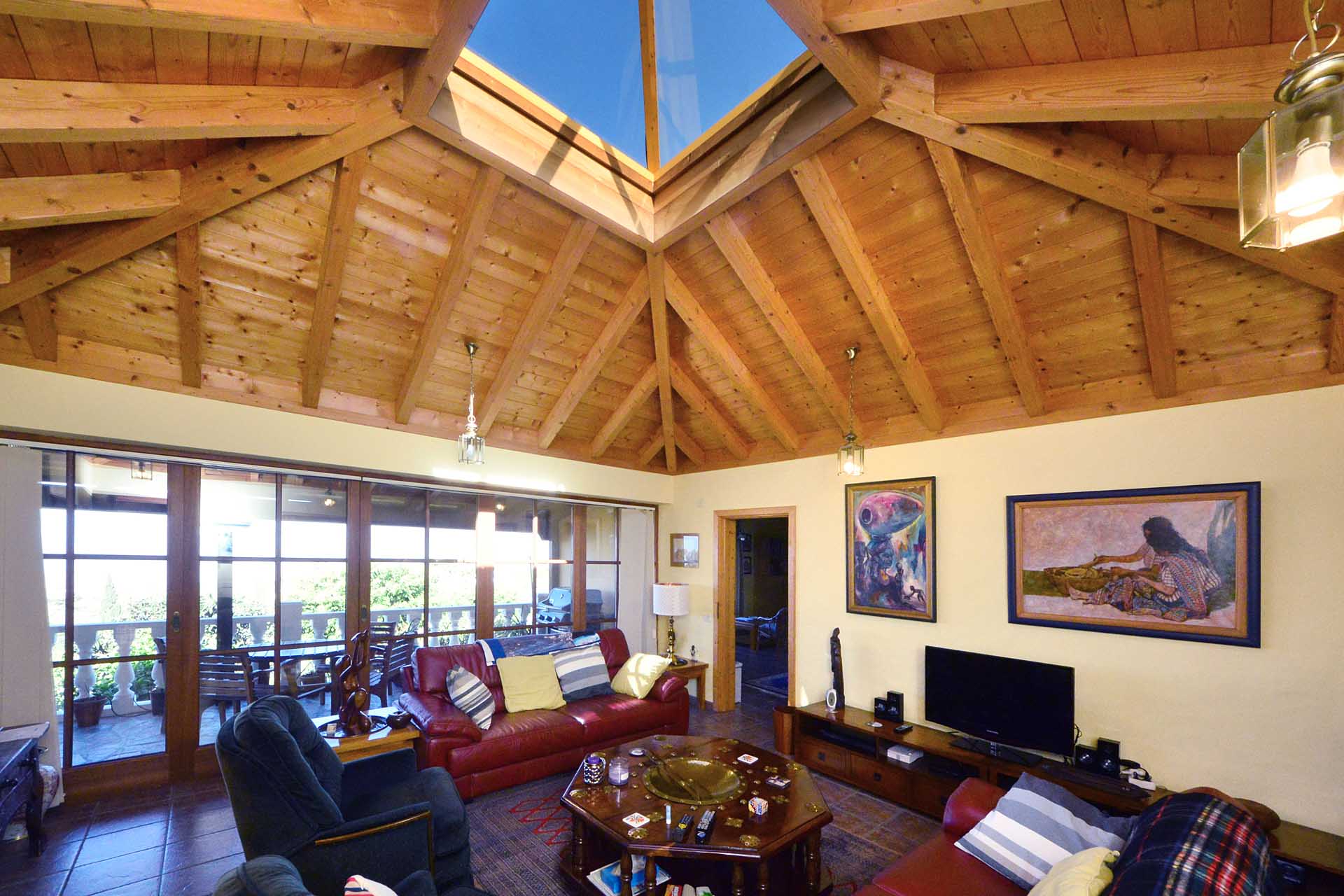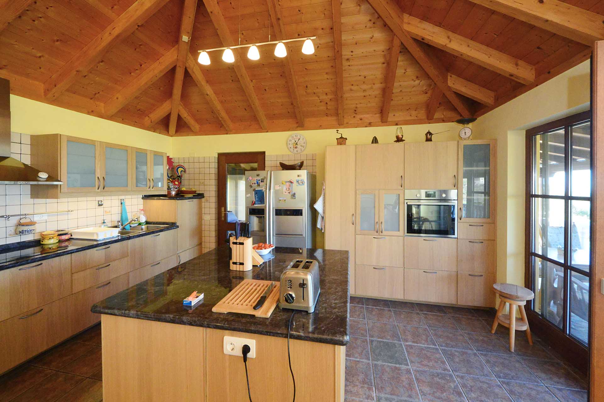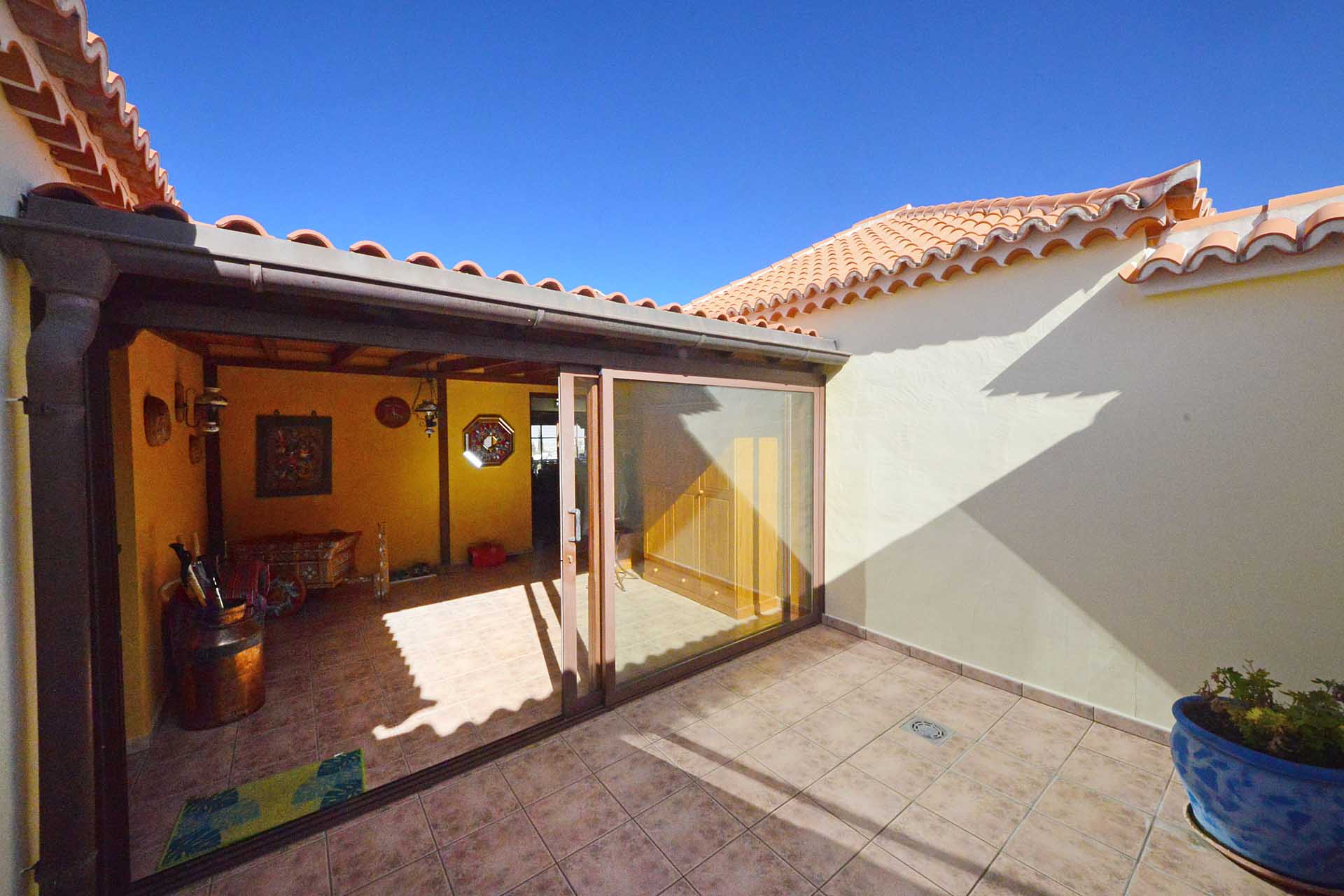 Das Haus wurde in sehr guter Qualität gebaut und befindet sich in perfektem Zustand. Es ist mit aus Deutschland importierten, doppelverglasten Holzfenstern ausgestattet, die sehr hohen, typisch palmerischen Sichtholzdachstühle sorgen für angenehme Kühle im Hochsommer und kanarische Gemütlichkeit. Für die wenigen kühlen oder heißen Tage in dieser Region wurde mit Wärmepumpen-Klimaanlagen im Esszimmer, dem Arbeitszimmer und einem Schlafzimmer vorgesorgt.