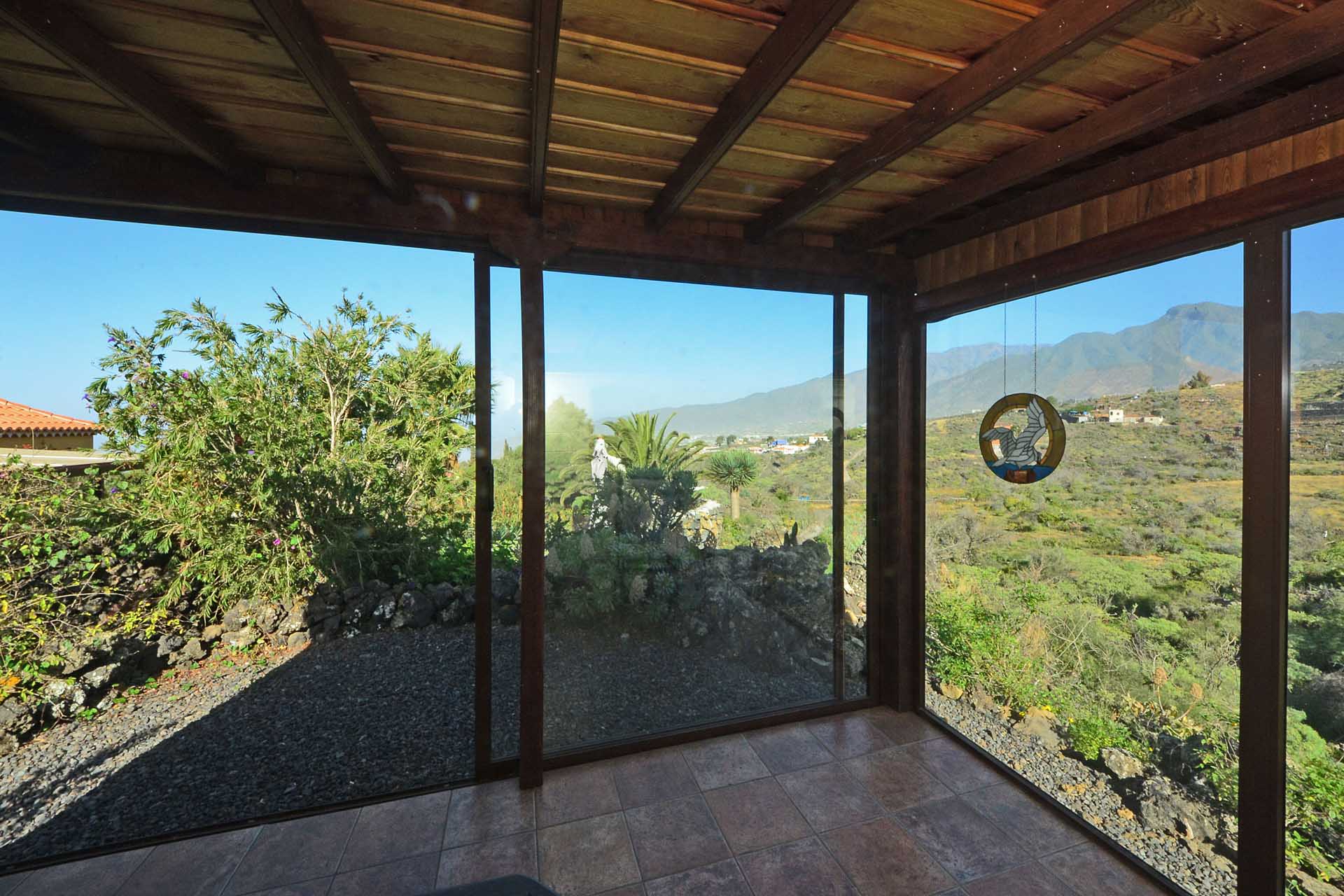 Ein separates, zweiseitig bodentief verglastes Gebäude bietet einen schönen Platz zum Lesen und Genießen des Ausblicks auf den Atlantik und die Berge der Cumbre.