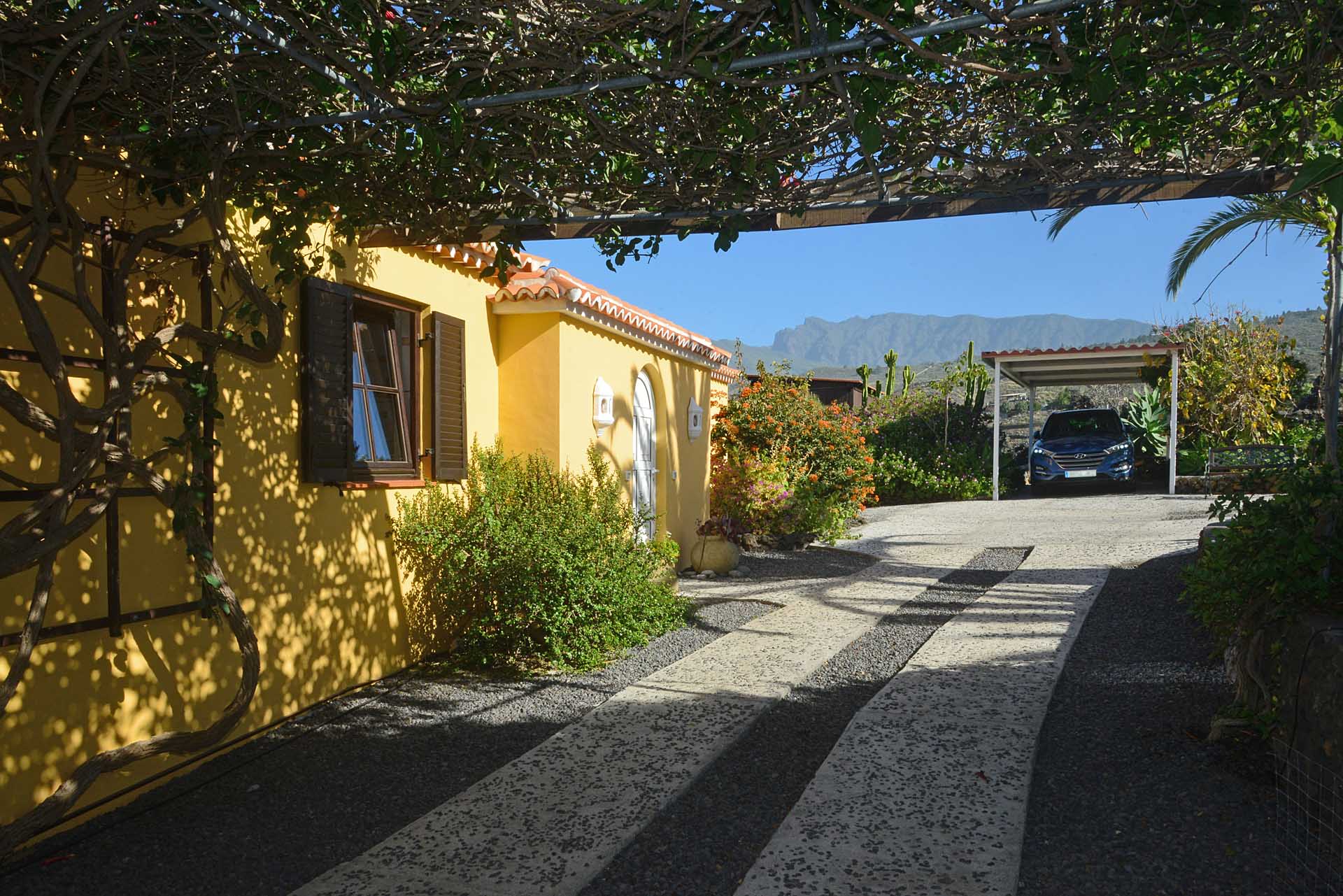 Auch an Fahrzeuge wurde Gedacht: Es stehen zwei Carports mit festem Dach, ein beschatteter Parkplatz am Eingangsbereich, sowie eine kleine Garage, die derzeit allerdings für Wassertanks und als Geräteraum für Gartengeräte genutzt wird, zur Verfügung.