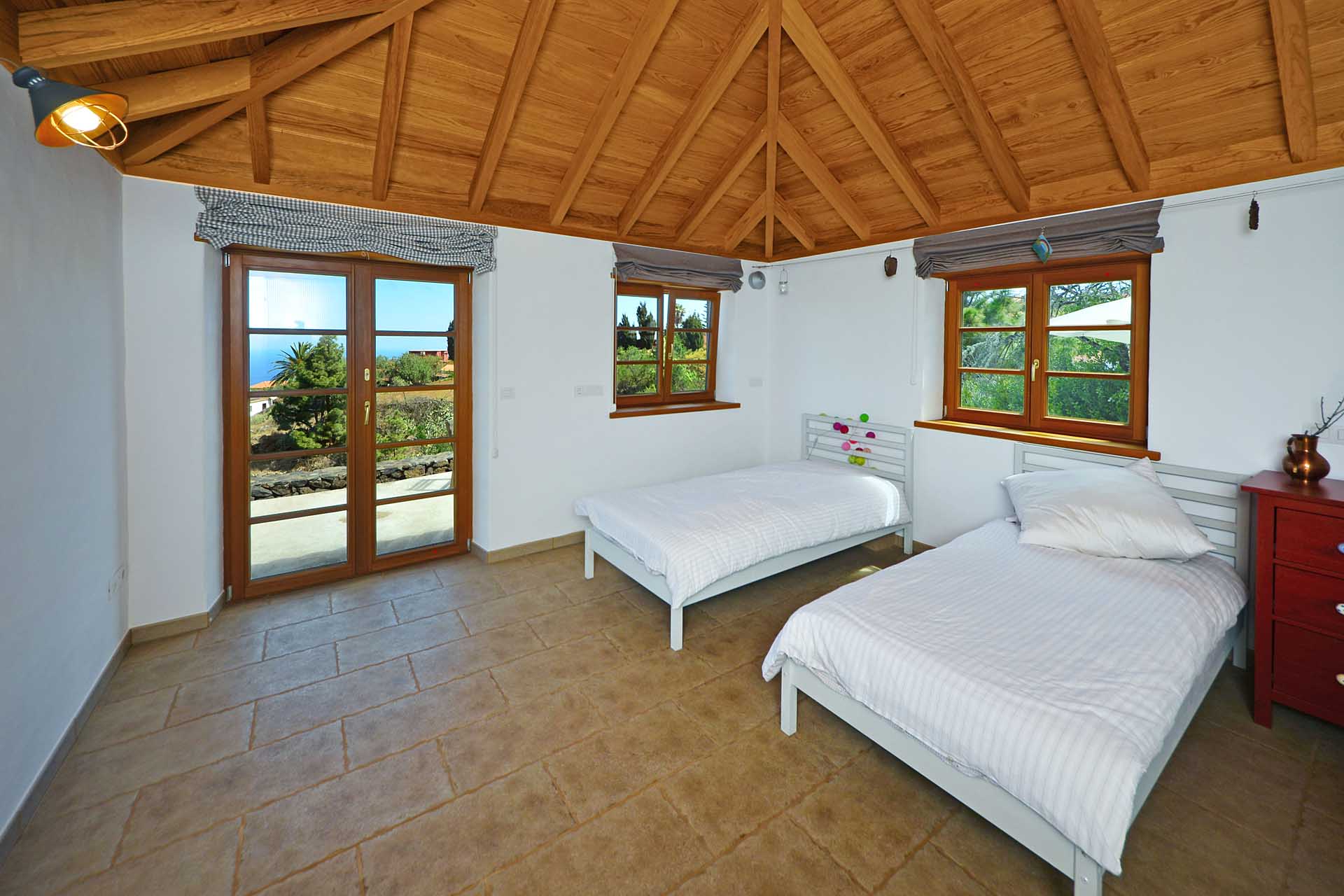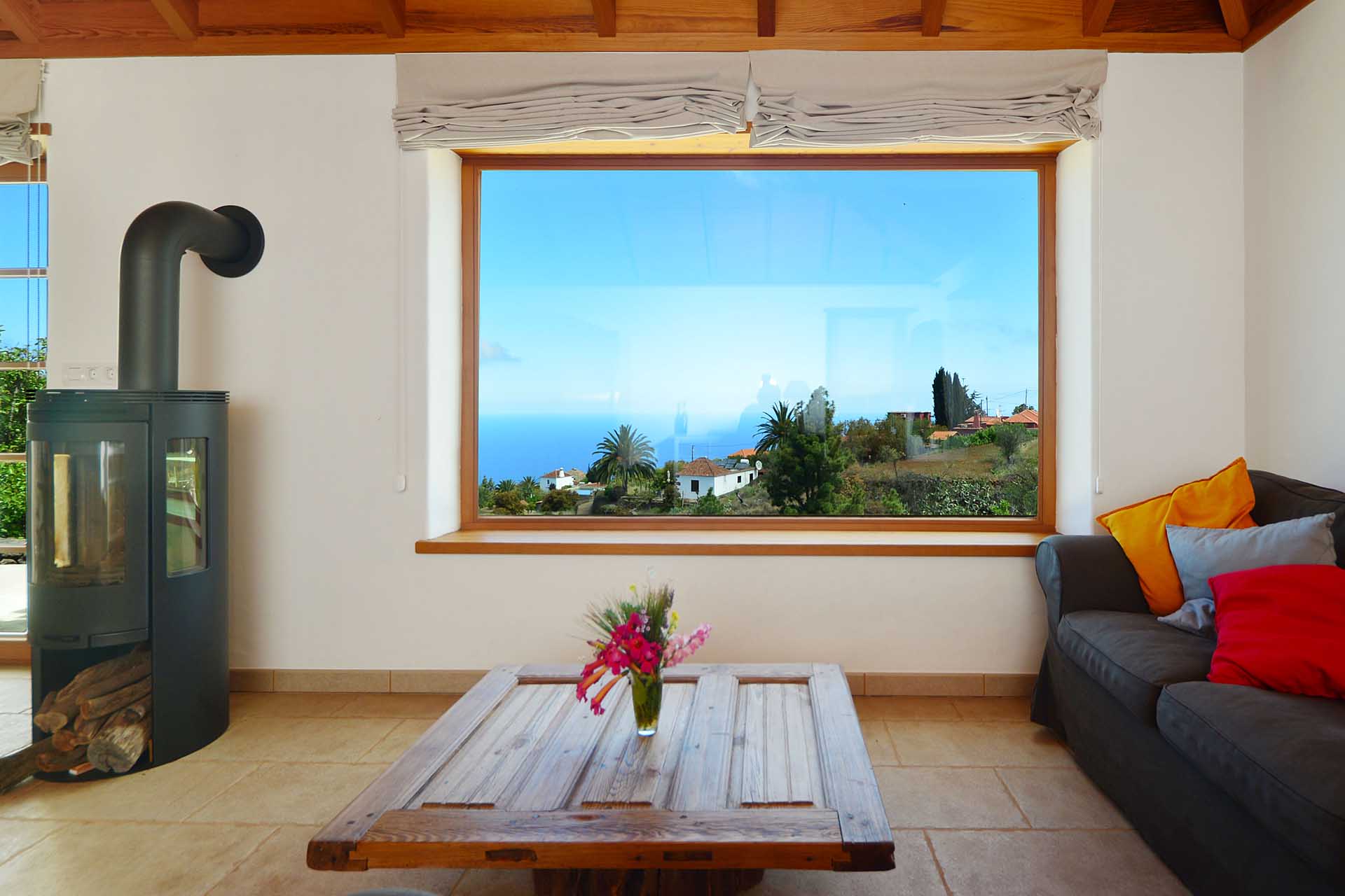 Das Haus wurde eher untypisch für La Palma ausschließlich mit hochwertigsten Materialien errichtet: Die Wände bestehen aus 36er Porotonziegel, die Böden wurden mit schlagfesten Keramikfliesen belegt, das gesamte Haus mit einer solar betriebenen Fußbodenheizung ausgestattet. Wer es besonders kuschelig und gemütlich liebt, wird sich über die zwei original schwedischen Kaminöfen freuen.