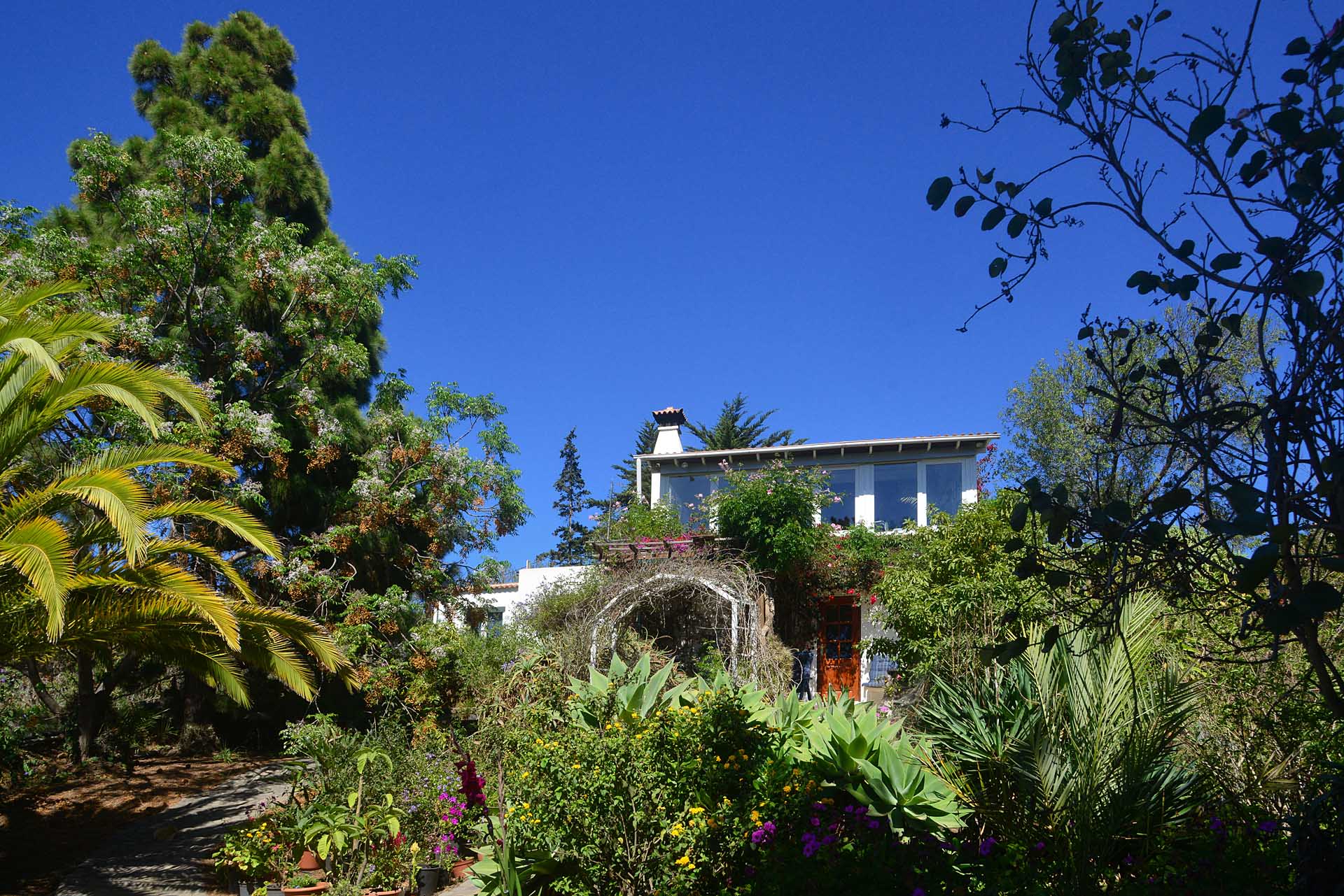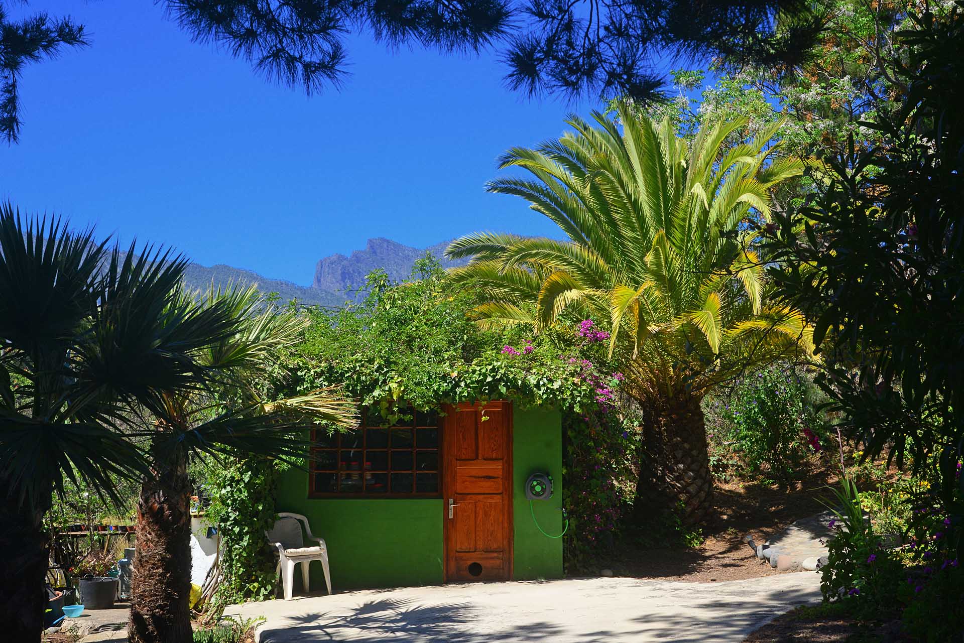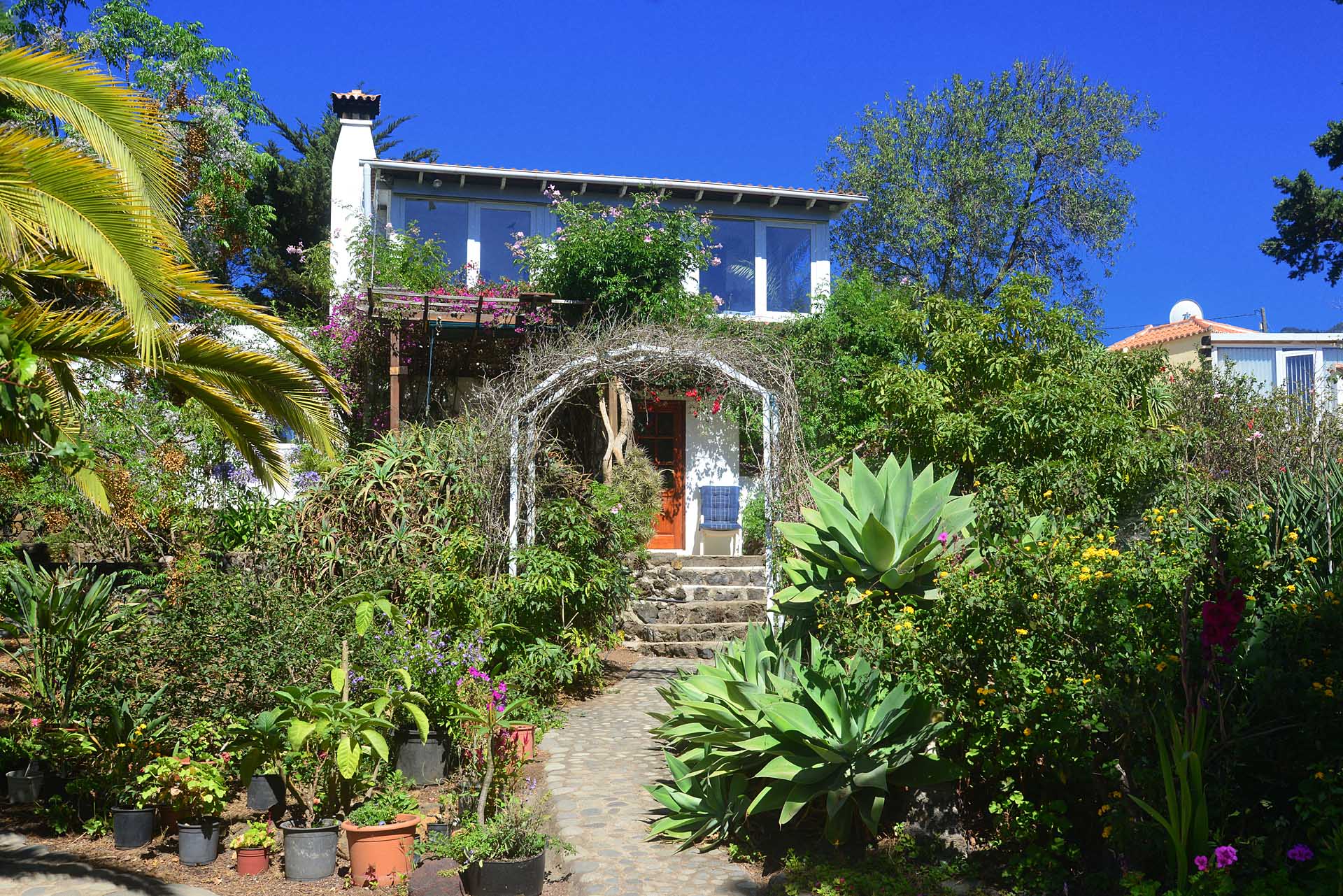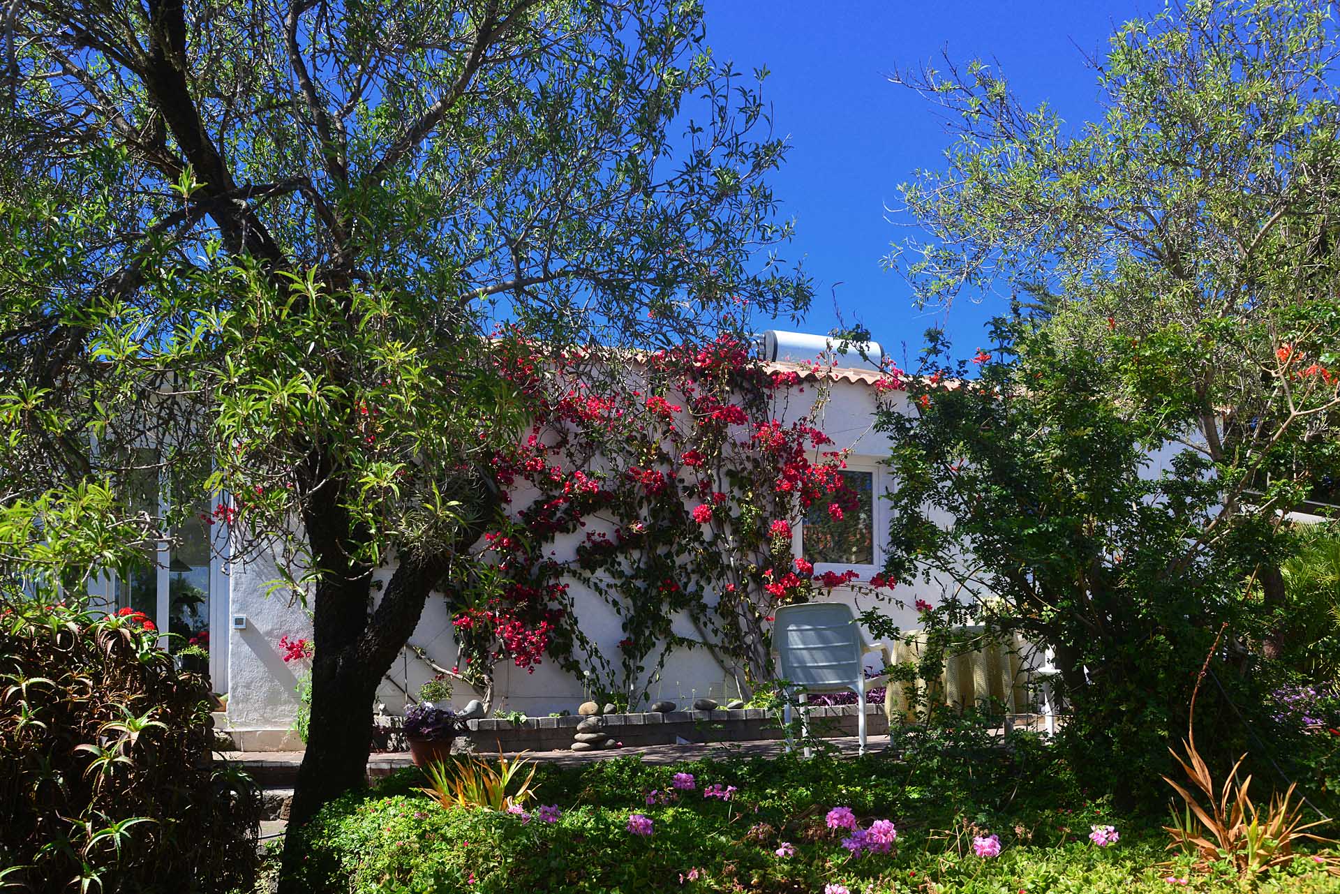 Der Garten wurde liebevoll mit subtropischen Zierpflanzen und einigen Fruchtbäumen angelegt sowie mit gut begehbaren Wegen und einer Zufahrt für normale PKWs bis zur Hauptebene gestaltet. Die Bewässerung erfolgt überwiegend mit einer automatischen Bewässerungsanlage, zwei Zisternen für Trink- und Gartenwasser sorgen für ausreichenden Wasservorrat, der über gemietete, private Wasserrechte mit ca. 1,2 l/Minute gespeist wird. Insgesamt stehen den Bewohnern vier, teilweise überdachte Terrassen mit guter Privatsphäre zur Verfügung.