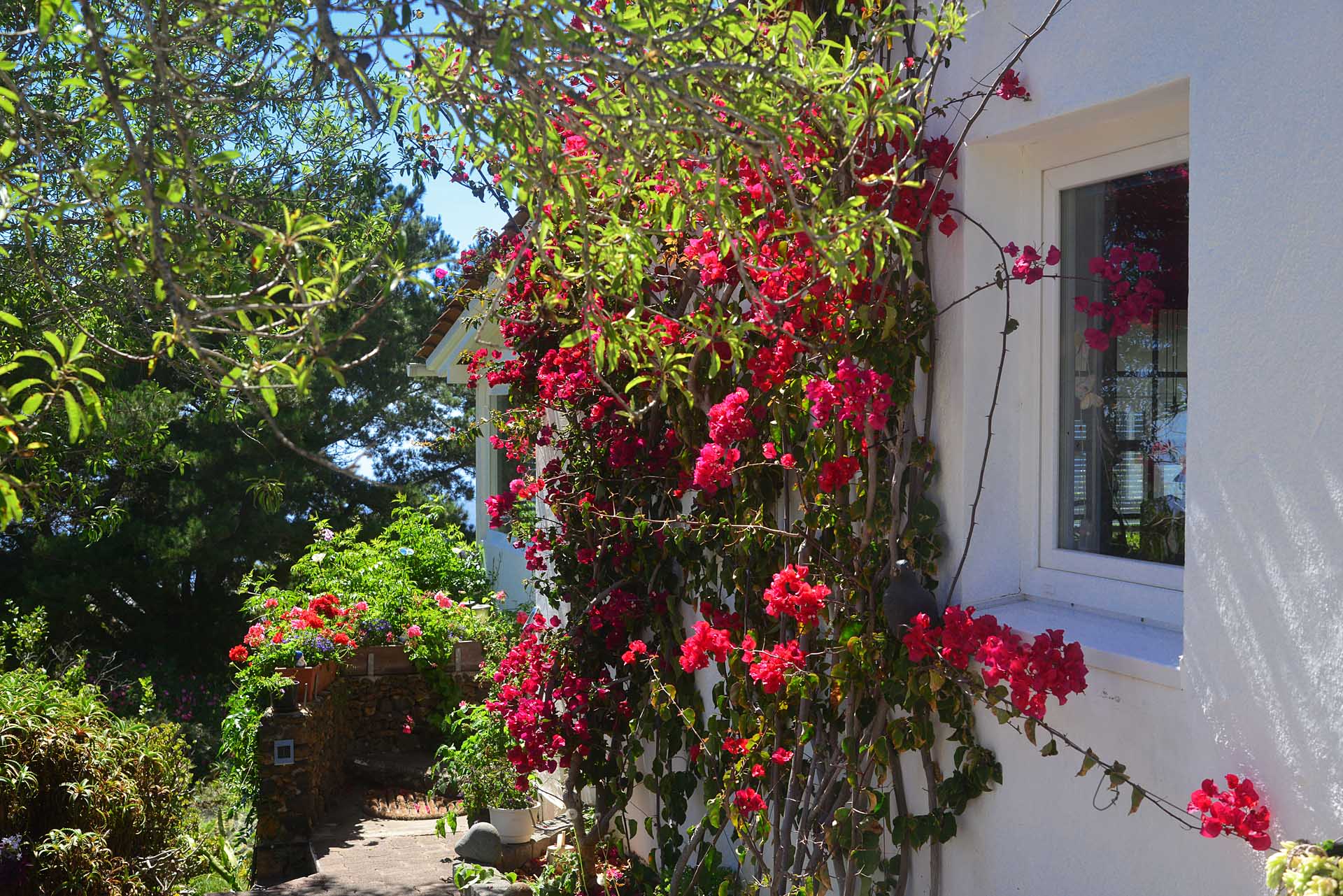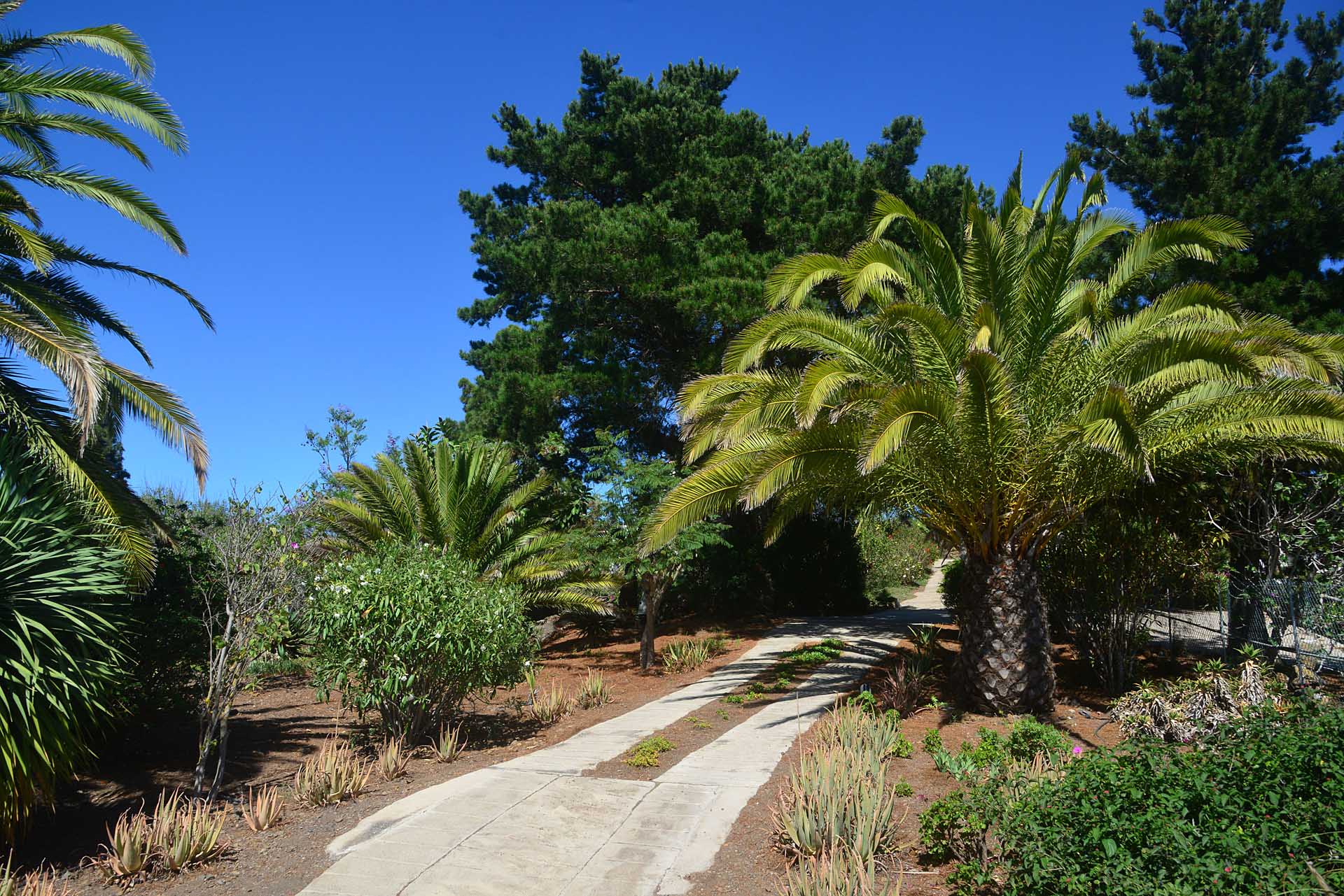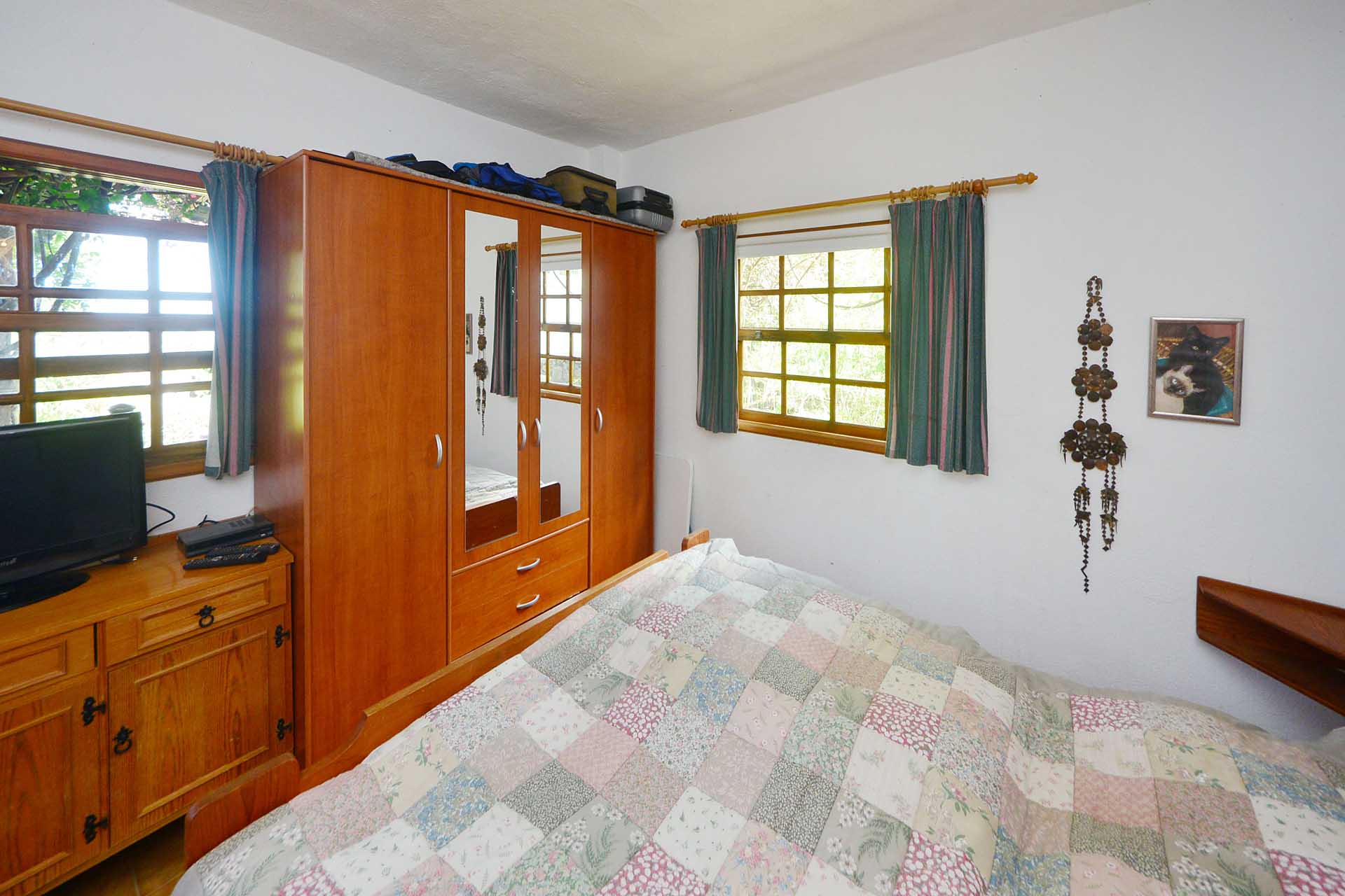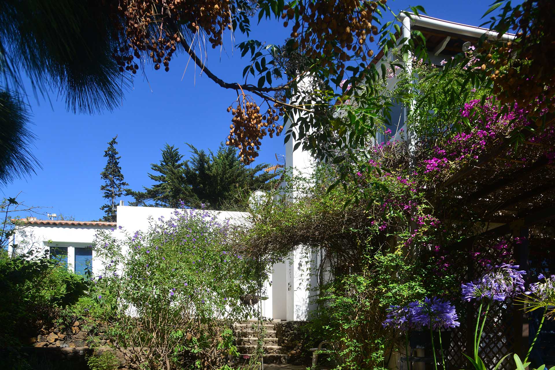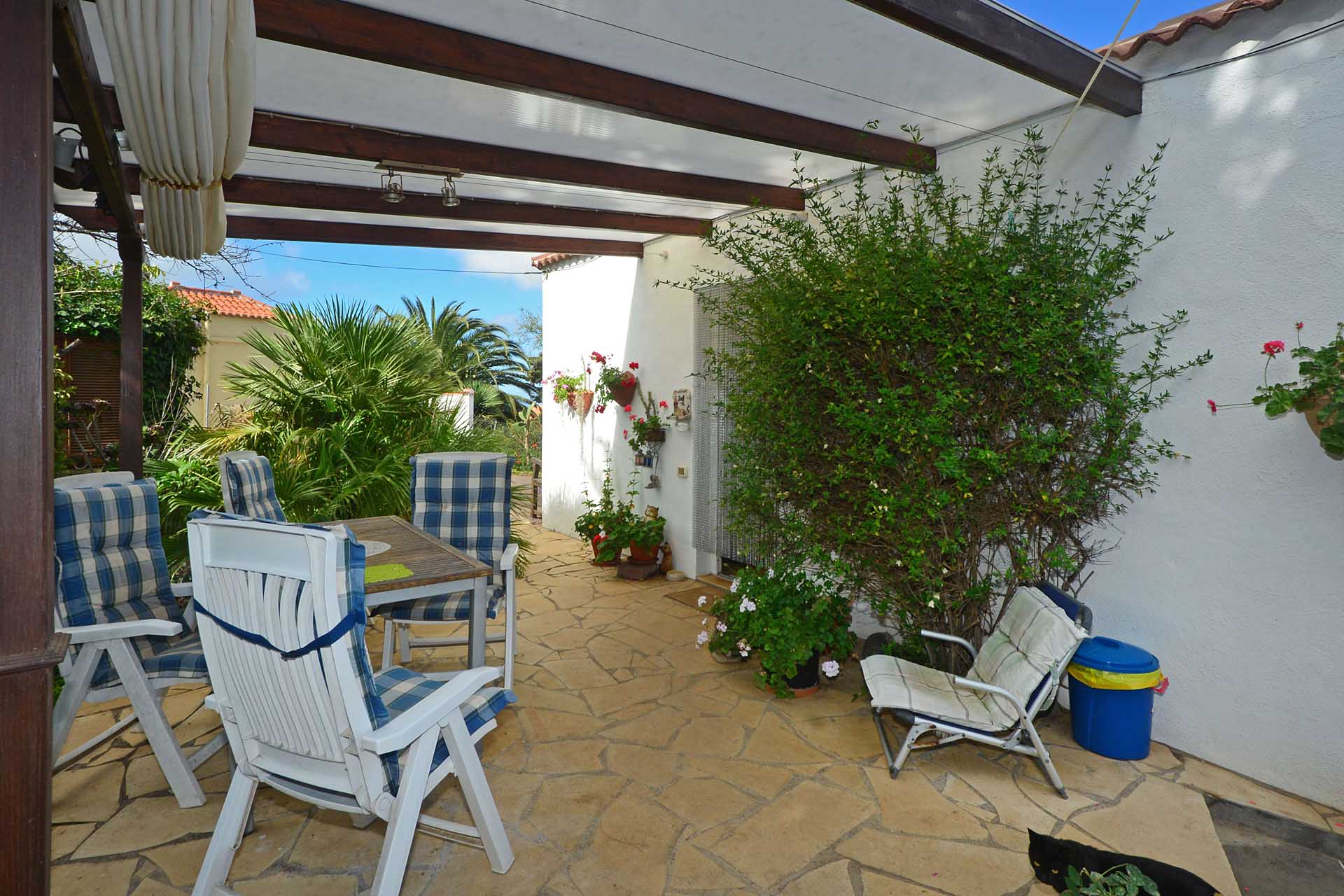 Der Garten wurde liebevoll mit subtropischen Zierpflanzen und einigen Fruchtbäumen angelegt sowie mit gut begehbaren Wegen und einer Zufahrt für normale PKWs bis zur Hauptebene gestaltet. Die Bewässerung erfolgt überwiegend mit einer automatischen Bewässerungsanlage, zwei Zisternen für Trink- und Gartenwasser sorgen für ausreichenden Wasservorrat, der über gemietete, private Wasserrechte mit ca. 1,2 l/Minute gespeist wird. Insgesamt stehen den Bewohnern vier, teilweise überdachte Terrassen mit guter Privatsphäre zur Verfügung.