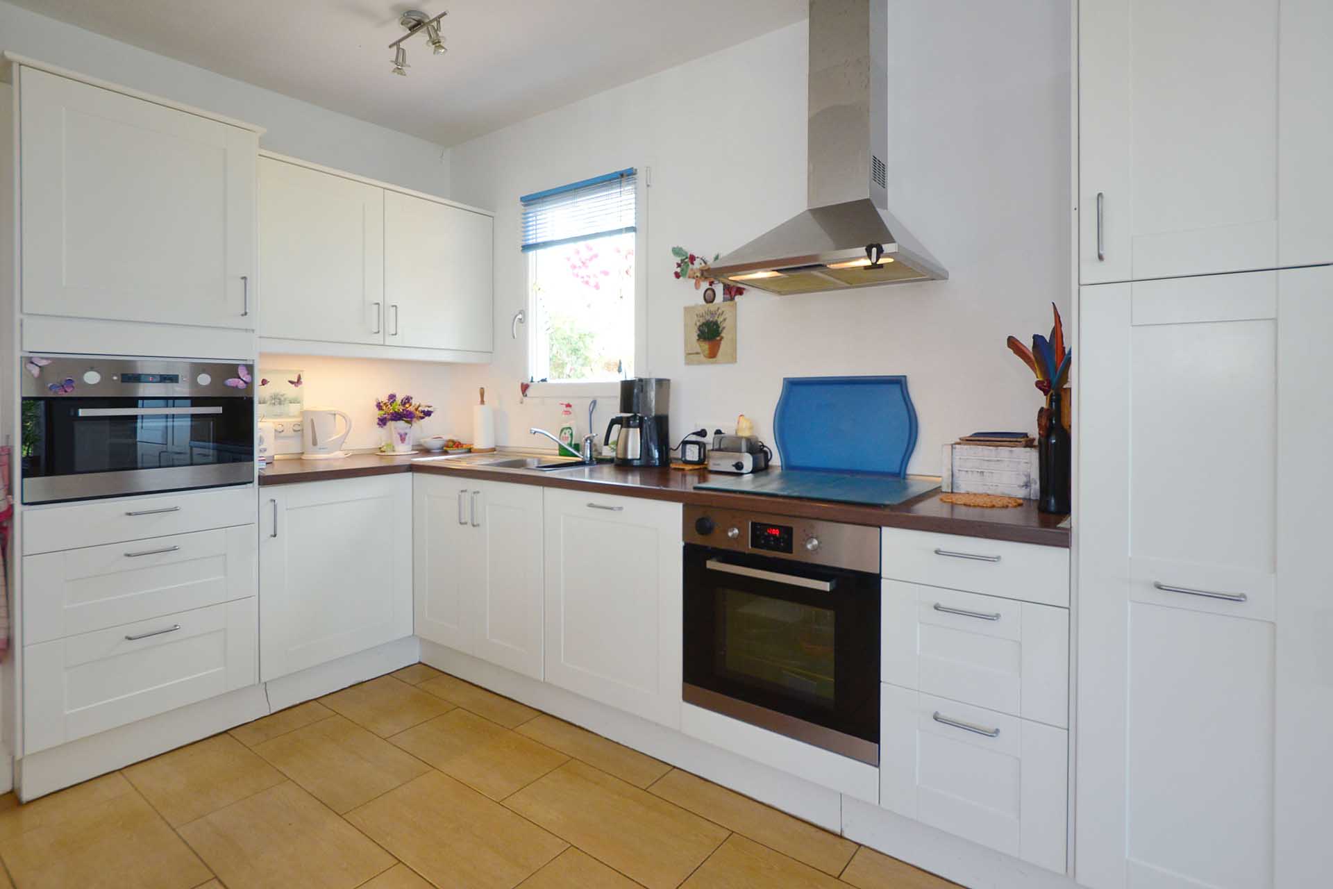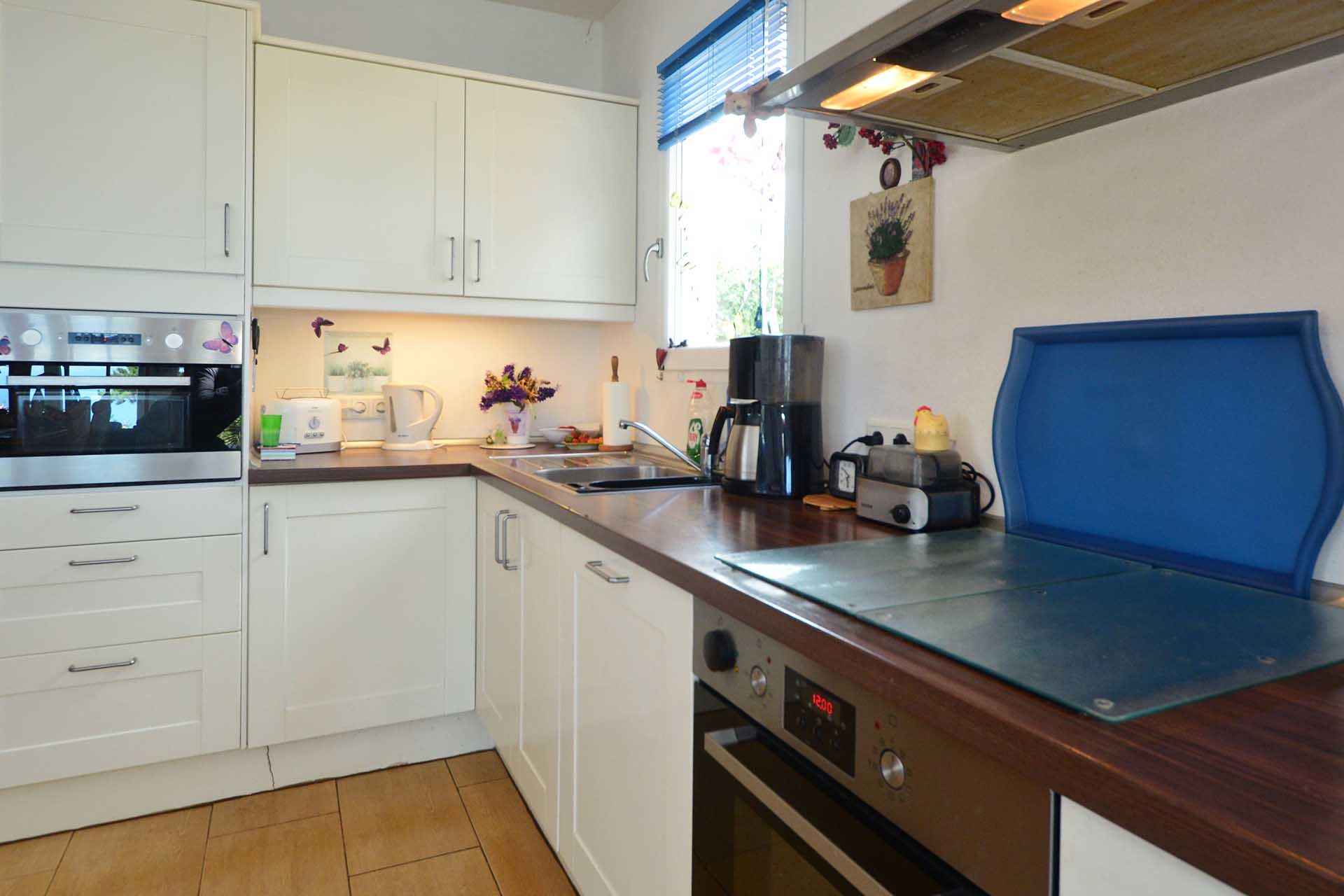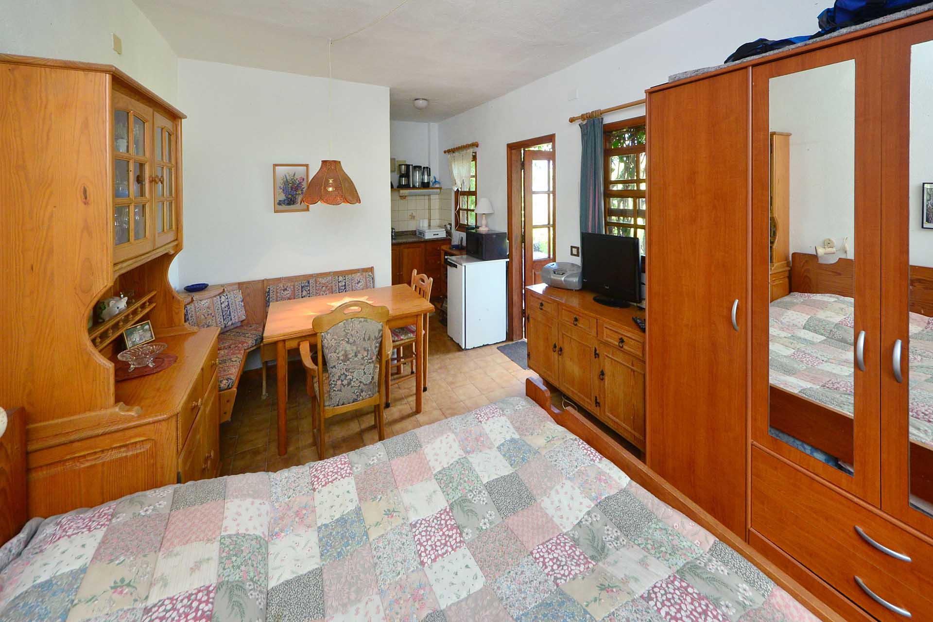 Im Erdgeschoss befindet sich ein Studio für Gäste, mit Kochnische und eigenem Duschbad, so dass familiäre Gäste auch gerne einmal länger bleiben dürfen.