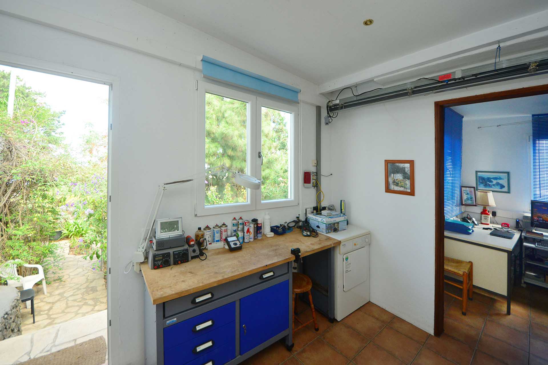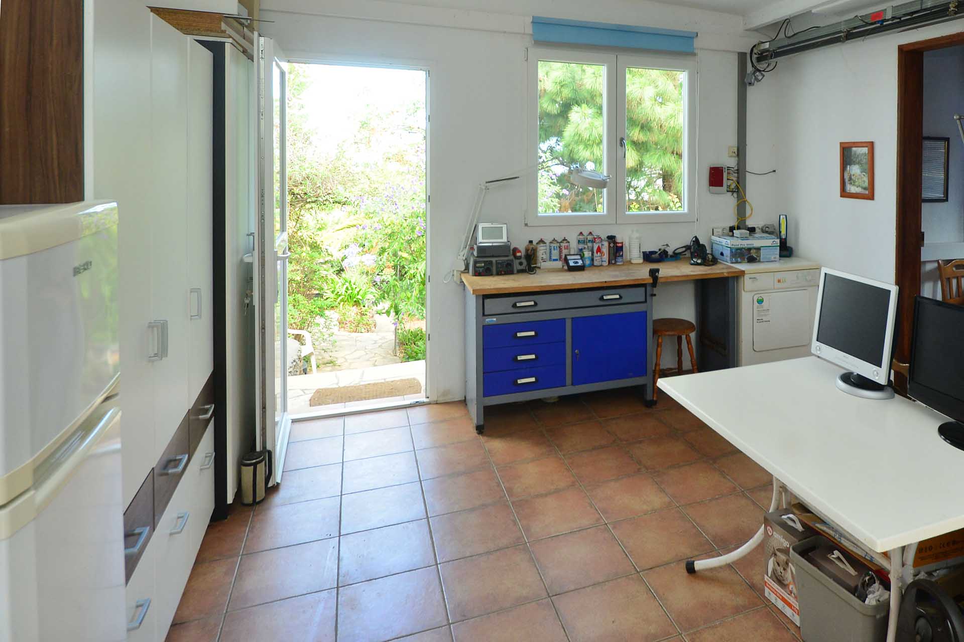 Eine große Werkstatt mit Kochzeile und separatem Büro kann ebenfalls als gesonderter Gästebereich genutzt werden, zumal noch ein weiteres, separates Lager- oder Werkstattgebäude zur Verfügung steht.