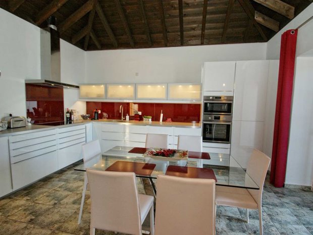 Der SPA-Bereich ist in einem eigenen Gebäude vorgesehen. Der Pool verfügt über Sonnenterrasse mit Geländer aus Edelstahl und Glas. Das Poolwasser wird chlorfrei mit Salz in eigener Filteranlage gereinigt. Neben dem Hauptgebäude befindet sich eine überdachte Außenküche mit Grill und Essplatz für sechs Personen.