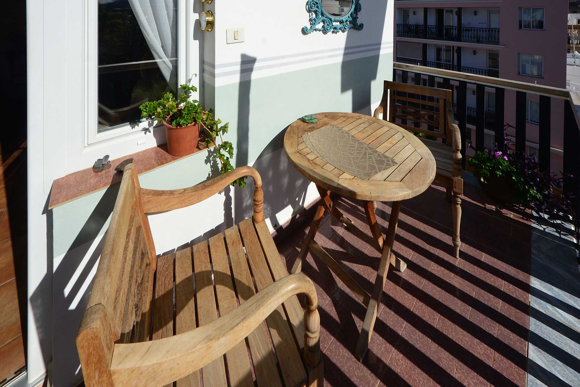 Ebenfalls zur exklusiven Nutzung gehört ein kleiner Garten zur Wohnung, der über den überdachten Eingangsbereich erschlossen ist und neben zwei Terrassen mit Sitzmöglichkeiten über eine mit Zierpflanzen bepflanzte Grünfläche verfügt.