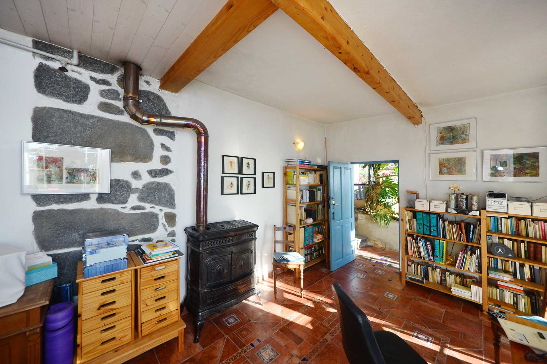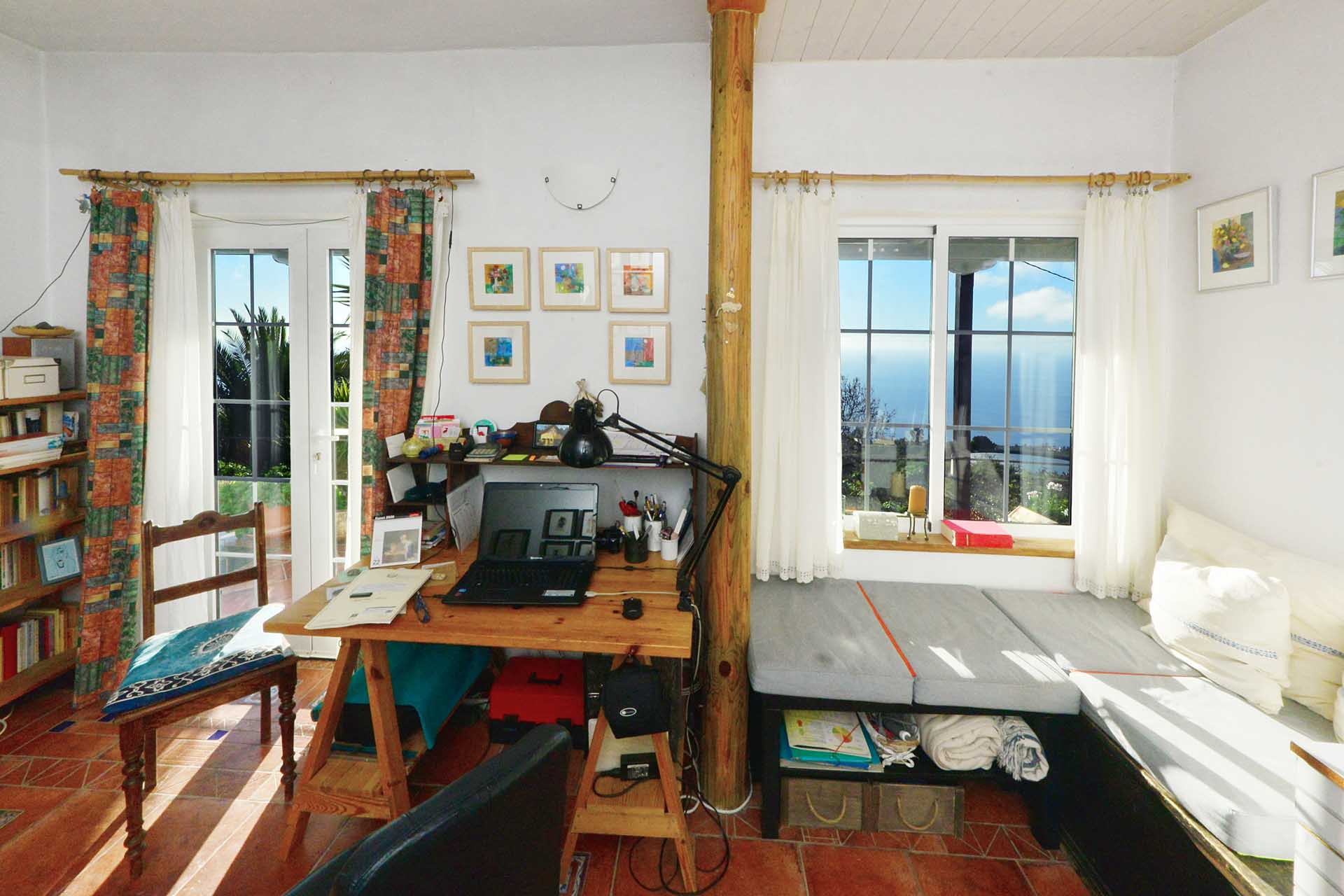 Das Haus ist beherbergt ein Atelier mit fantastischem Meerblick, dass ebenso als geräumiges Schlafzimmer genutzt werden kann, sowie eine Küche mit Speisekammer/Hauswirtschaftsraum, eine Ankleide, ein Wohnzimmer, ein weiteres Schlafzimmer und zwei Badezimmer. Auf der Nordostseite des Hauses wurde eine weitere, überdachte Terrasse gebaut, so dass Sie auch im Hochsommer immer ein schattiges, kühles Plätzchen zum Verweilen finden.