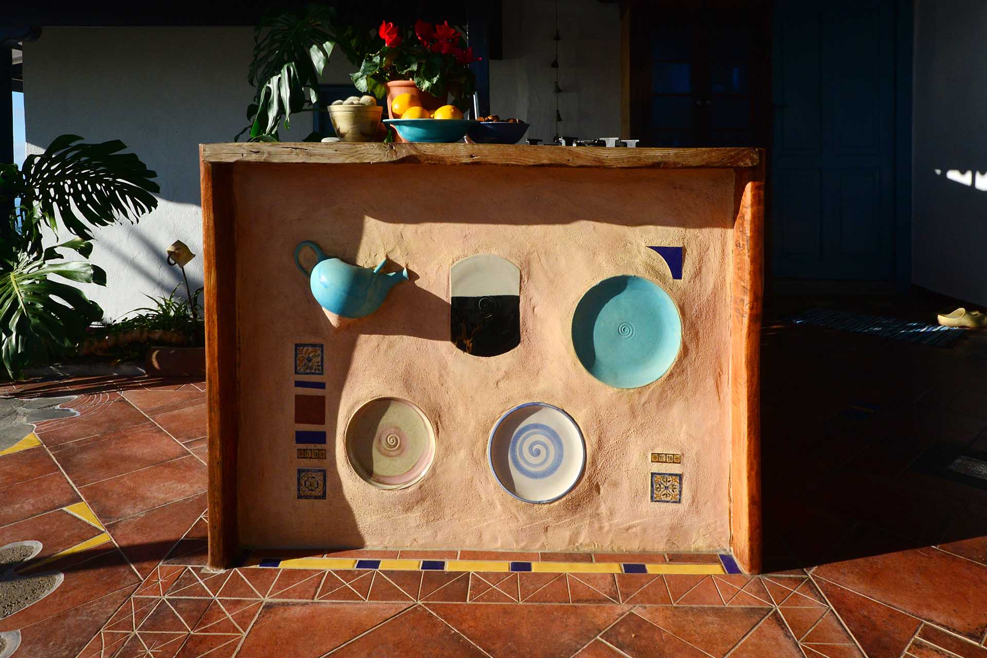 Eine besonders kunstvolle und einzigartige Gestaltung der Fußböden im Haus und auf den Terrassen, schöne Details, wie ein Sitzbänkchen sowie die liebevolle Ausgestaltung der Außenküche, geben diesem Wohnsitz einen besonderen Charme.