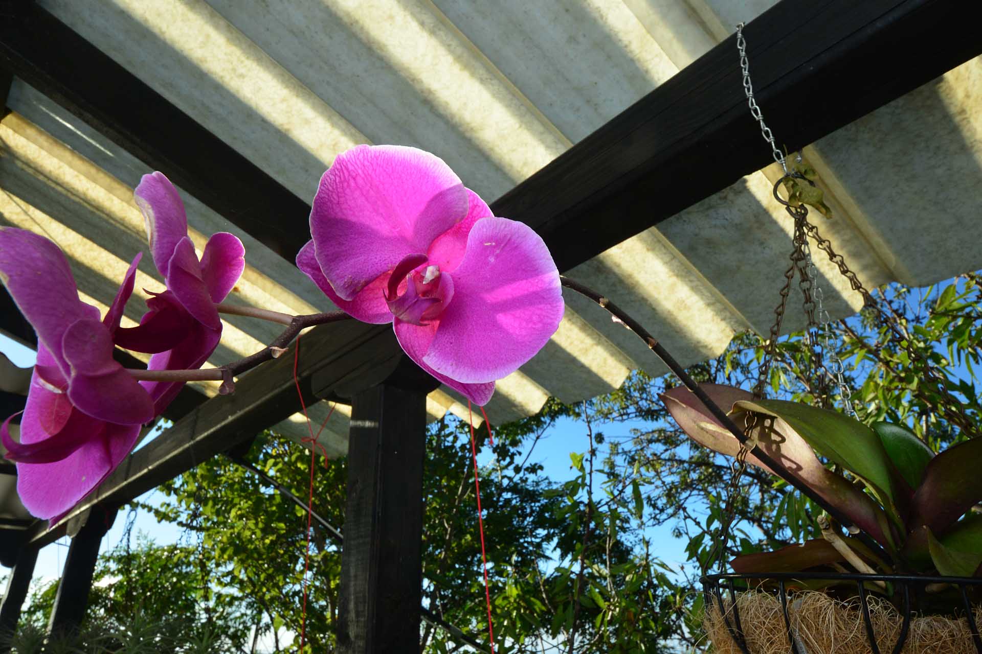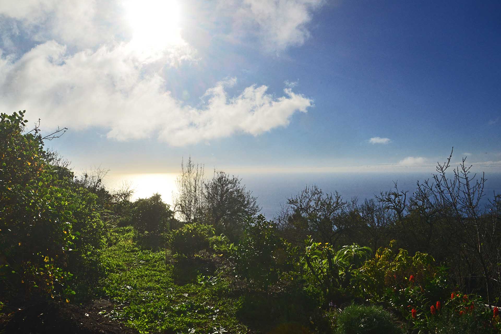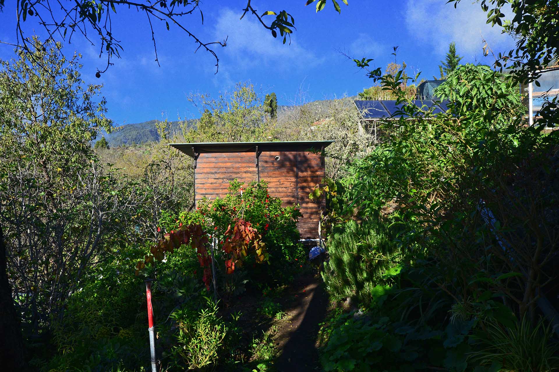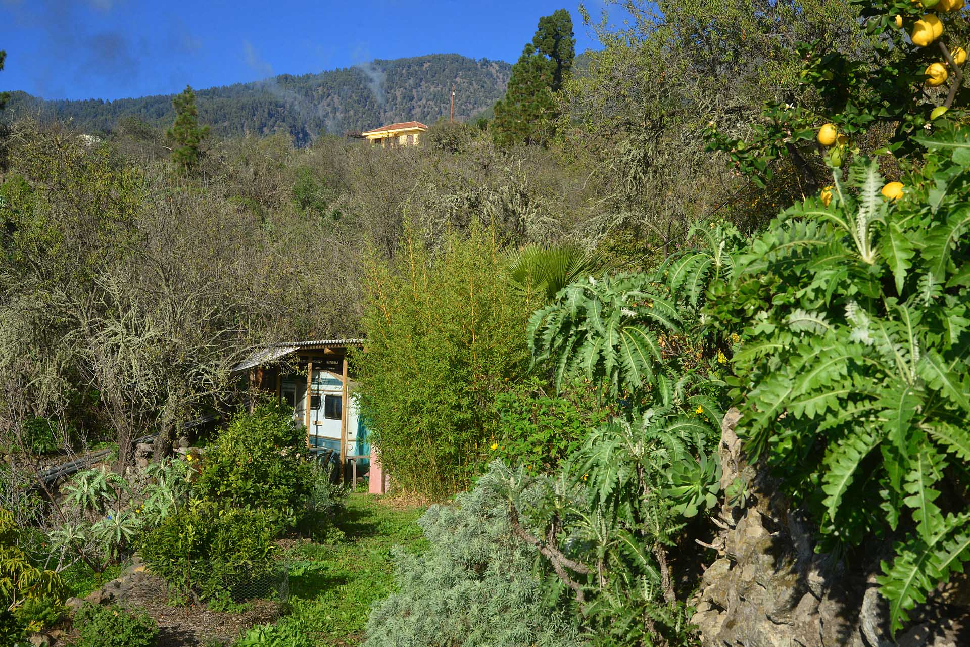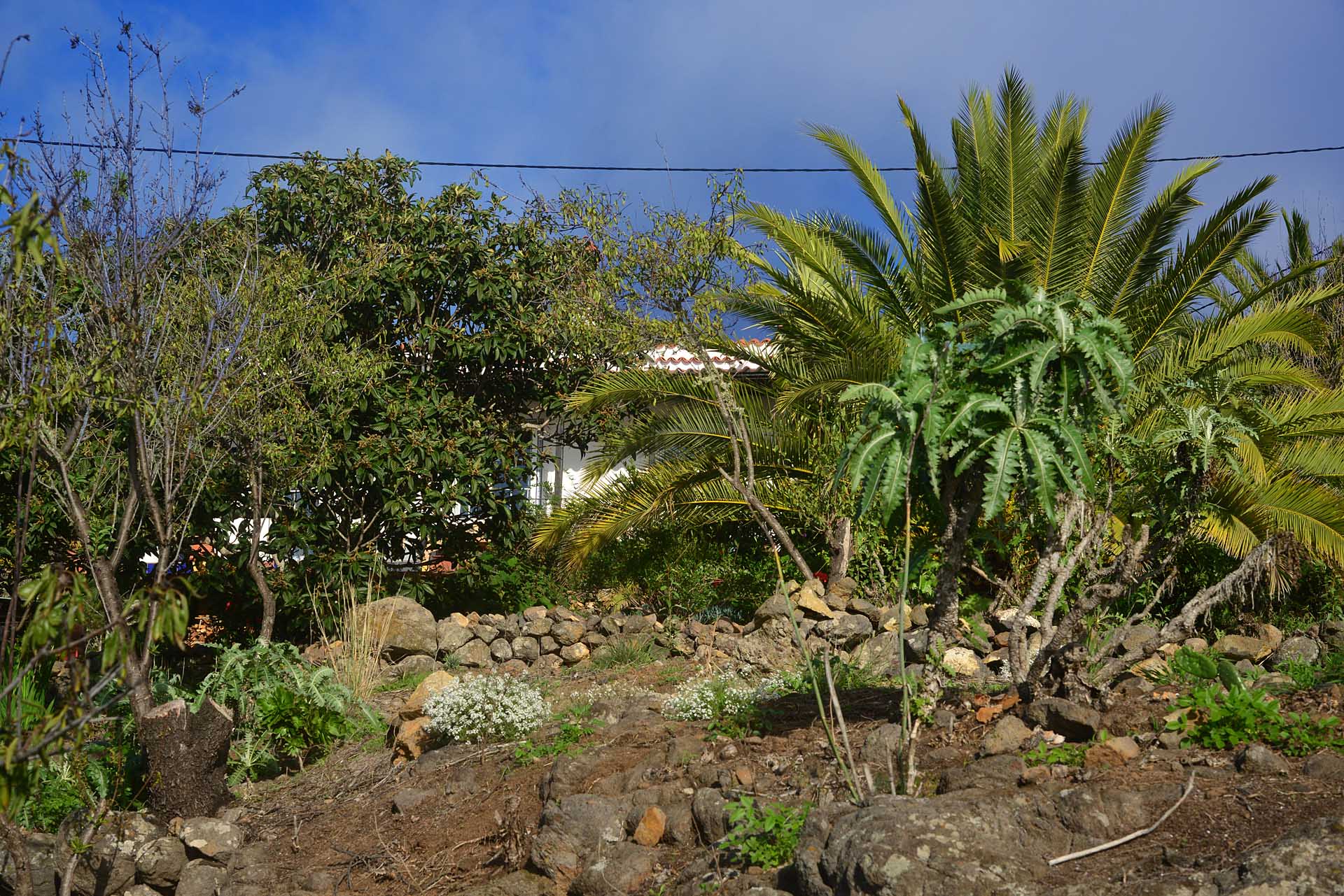 Der große Garten ist gut eingewachsen, die ursprünglichen Terrassen wurden rekultiviert und naturnah angelegt. Er wird automatisch bewässert. Neben zahlreichen Mandelbäumen gibt es 65 verschiedenste Obstgehölze, darunter Zitrusgehölze, Cherimoja, Mangos, Guaven. Palmen, Rosen, exotische und endemische Pflanzen und verschiedene Kakteen und Sukkulenten runden den Garten ab.