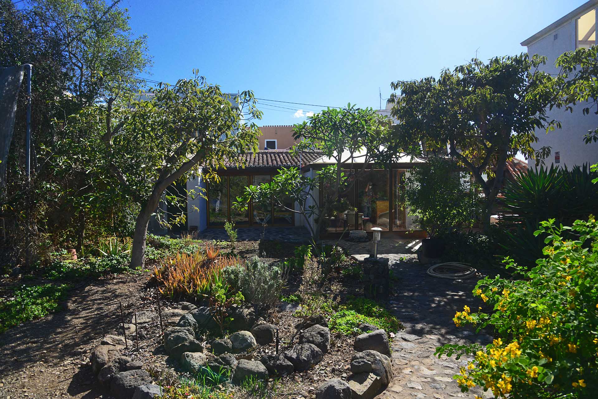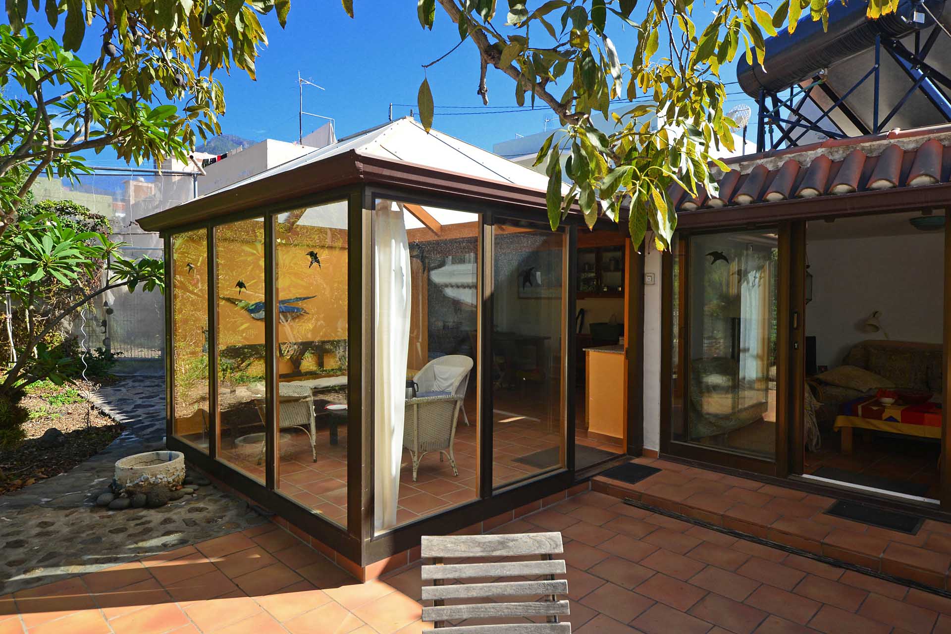 Das teilweise dreigeschossige Patiohaus eines Herrenhauses aus dem 19. Jahrhundert befindet sich am östlichen Stadtrand von Los Llanos, etwas oberhalb des Stadtteiles Argual in sehr ruhiger Lage und ist umgeben von Gärten und hohen Palmen. Der historische Teil des Hauses im Erdgeschoss ist in klassischer Natursteinbauweise errichtete. Es wurde Ende der neunziger Jahre von dem deutschen Eigentümerehepaar aufwändig totalsaniert, umgebaut und erheblich erweitert. Dabei wurde sehr darauf geachtet, dass der historische Teil soweit wie möglich erhalten blieb und die neuen Räume harmonisch dazu angepasst wurden. Das gesamte Gebäude ist sehr gut gepflegt und befindet sich in ausgezeichnetem Zustand. Über ein Tor mit separater Tür betreten Sie den schön angelegten Garten, mit Zier- und Fruchtbäumen, sowie gut befestigten und beleuchteten Gartenwegen.