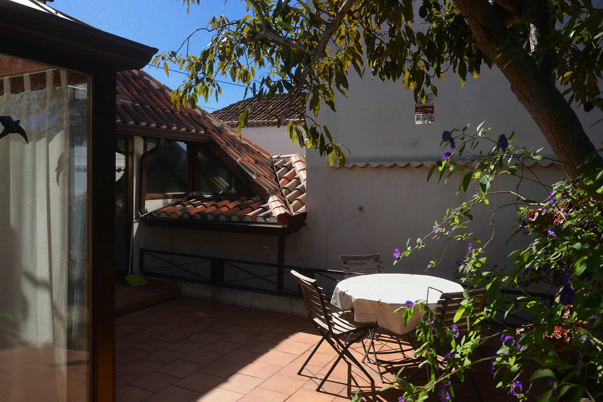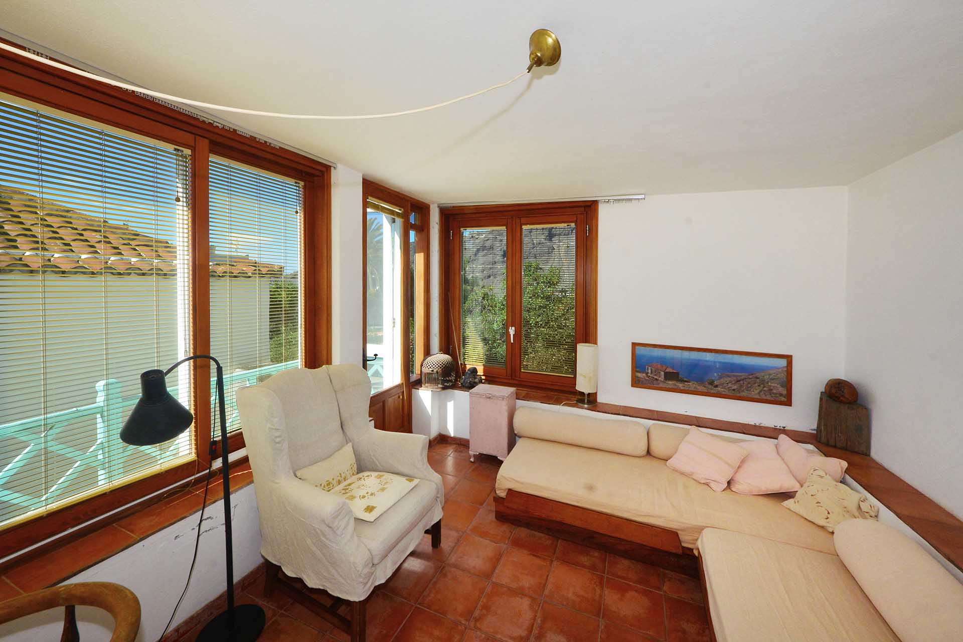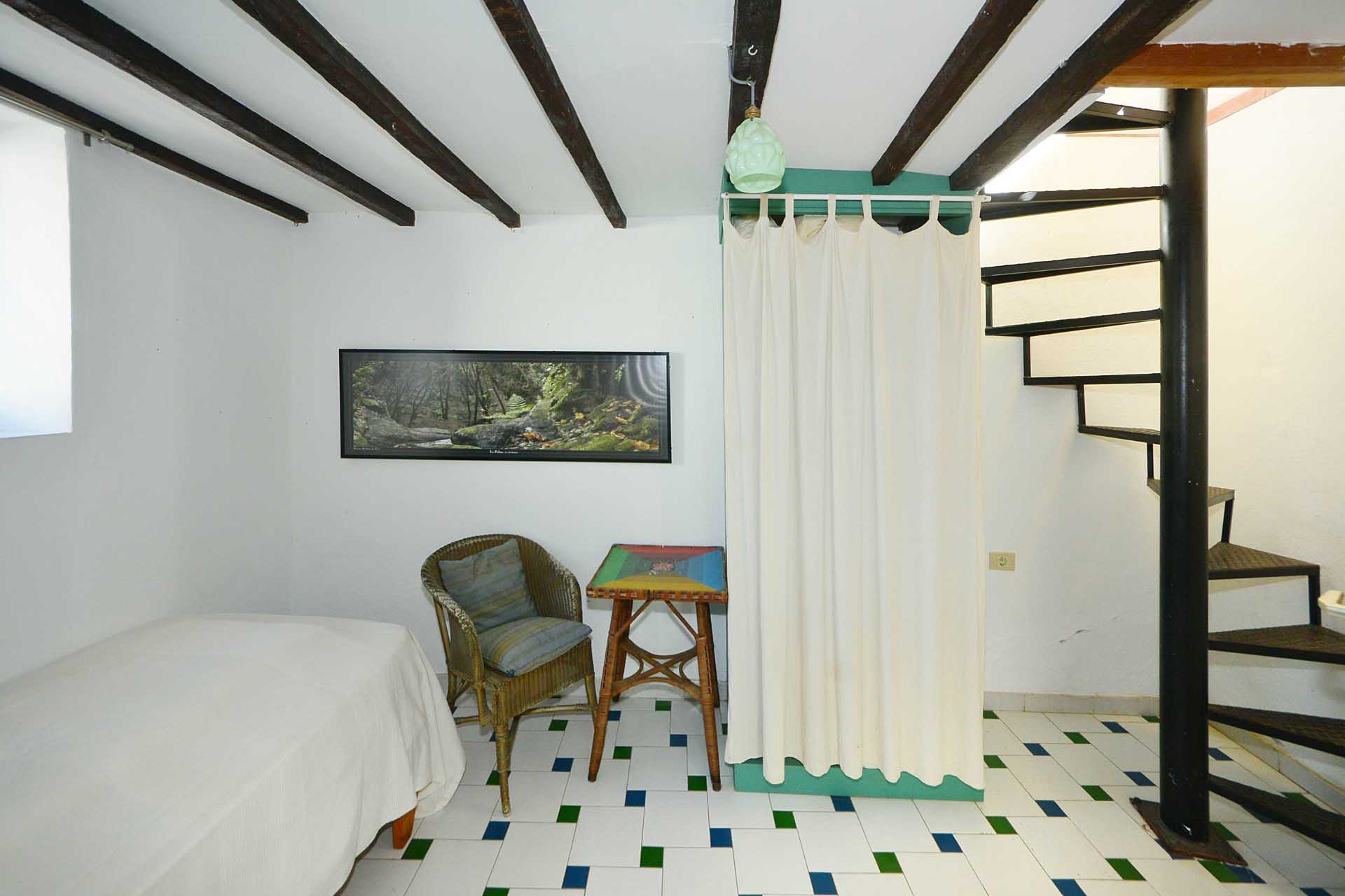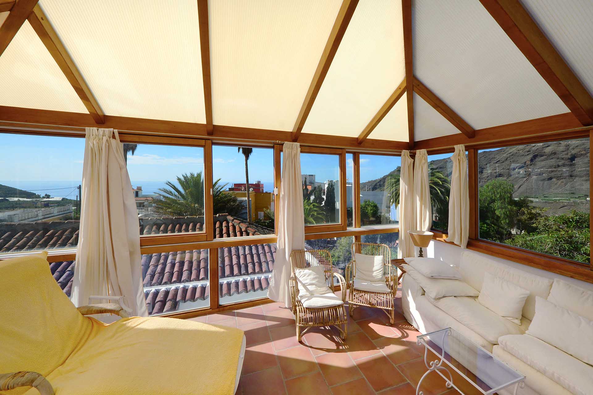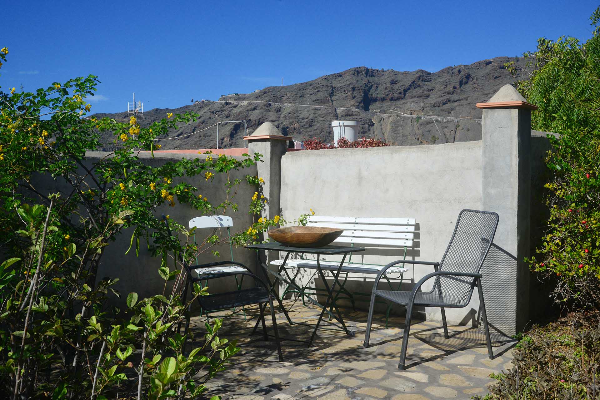 Durch das historische Eingangstor kommen Sie in einen Innenhof, auf dessen linker Seite ein dreigeschossiges Gebäude liegt. Über eine Steintreppe, auf deren Abseite sich ein historischer Wasserfilter aus der Caldera befindet, erreichen Sie ein Arbeits- oder Schlafzimmer im ersten Stock. Eine schön gebaute Wendeltreppe führt zum Turmwintergarten im zweiten Stock mit sensationellem Rundumblick auf den Atlantik und die Calderaberge, oder in ein Schlafzimmer mit kleinem Bad im Erdgeschoss und direktem Zugang zum Innenhof. Am Ende des Innenhofs befindet sich ein Essplatz - überdeckt von einem uralten Weinstock - und gegenüber dem Zugang zum Schlafzimmer mit eigenem Badezimmer. Am Ende des Innenhofs gelangen Sie durch eine große Glas-Schiebetür zur Küche, in der nach alten Erzählungen früher einmal Bonbons aus Zuckerrohrsaft gewerblich hergestellt wurden.