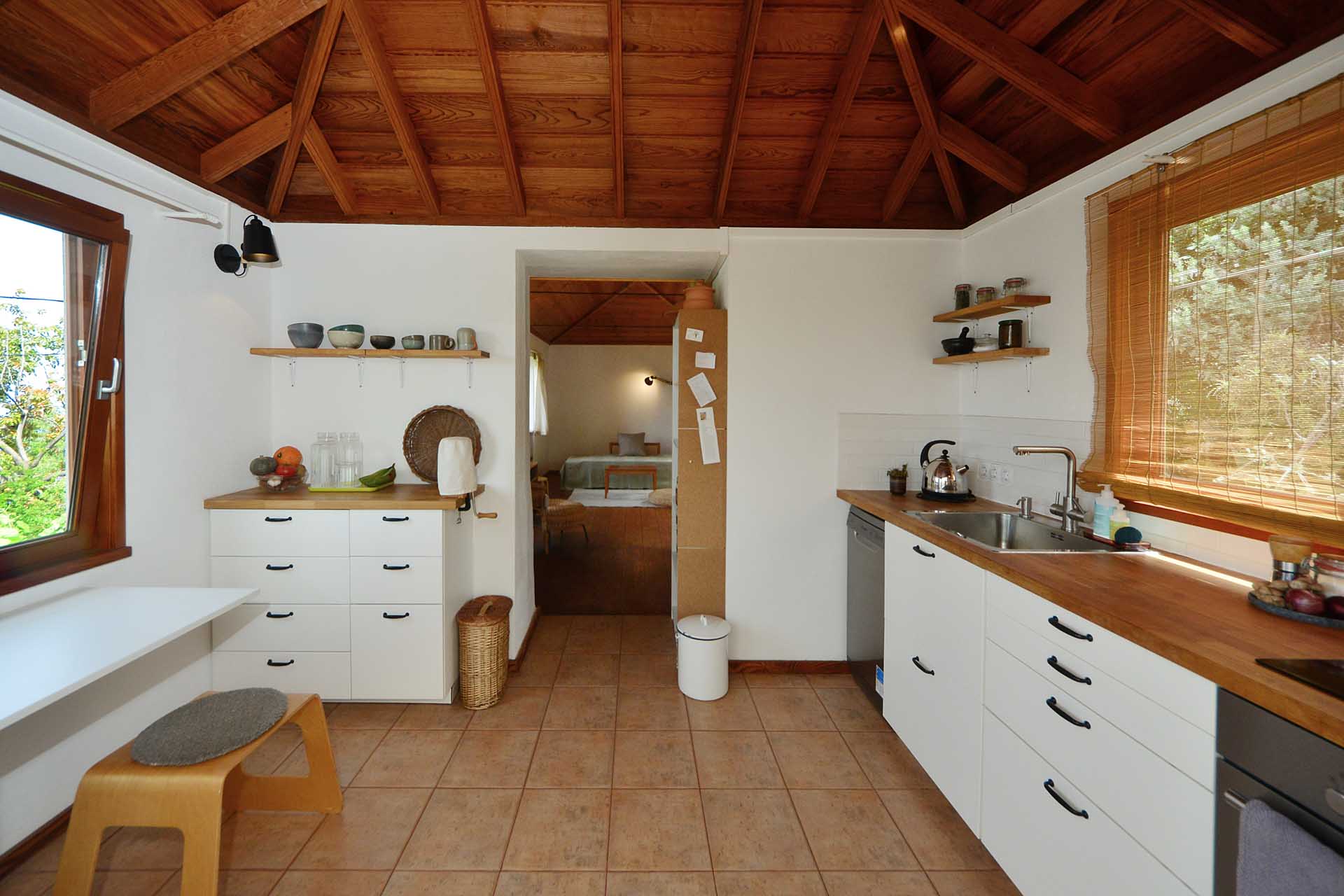 Die zweigeschossige Bauweise am Berg ist sehr typisch für La Palma, doch selten findet man diese Häuser so gut und vor allem völlig trocken. Es wurde zunächst von einem deutschen Architekten saniert und in den Jahren 2018-2020 von seinen jetzigen Eigentümern auf den aktuellen Stand der Bautechnik mit z.B. doppeltverglasten, neuen Holzfenstern gebracht. Es befindet sich in technisch perfektem Zustand und ist in seiner jetzigen Größe ideal als Dauerwohnsitz für zwei Personen geeignet. Die Eigentümer legten dabei großen Wert auf ökologische Bauweise und auch den ökologischen Betrieb der Finca, der Garten mit seinen zahlreichen Fruchtbäumen. Der Garten wurde ökologisch zertifiziert und eine moderne, skandinavische Komposttoilette außerhalb des Hauses gebaut, die nur ein bis zwei Mal pro Jahr gewartet werden muss und völlig geruchsfrei arbeitet.
