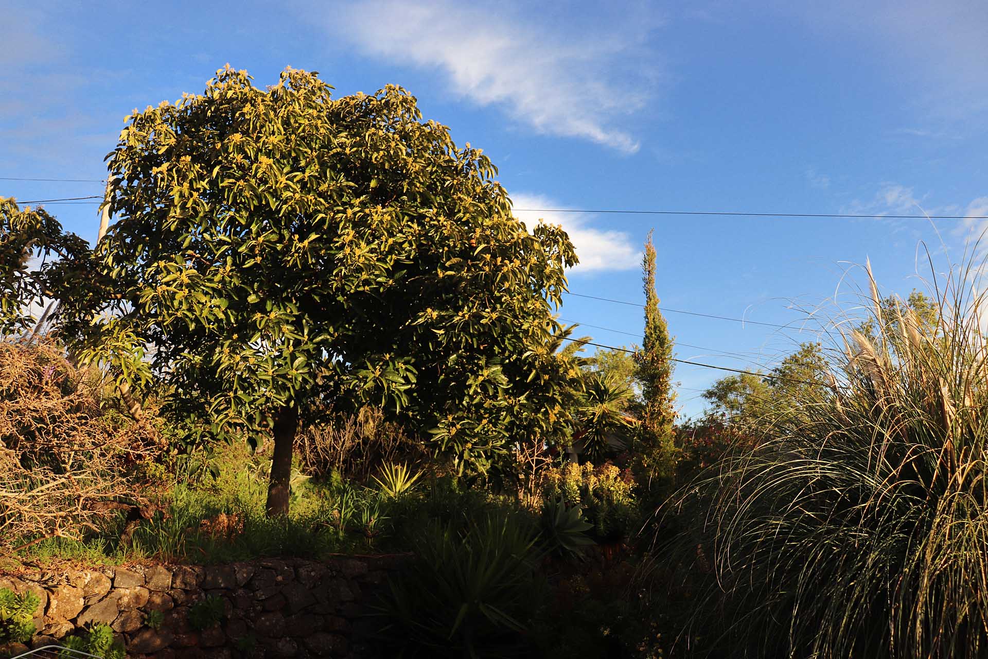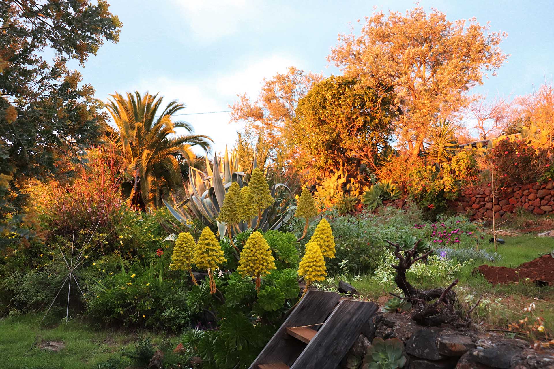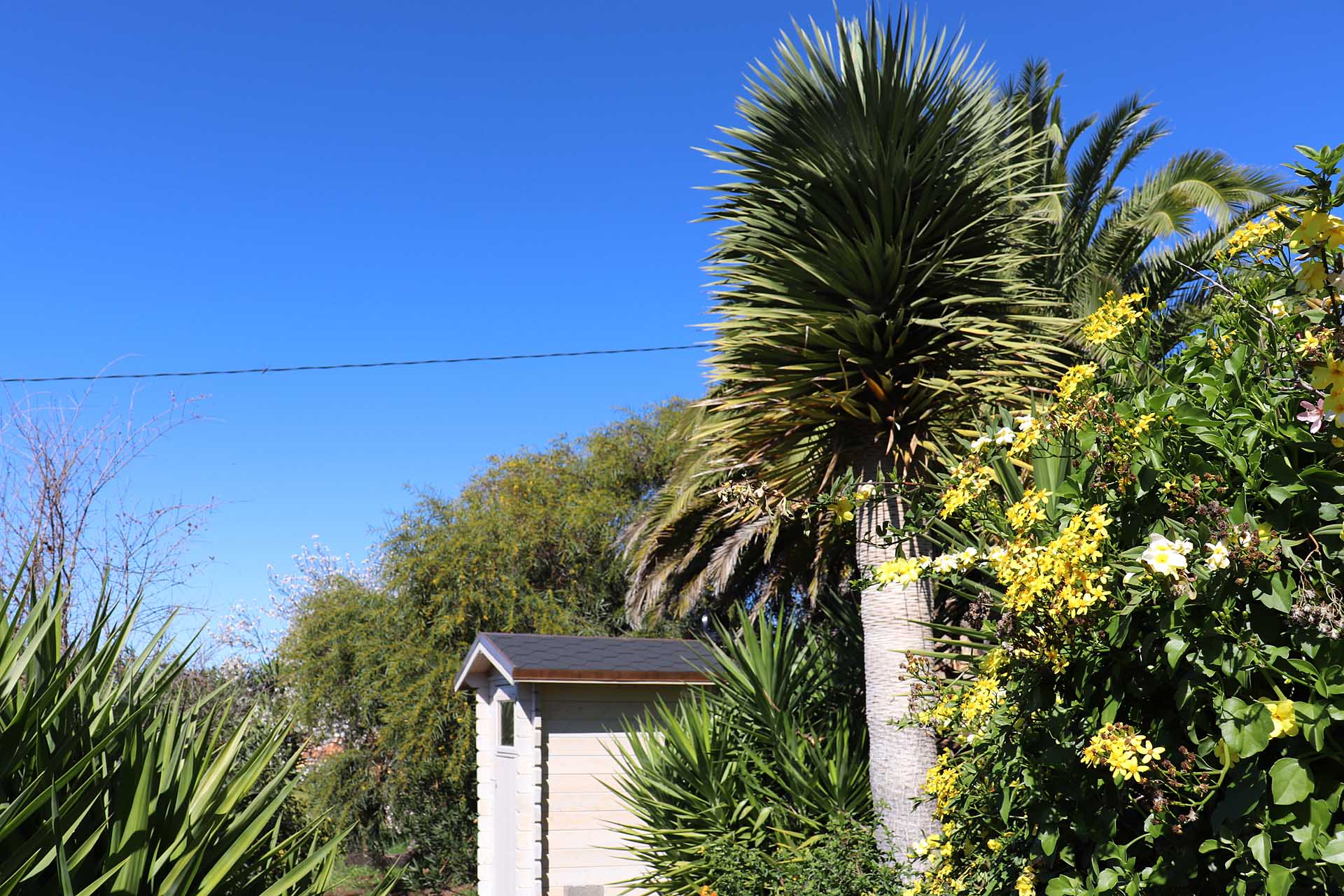 Das Grundstück wurde mit sehr vielen Frucht- und Zierbäumen bepflanzt und rein ökologisch betrieben. Er ist mit mehreren gut tragende Avokadobäume (2 Sorten) und zahlreichen Obstbäumen (Orangen, Zitronen, Äpfel, Birnen, Mandarinen, Grapefruit, Granatäpfel, Feigen, Nisperos, Aprikosen, Pflaumen, Pomelos, Birnenmelonen, Nektarinen, Pfirsiche, Guaven, Maracujas, Nashi, Kaktusfeigen) bepflanzt. Des Weiteren finden sich viele Mandelbäume, Weinreben und ein junger Macadamiabaum.