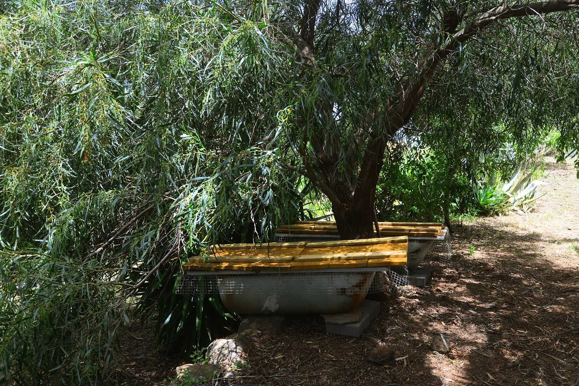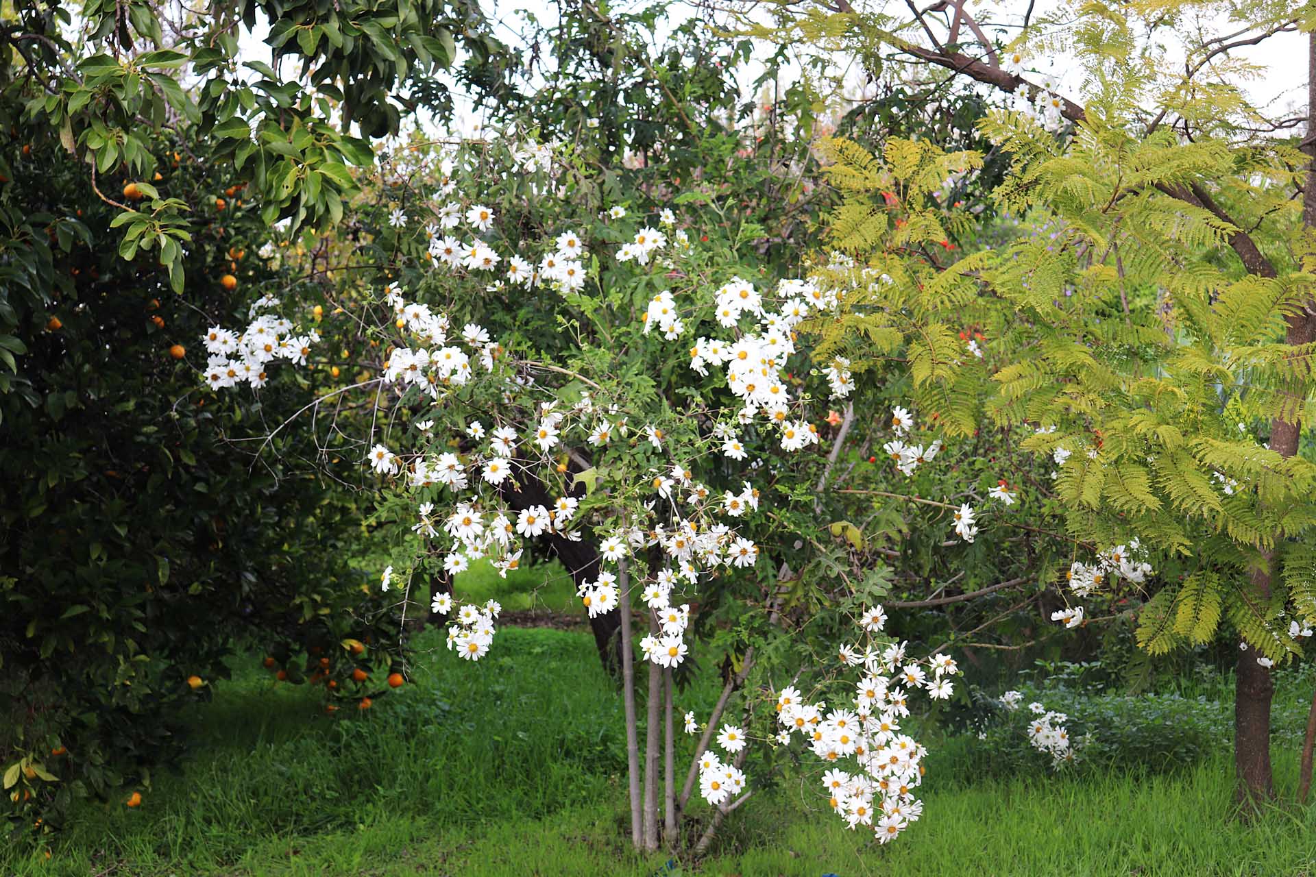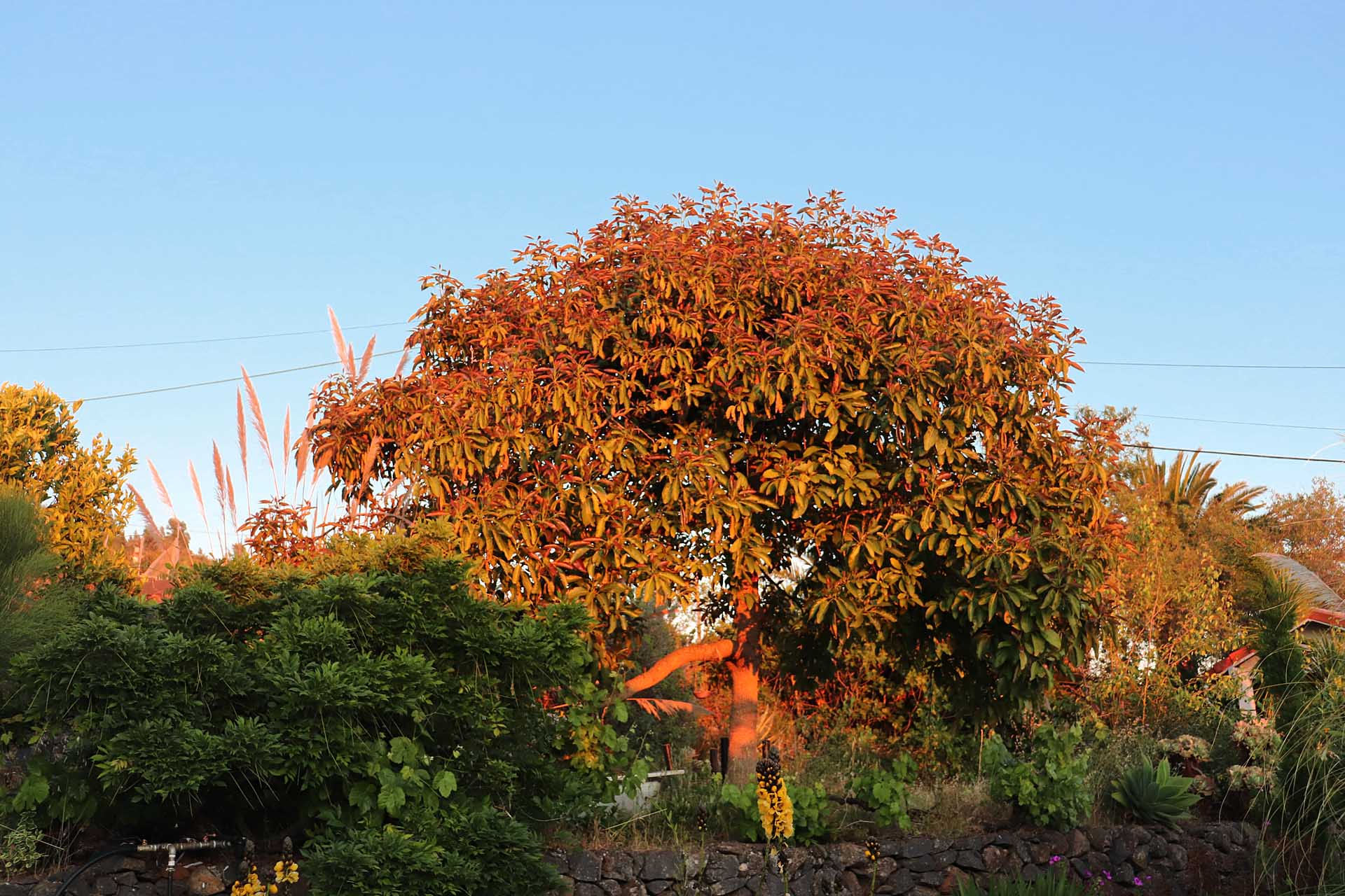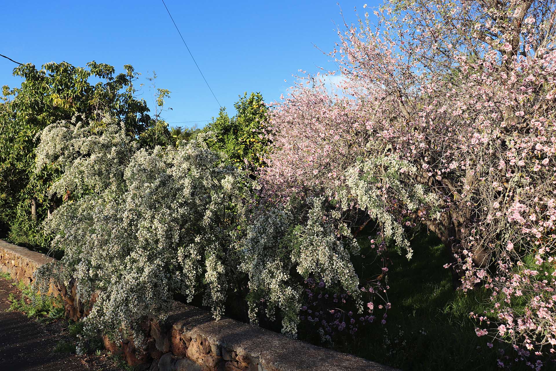 Das Grundstück wurde mit sehr vielen Frucht- und Zierbäumen bepflanzt und rein ökologisch betrieben. Er ist mit mehreren gut tragende Avokadobäume (2 Sorten) und zahlreichen Obstbäumen (Orangen, Zitronen, Äpfel, Birnen, Mandarinen, Grapefruit, Granatäpfel, Feigen, Nisperos, Aprikosen, Pflaumen, Pomelos, Birnenmelonen, Nektarinen, Pfirsiche, Guaven, Maracujas, Nashi, Kaktusfeigen) bepflanzt. Des Weiteren finden sich viele Mandelbäume, Weinreben und ein junger Macadamiabaum.