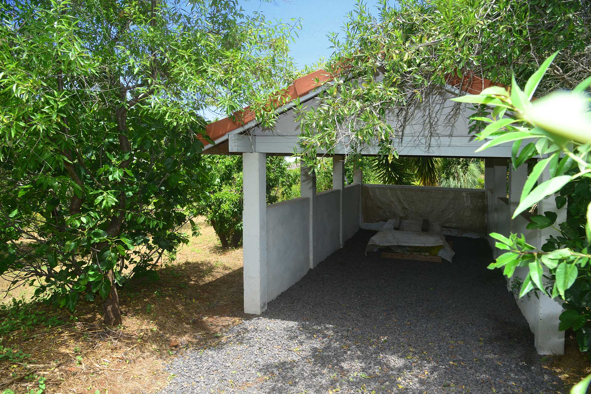 Für den PKW steht eine halboffene Garage zur Verfügung, so dass das Fahrzeug gut beschattet und nahezu unsichtbar unter einem kanarischen Dach untergebracht werden kann.