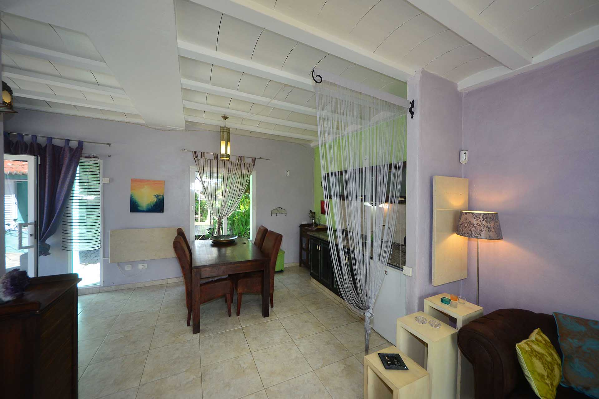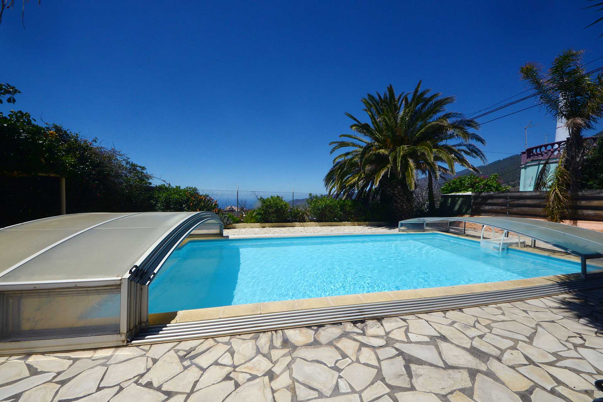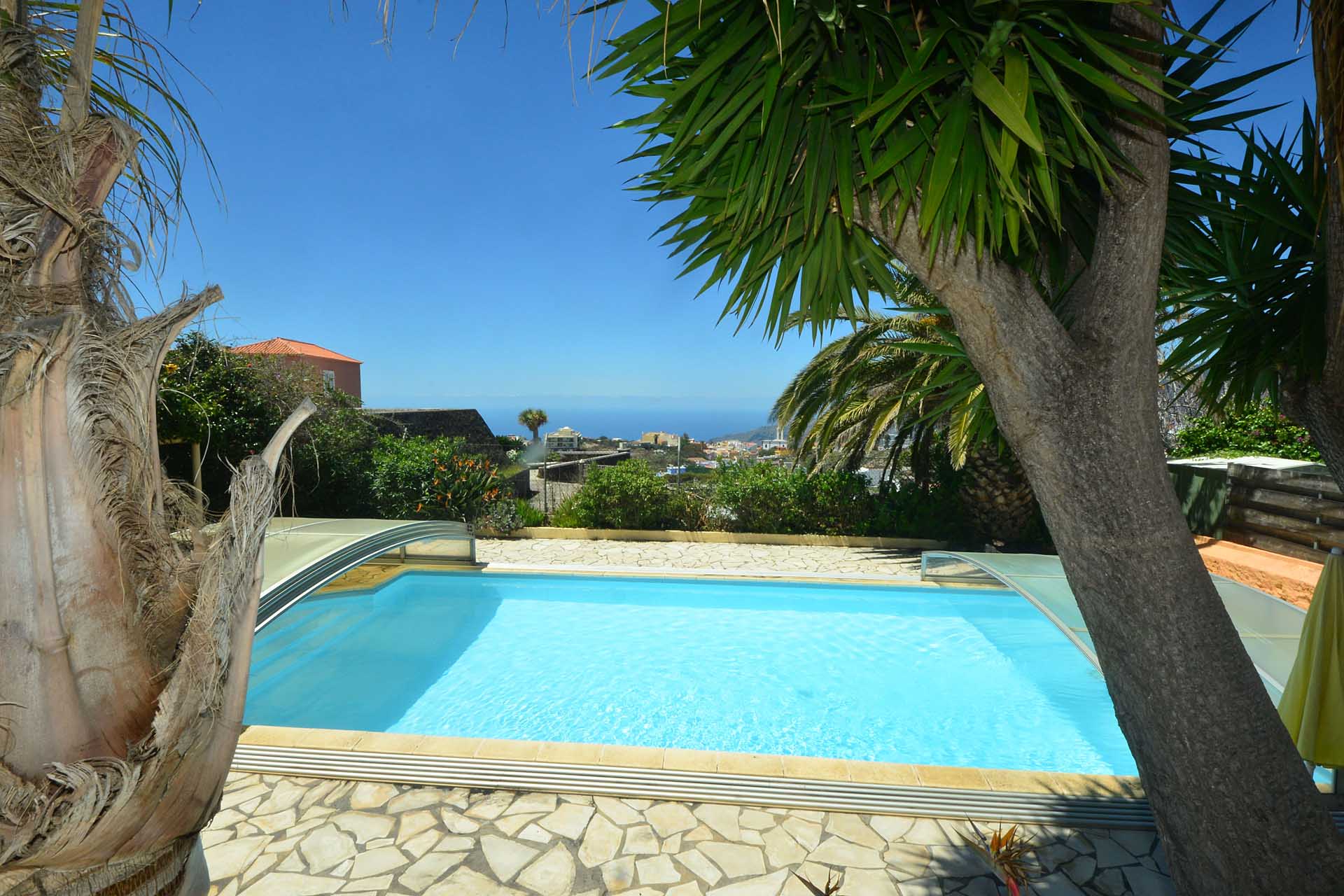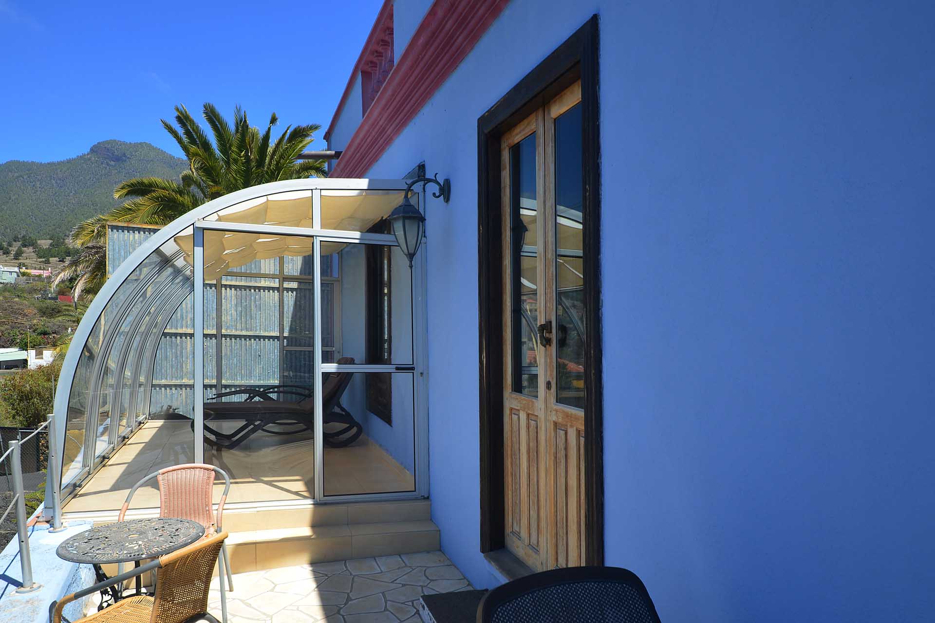 Alle drei Wohneinheiten verfügen über separate Terrassen mit guter Privatsphäre, die beiden Apartments liegen unmittelbar an dem sehr großen Pool (10 x 5 m), der mit einer variablen und transparenten Überdachung sowohl als Freibad, als auch als Hallenbad genutzt werden kann. Die Einhausung sorgt auch dafür, dass er immer eine angenehme Wassertemperatur aufweist, ohne dass er geheizt werden müsste.