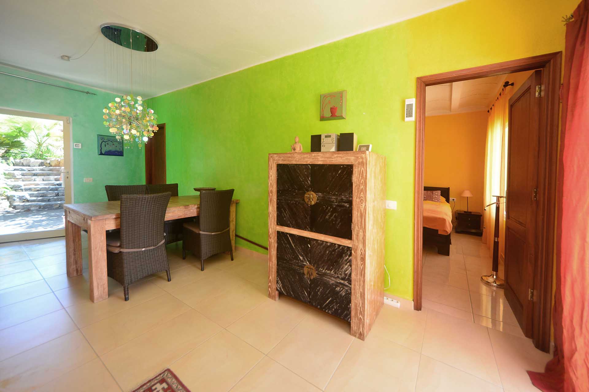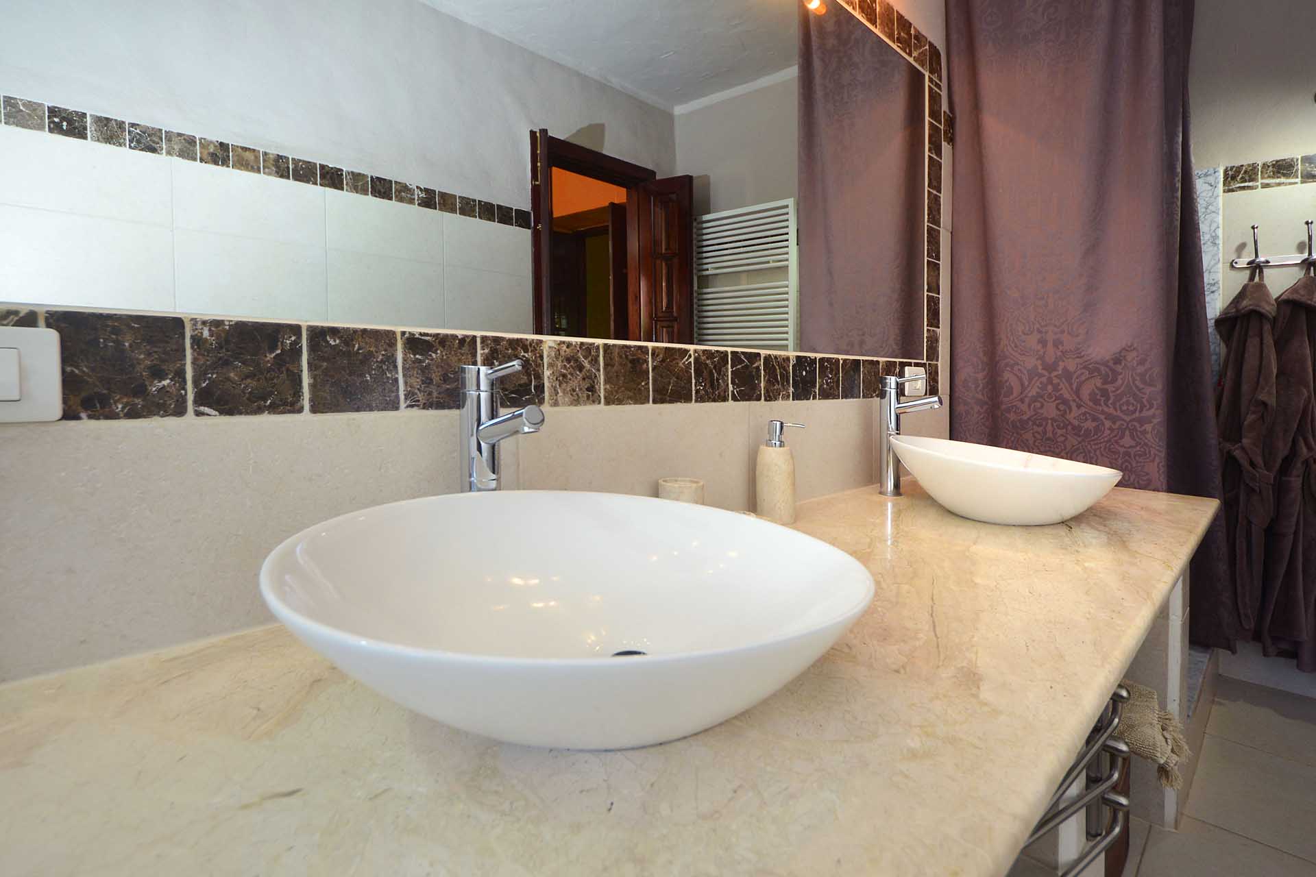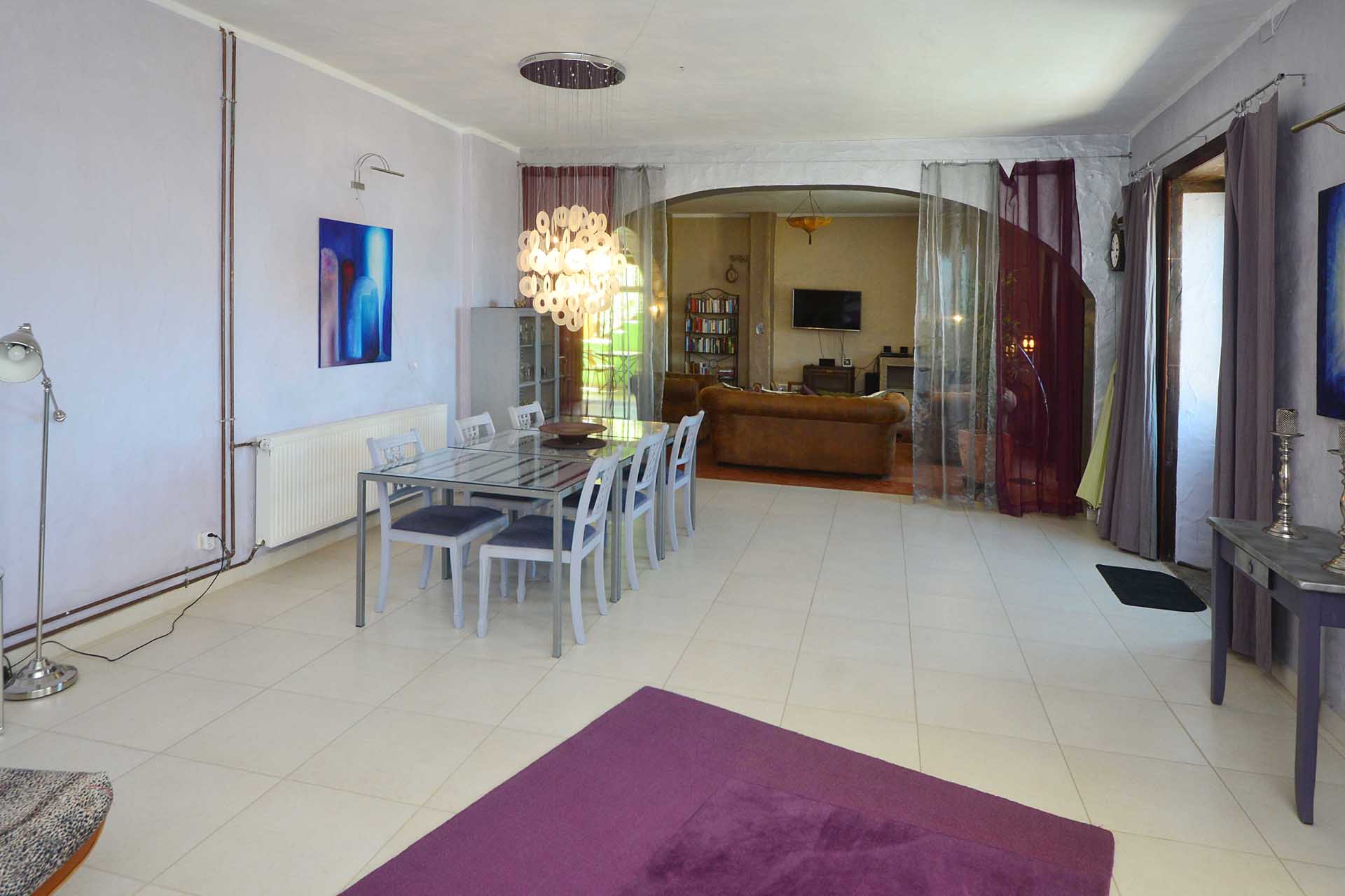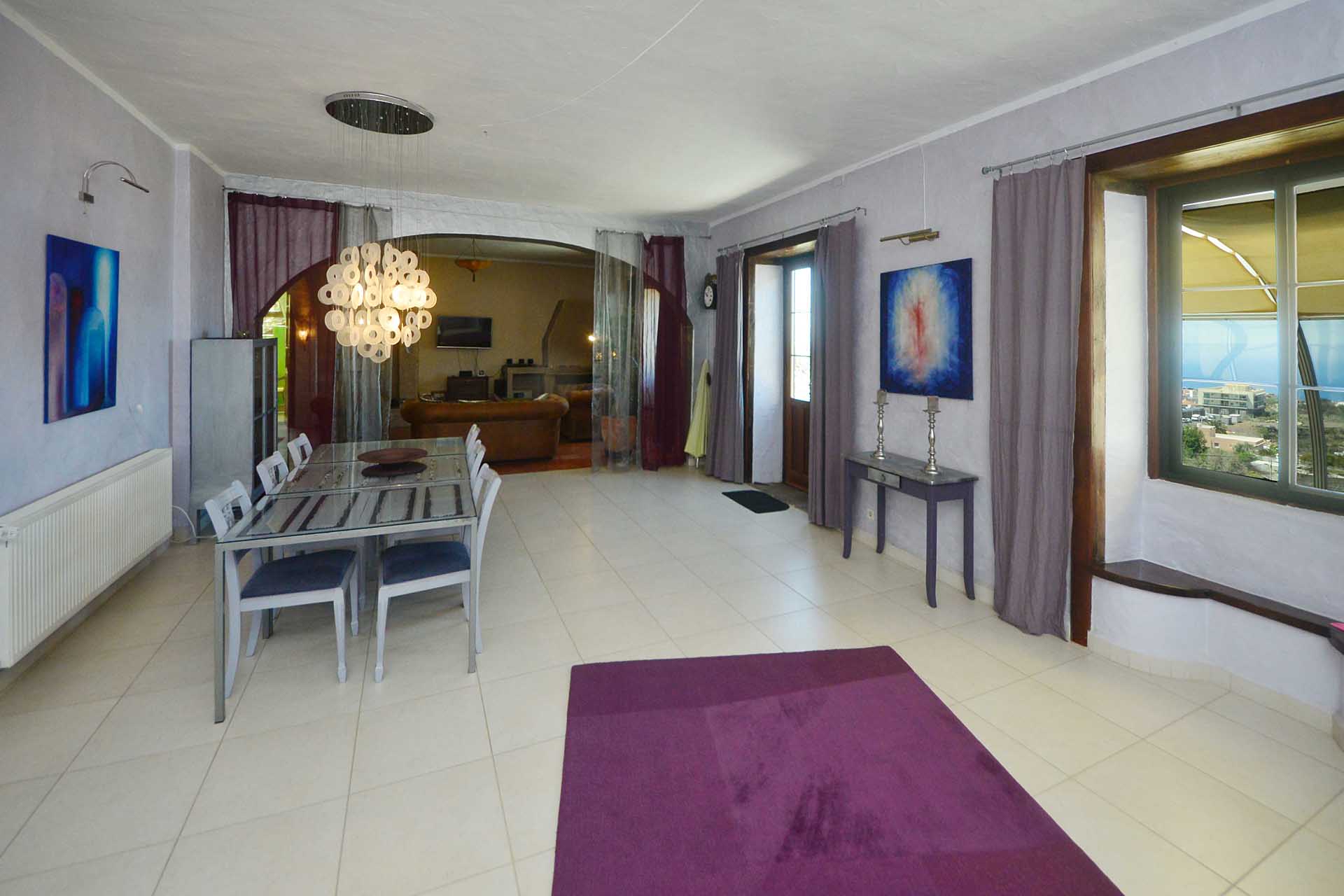 Es besteht aus einem sehr großen Herrenhaus (ca. 264 m² Grundfläche) das in ein Wohnzimmer mit sehr großem Essbereich, eine Küche, zwei Schlafzimmer, ein Badezimmer, zwei Wintergärten und einen Flur aufgeteilt ist und über einen Balkon sowie eine sehr große Dachterrasse mit herrlichem Meer- und Bergblick verfügt sowie einem Doppelhaus (ca. 155 m² Grundfläche), das zwei separate Gästeapartments beherbergt.