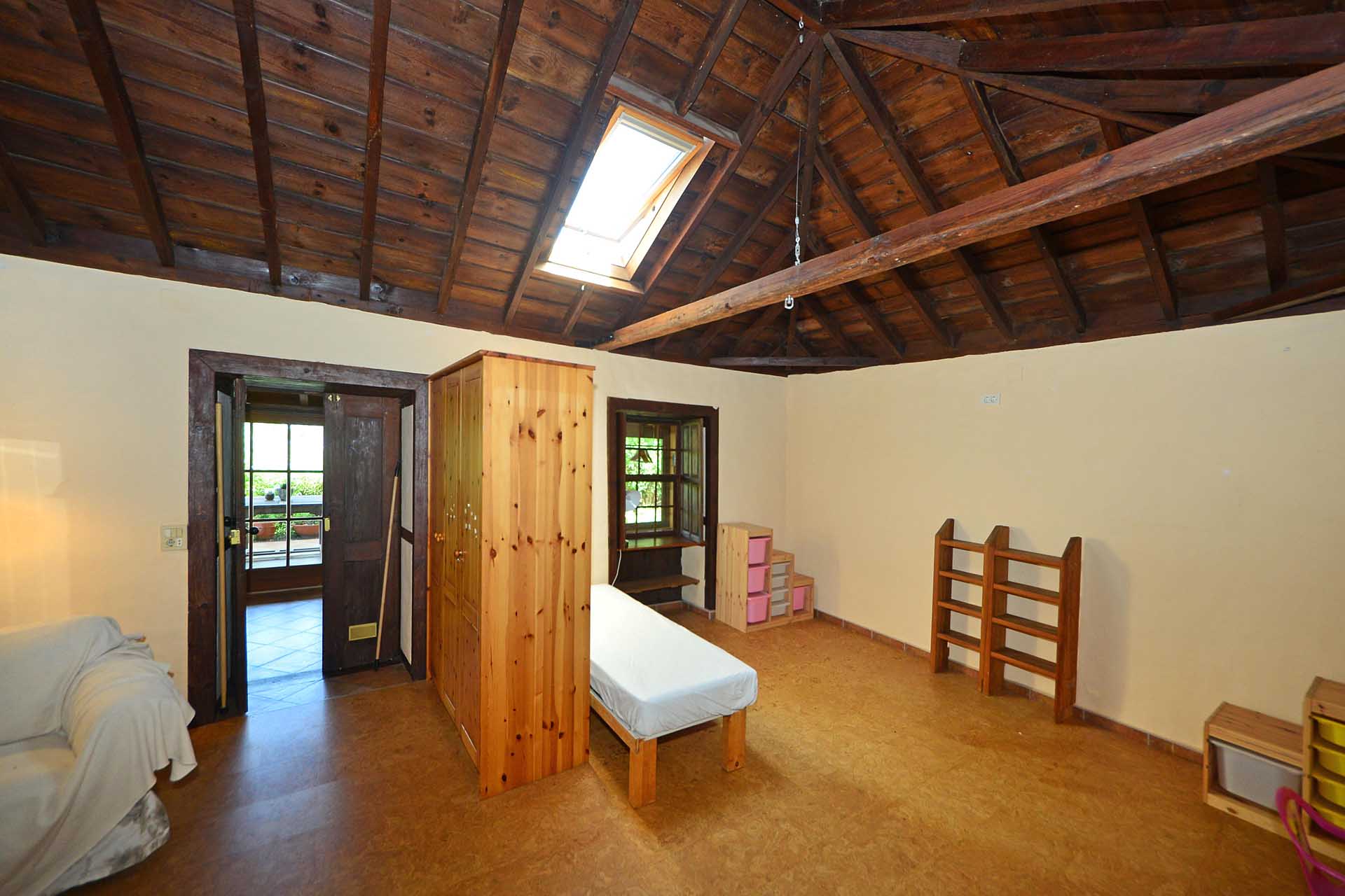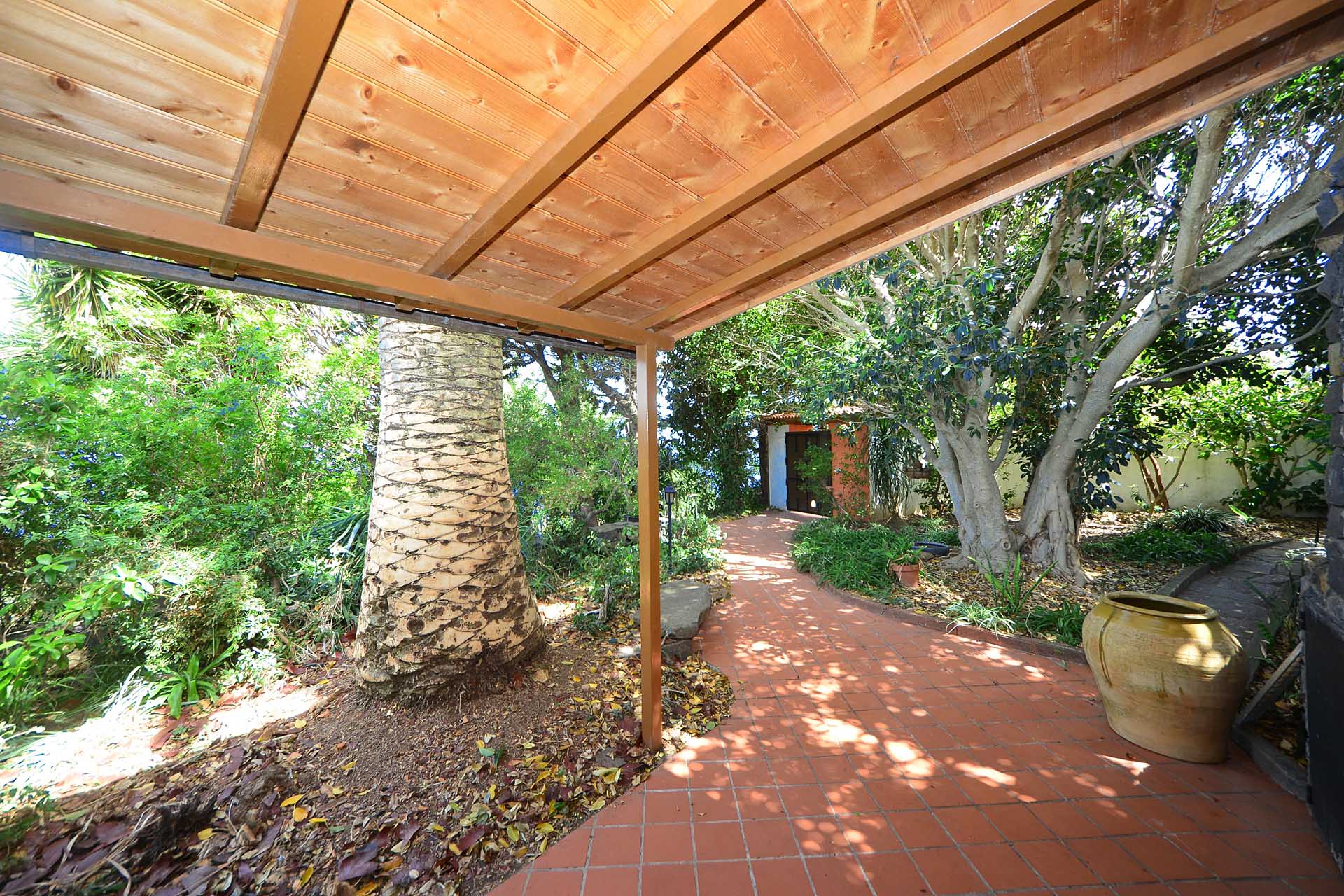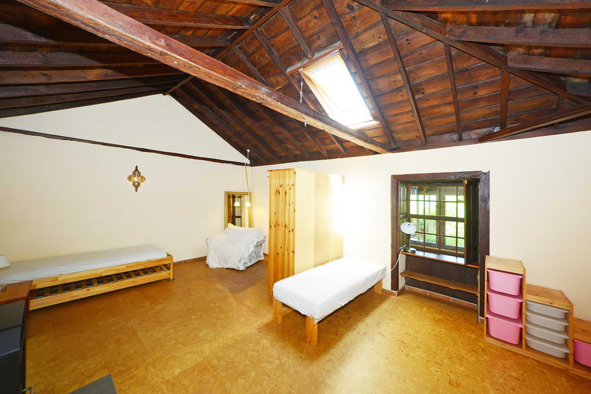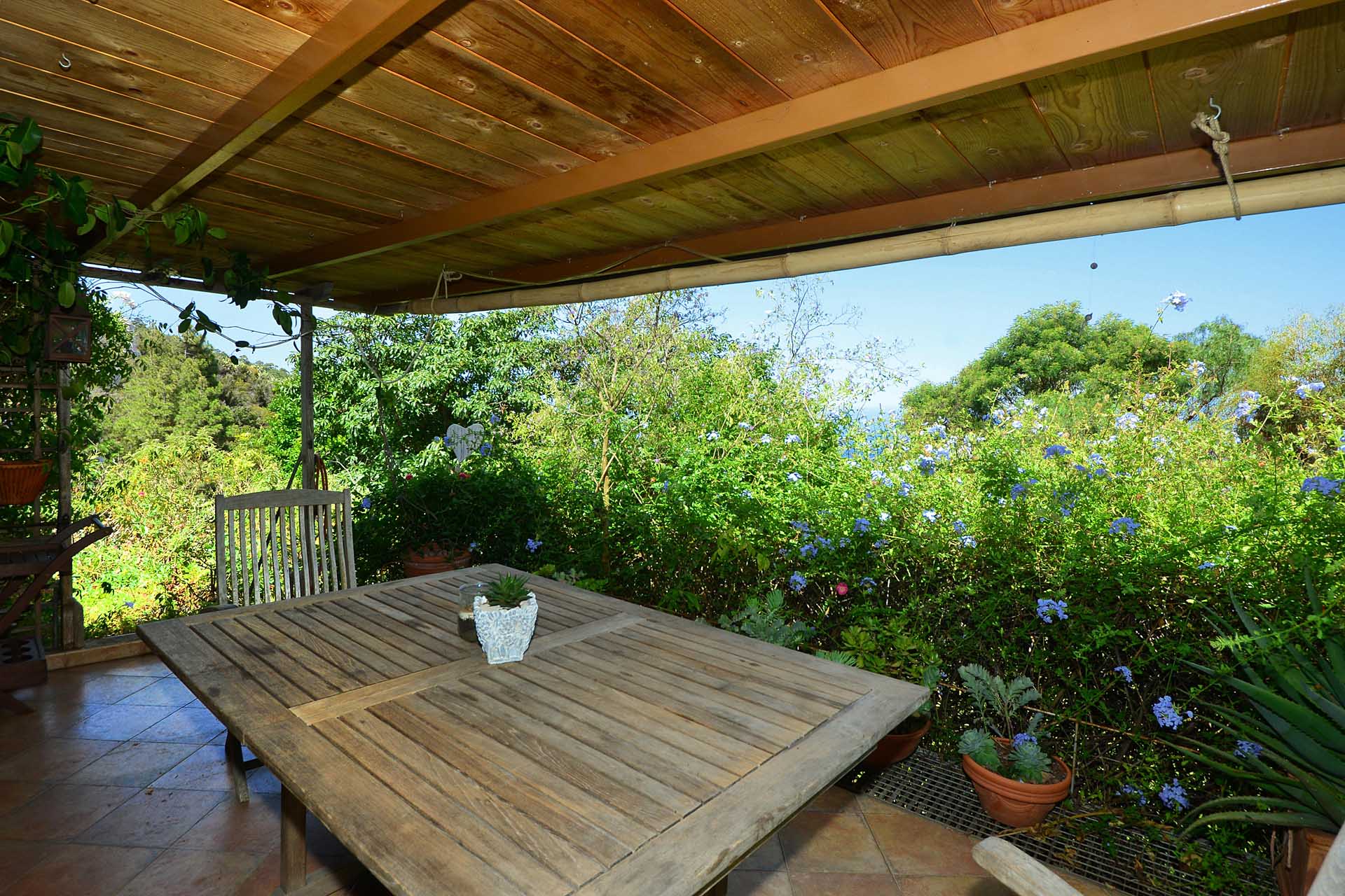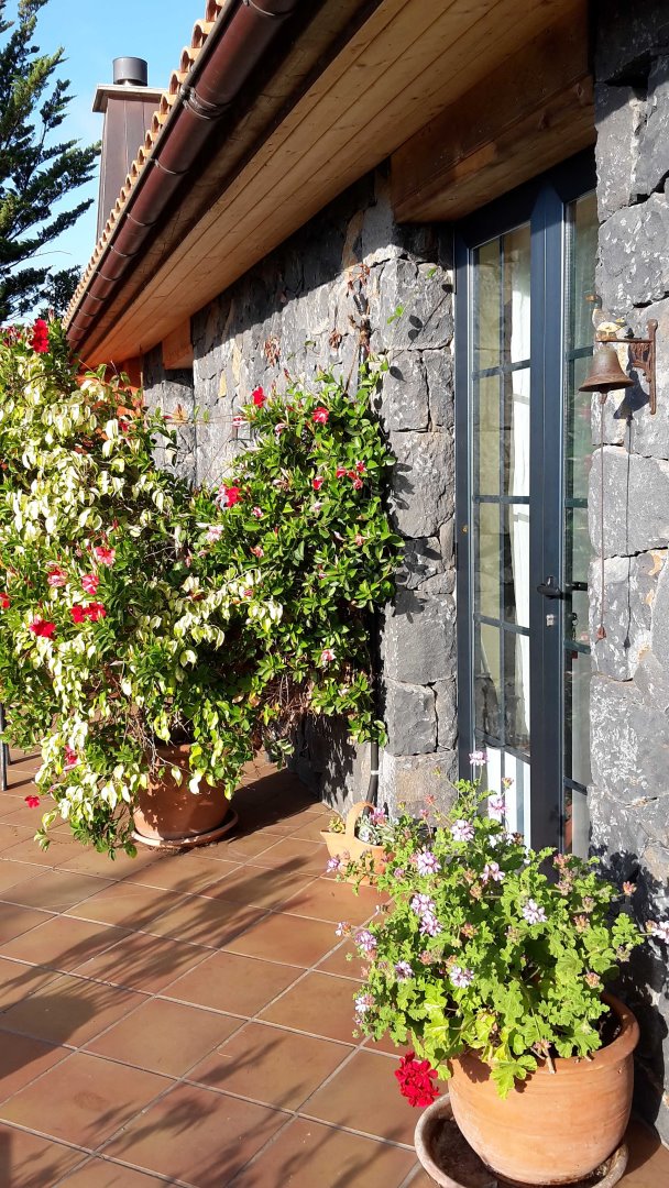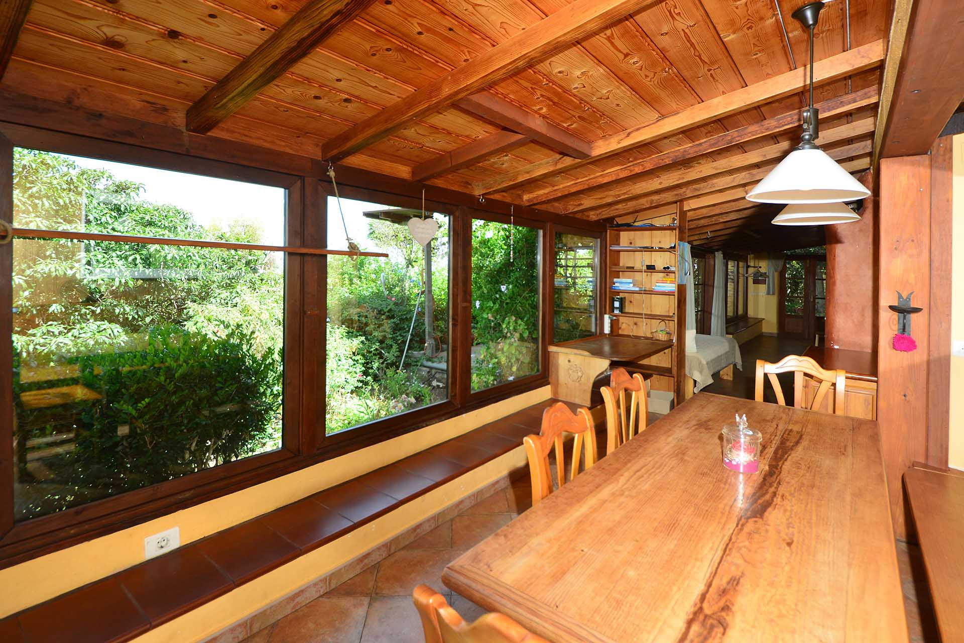 Das Haupthaus (ca. 153 m² Grundfläche) betreten Sie durch einen langgestreckten, wintergartenähnlichen Raum der konsequent auf den herrlichen Blick ausgerichtet wurde. Er geht in eine halboffene Küche über, die mit Holzbackofen und tiefergelegtem Herd in kanarischem Ambiente zur kreativen Tätigkeit einlädt. Das separate Wohnzimmer mit kanarischem Dachstuhl aus Teaholz strahlt nicht nur kanarische Gemütlichkeit aus, sondern wurde durch ein Dachfenster zusätzlich belichtet, um auch nordeuropäischen Ansprüchen Stand zu halten, ebenso wie das Schlafzimmer und das luxuriös ausgestattete Badezimmer. Da der sehr große Wintergarten ähnliche Raum in erster Linie auch als Wohnzimmer genutzt wird, kann das eigentliche Wohnzimmer auch sehr gut als sehr großes, zweites Schlaf- oder Kinderzimmer genutzt werden. In allen Räumen wurde nicht nur respektvoll mit historischer Bausubstanz umgegangen, sondern durch besonders hochwertige Massivholz- und Natursteinarbeiten ein geschmackvolles und wertiges Ambiente geschaffen. Der Wintergarten geht in eine überdachte Terrasse über, weitere Terrassen wurden rund um das Haus angelegt, teilweise mit sehr aufwändigen Natursteinmauern, um einen spektakulären Blick über die Schlucht, den Ort und das Meer zu ermöglichen.