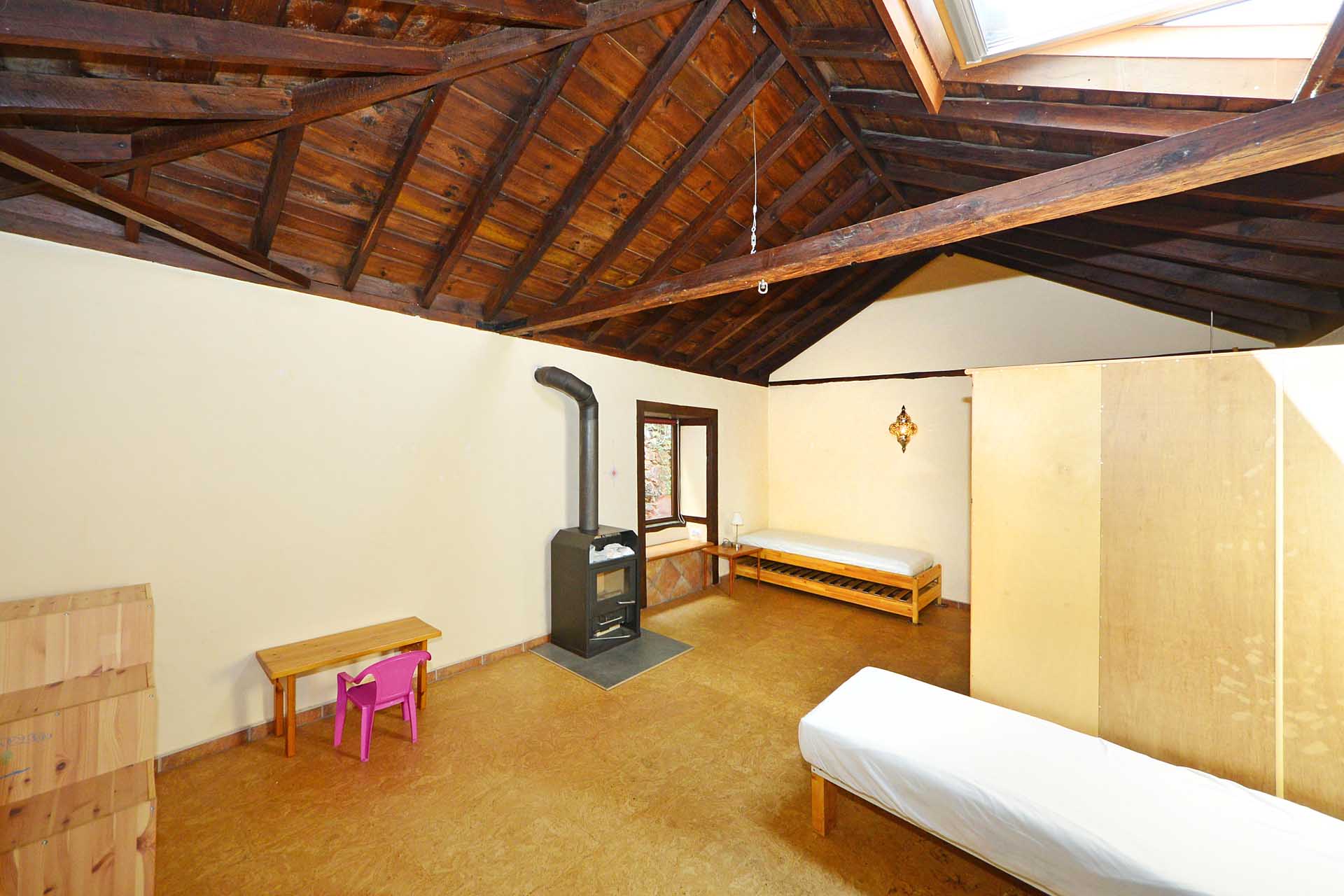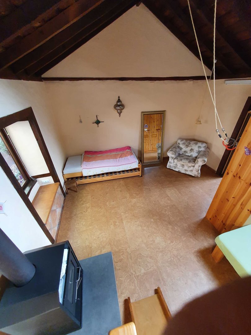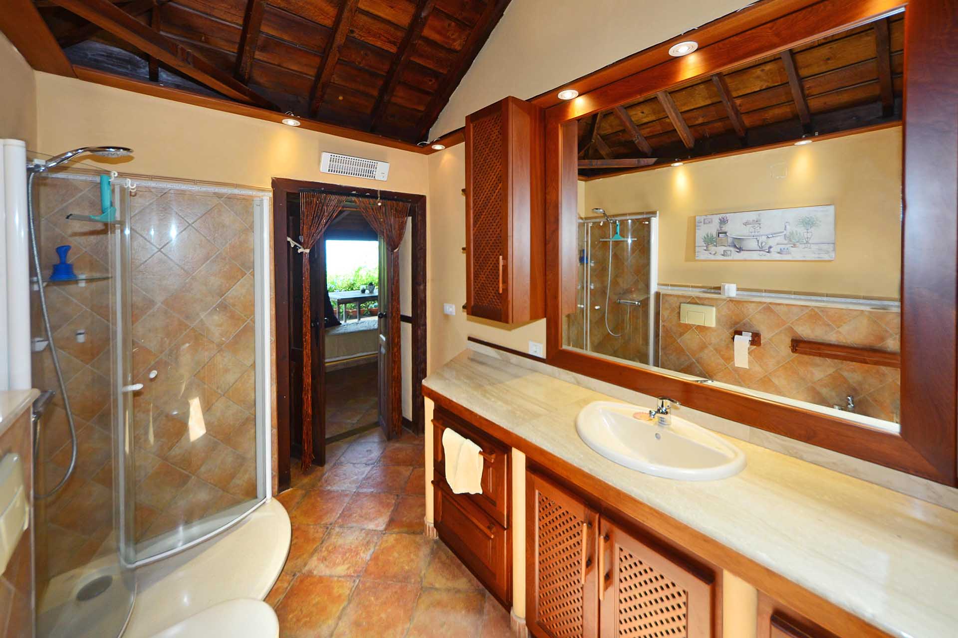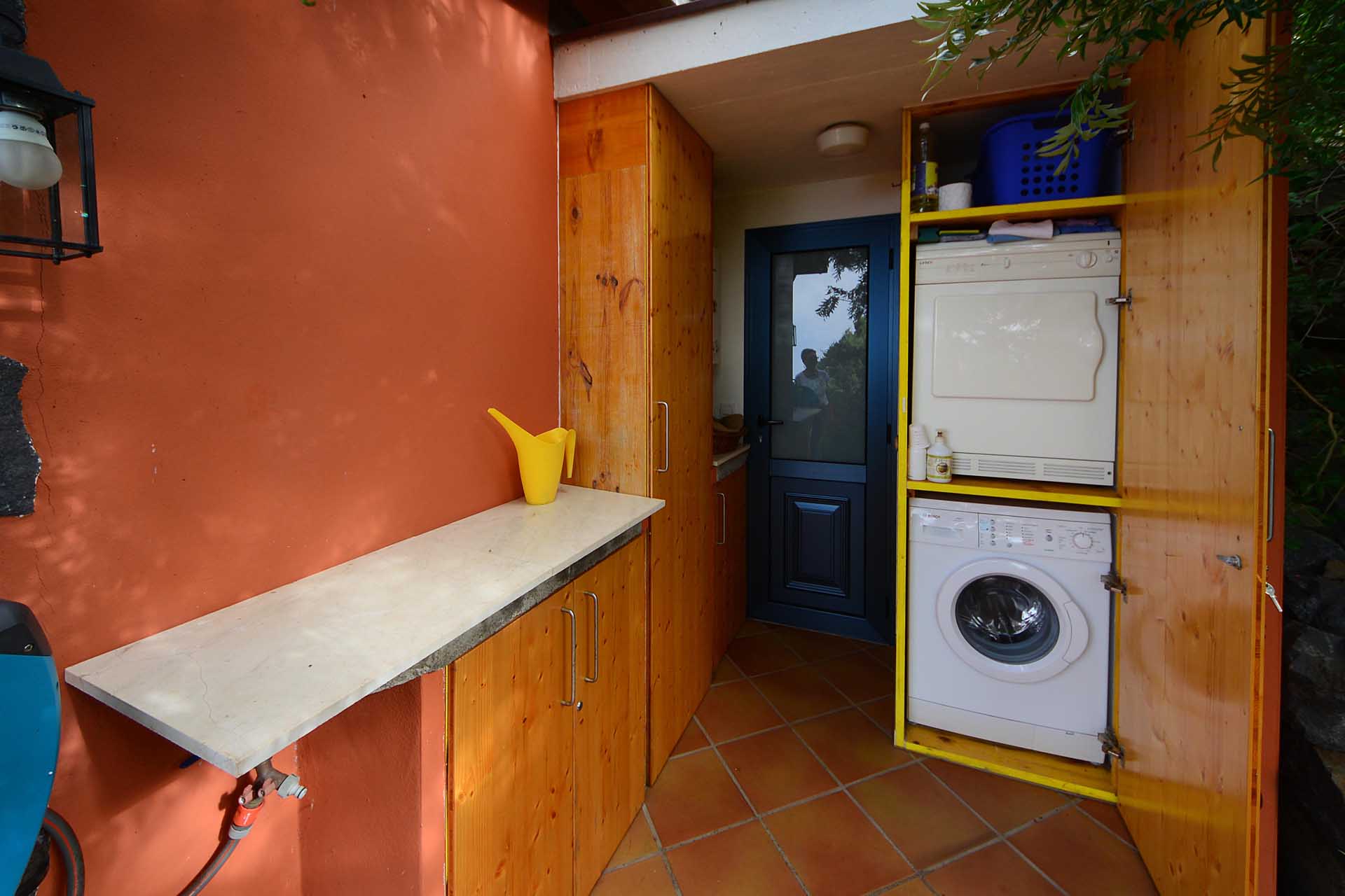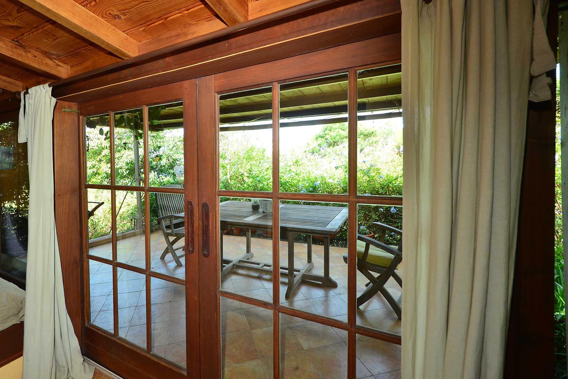 Das Haupthaus (ca. 153 m² Grundfläche) betreten Sie durch einen langgestreckten, wintergartenähnlichen Raum der konsequent auf den herrlichen Blick ausgerichtet wurde. Er geht in eine halboffene Küche über, die mit Holzbackofen und tiefergelegtem Herd in kanarischem Ambiente zur kreativen Tätigkeit einlädt. Das separate Wohnzimmer mit kanarischem Dachstuhl aus Teaholz strahlt nicht nur kanarische Gemütlichkeit aus, sondern wurde durch ein Dachfenster zusätzlich belichtet, um auch nordeuropäischen Ansprüchen Stand zu halten, ebenso wie das Schlafzimmer und das luxuriös ausgestattete Badezimmer. Da der sehr große Wintergarten ähnliche Raum in erster Linie auch als Wohnzimmer genutzt wird, kann das eigentliche Wohnzimmer auch sehr gut als sehr großes, zweites Schlaf- oder Kinderzimmer genutzt werden. In allen Räumen wurde nicht nur respektvoll mit historischer Bausubstanz umgegangen, sondern durch besonders hochwertige Massivholz- und Natursteinarbeiten ein geschmackvolles und wertiges Ambiente geschaffen. Der Wintergarten geht in eine überdachte Terrasse über, weitere Terrassen wurden rund um das Haus angelegt, teilweise mit sehr aufwändigen Natursteinmauern, um einen spektakulären Blick über die Schlucht, den Ort und das Meer zu ermöglichen.