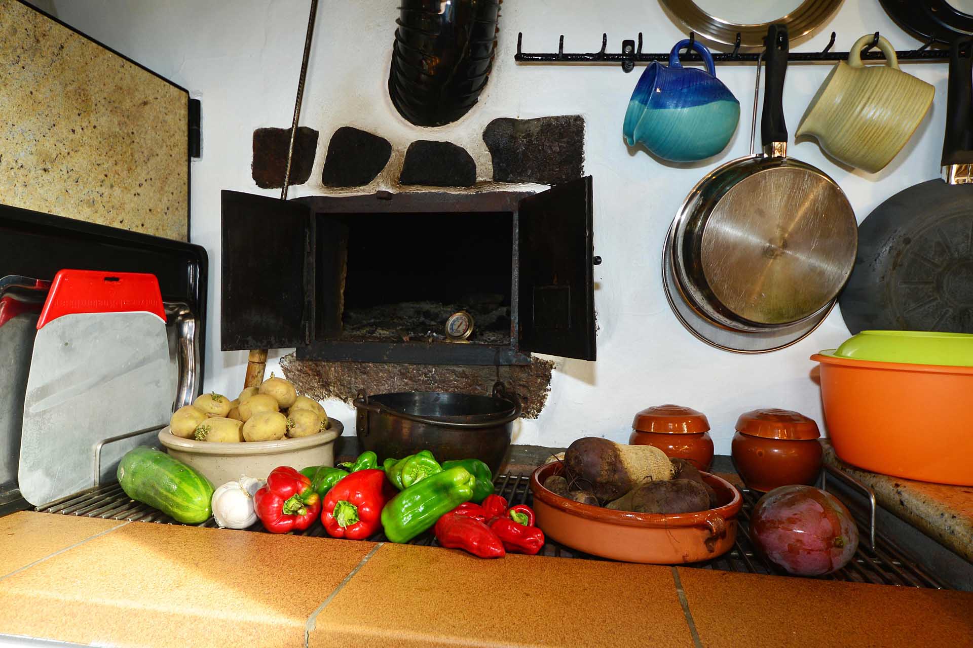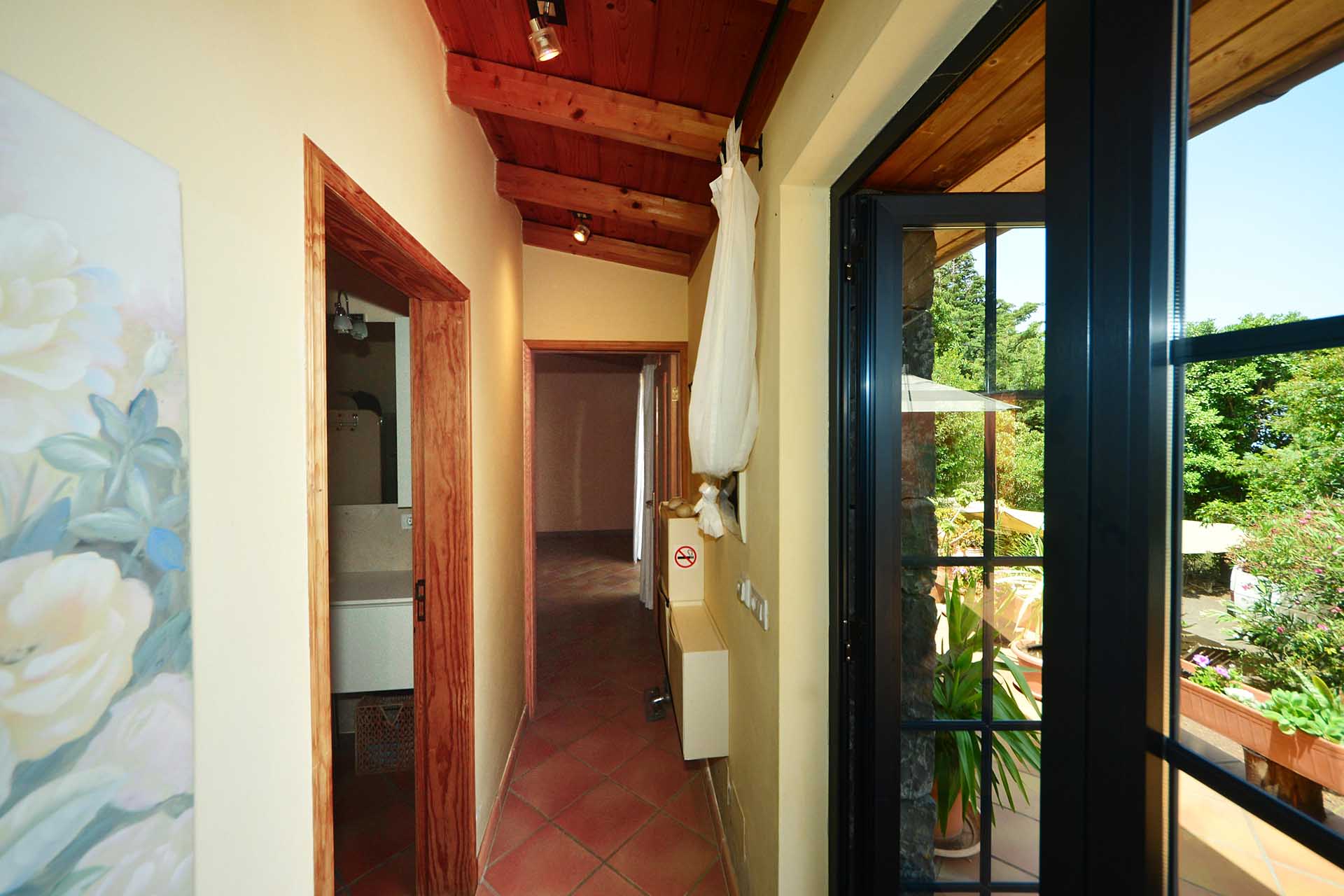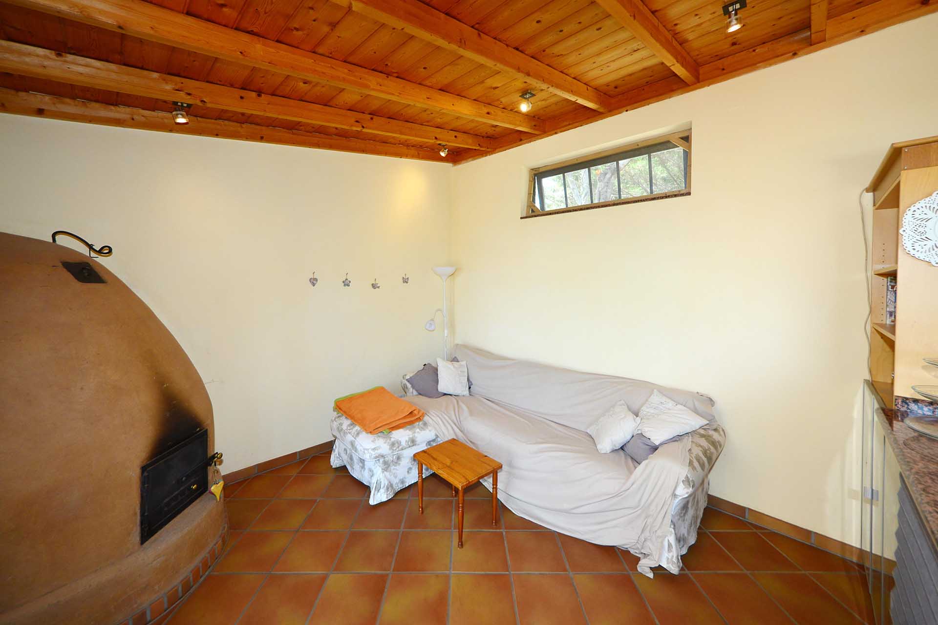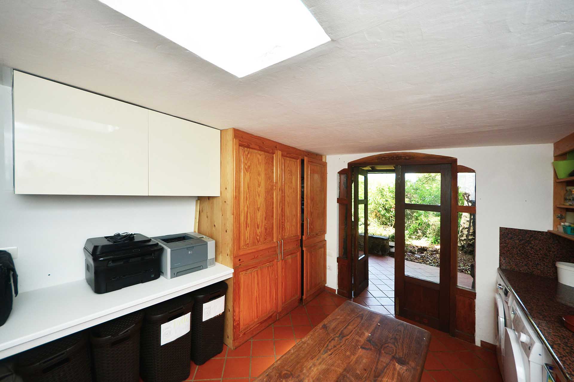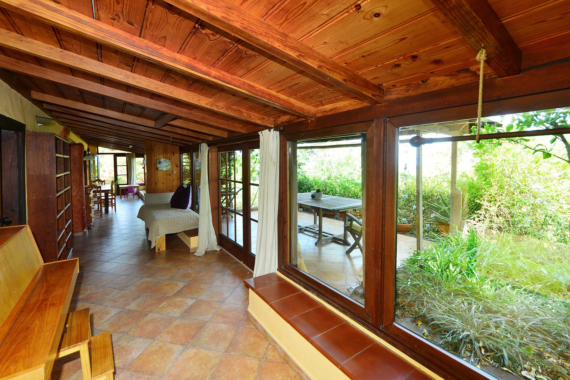 Das Haupthaus (ca. 153 m² Grundfläche) betreten Sie durch einen langgestreckten, wintergartenähnlichen Raum der konsequent auf den herrlichen Blick ausgerichtet wurde. Er geht in eine halboffene Küche über, die mit Holzbackofen und tiefergelegtem Herd in kanarischem Ambiente zur kreativen Tätigkeit einlädt. Das separate Wohnzimmer mit kanarischem Dachstuhl aus Teaholz strahlt nicht nur kanarische Gemütlichkeit aus, sondern wurde durch ein Dachfenster zusätzlich belichtet, um auch nordeuropäischen Ansprüchen Stand zu halten, ebenso wie das Schlafzimmer und das luxuriös ausgestattete Badezimmer. Da der sehr große Wintergarten ähnliche Raum in erster Linie auch als Wohnzimmer genutzt wird, kann das eigentliche Wohnzimmer auch sehr gut als sehr großes, zweites Schlaf- oder Kinderzimmer genutzt werden. In allen Räumen wurde nicht nur respektvoll mit historischer Bausubstanz umgegangen, sondern durch besonders hochwertige Massivholz- und Natursteinarbeiten ein geschmackvolles und wertiges Ambiente geschaffen. Der Wintergarten geht in eine überdachte Terrasse über, weitere Terrassen wurden rund um das Haus angelegt, teilweise mit sehr aufwändigen Natursteinmauern, um einen spektakulären Blick über die Schlucht, den Ort und das Meer zu ermöglichen.
