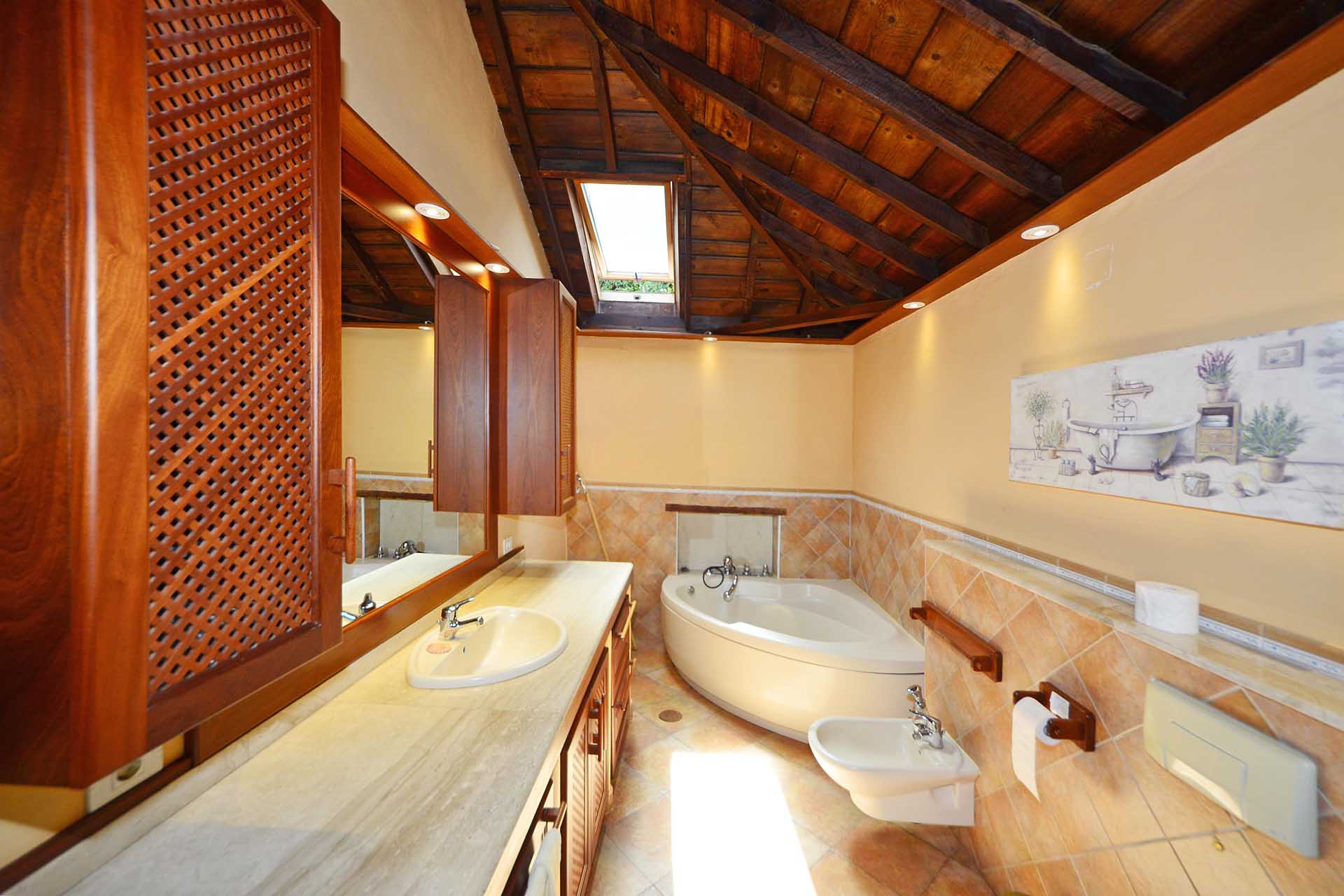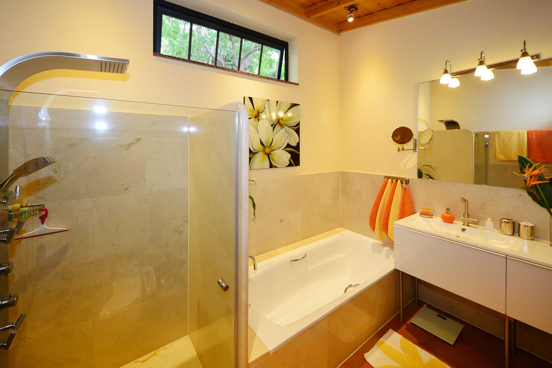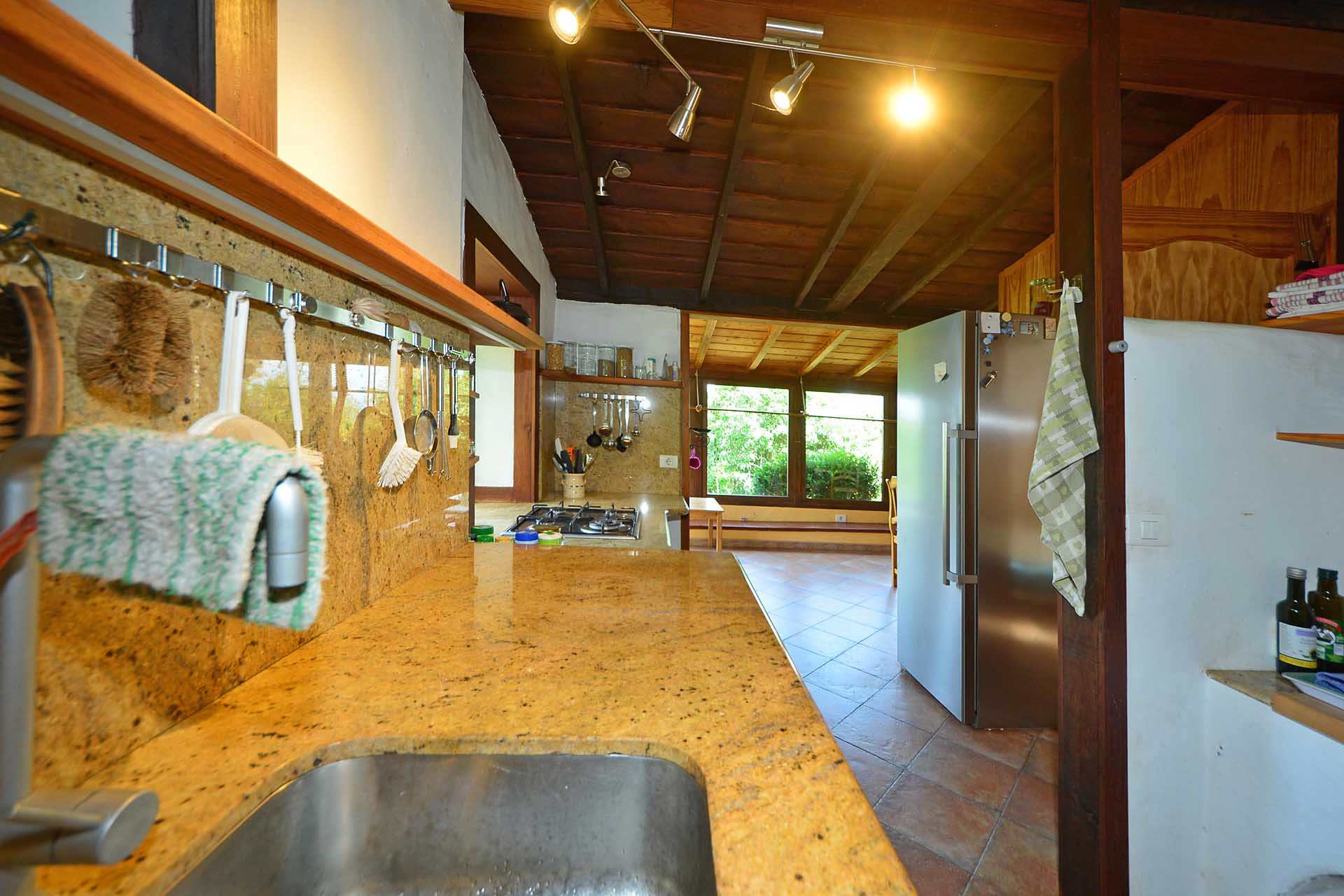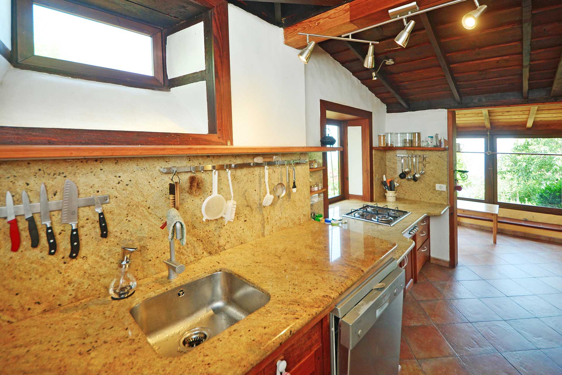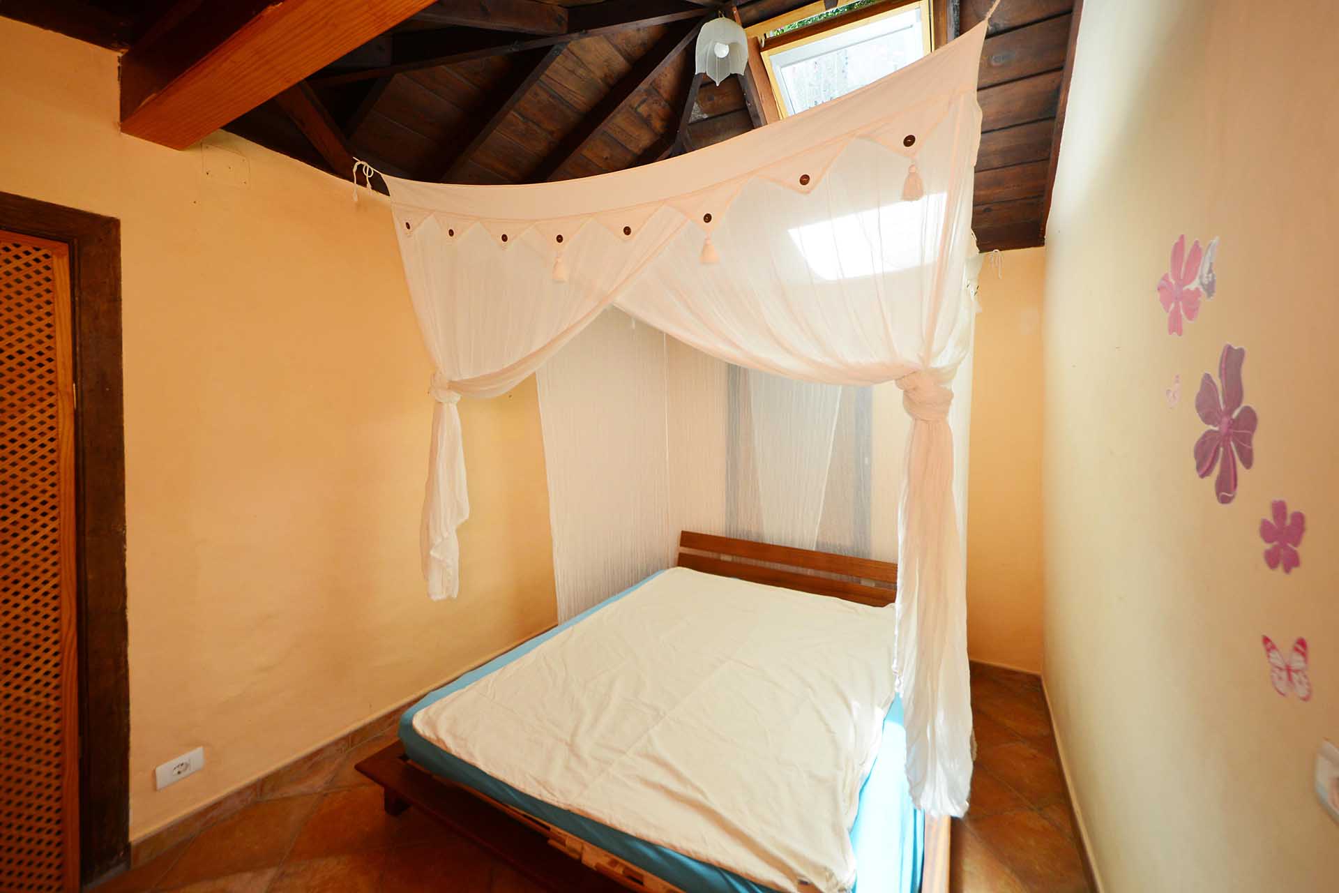 Das Haupthaus (ca. 153 m² Grundfläche) betreten Sie durch einen langgestreckten, wintergartenähnlichen Raum der konsequent auf den herrlichen Blick ausgerichtet wurde. Er geht in eine halboffene Küche über, die mit Holzbackofen und tiefergelegtem Herd in kanarischem Ambiente zur kreativen Tätigkeit einlädt. Das separate Wohnzimmer mit kanarischem Dachstuhl aus Teaholz strahlt nicht nur kanarische Gemütlichkeit aus, sondern wurde durch ein Dachfenster zusätzlich belichtet, um auch nordeuropäischen Ansprüchen Stand zu halten, ebenso wie das Schlafzimmer und das luxuriös ausgestattete Badezimmer. Da der sehr große Wintergarten ähnliche Raum in erster Linie auch als Wohnzimmer genutzt wird, kann das eigentliche Wohnzimmer auch sehr gut als sehr großes, zweites Schlaf- oder Kinderzimmer genutzt werden. In allen Räumen wurde nicht nur respektvoll mit historischer Bausubstanz umgegangen, sondern durch besonders hochwertige Massivholz- und Natursteinarbeiten ein geschmackvolles und wertiges Ambiente geschaffen. Der Wintergarten geht in eine überdachte Terrasse über, weitere Terrassen wurden rund um das Haus angelegt, teilweise mit sehr aufwändigen Natursteinmauern, um einen spektakulären Blick über die Schlucht, den Ort und das Meer zu ermöglichen.